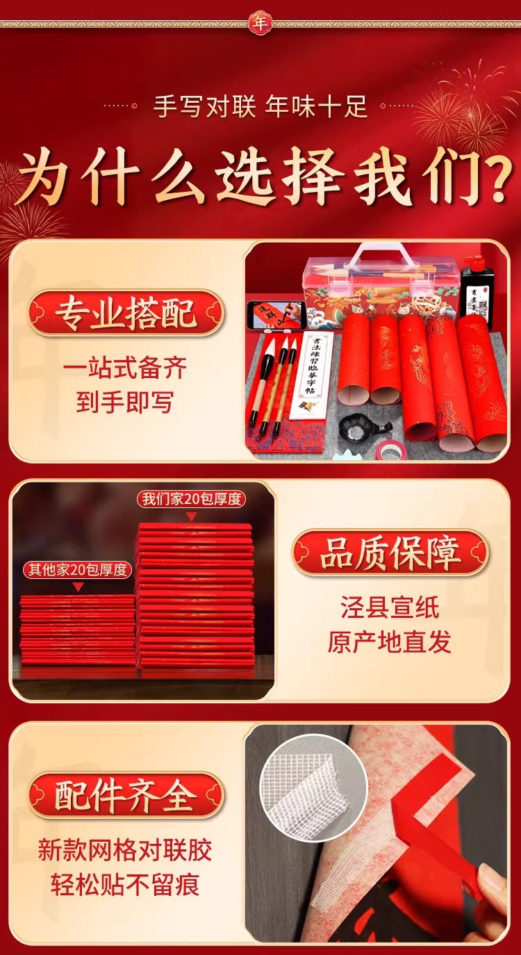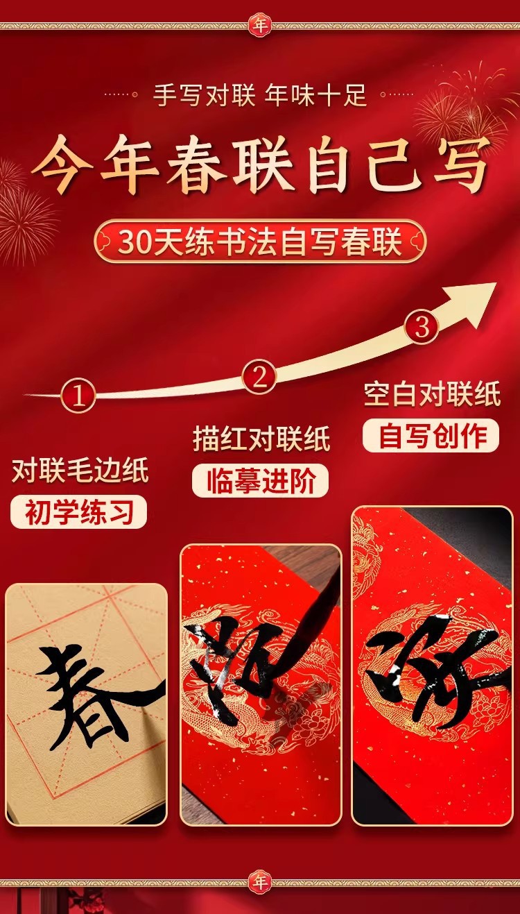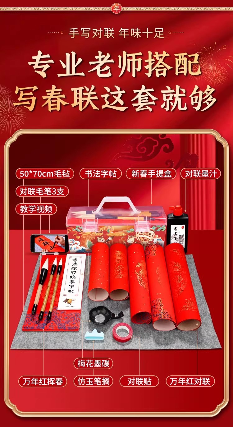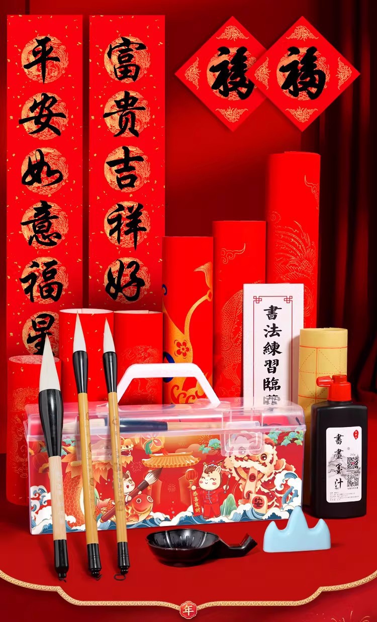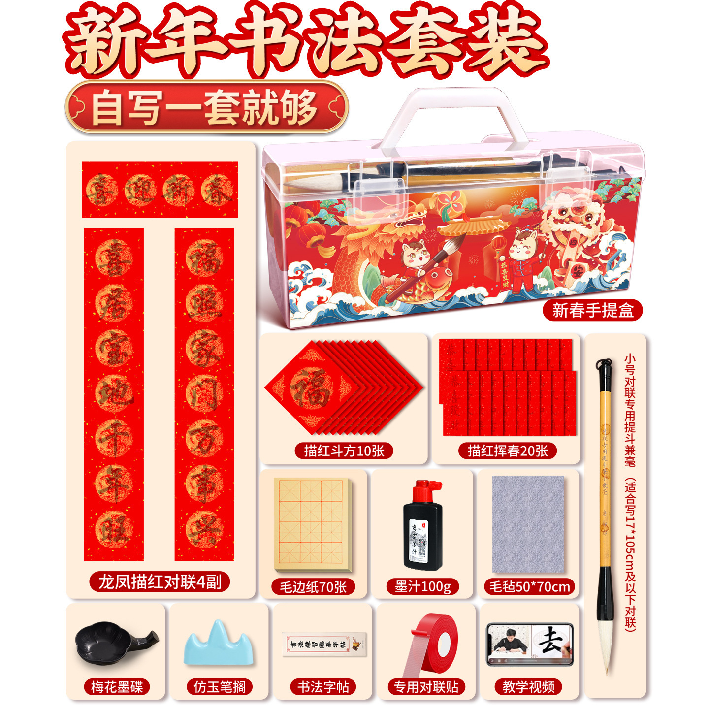 2026马年春联批发自写毛笔对联套装年货摆摊爆款儿童书法工具货源
