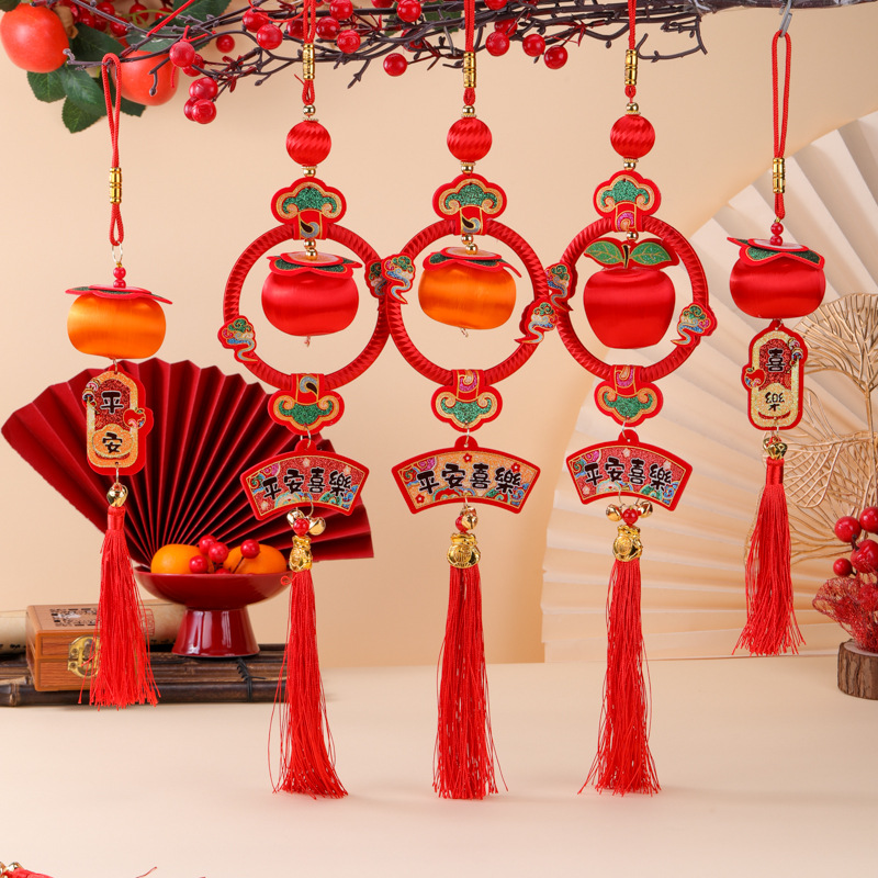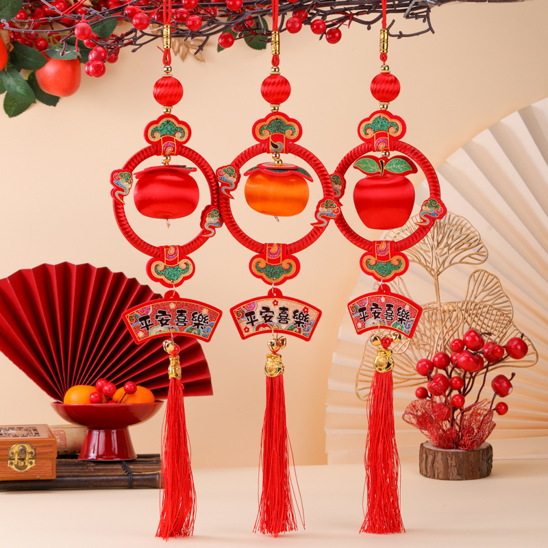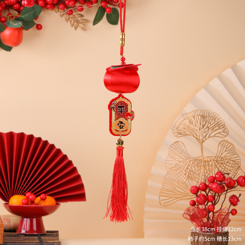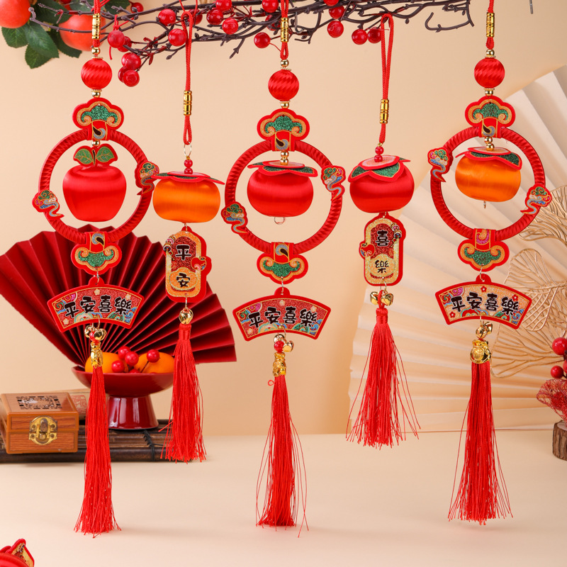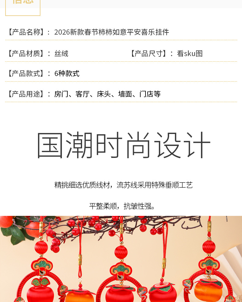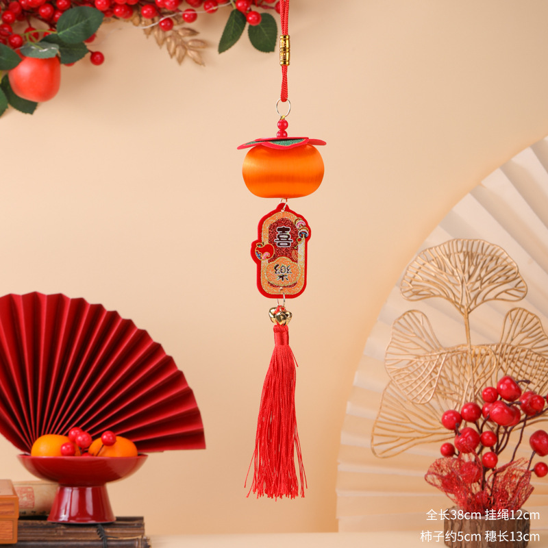 2026新款春节柿柿如意平安喜乐小挂件柿子马年串丝线小灯笼挂饰