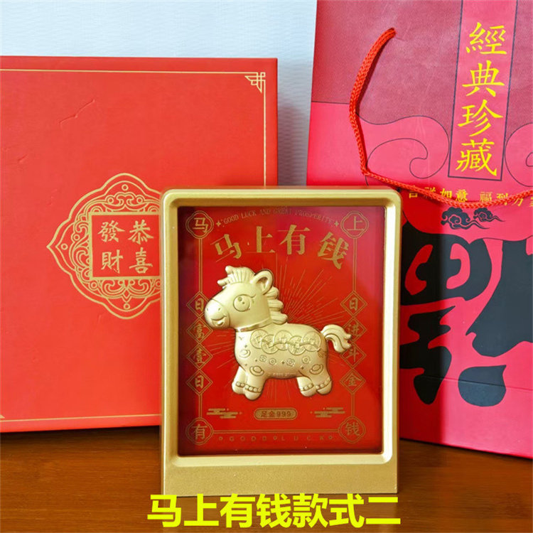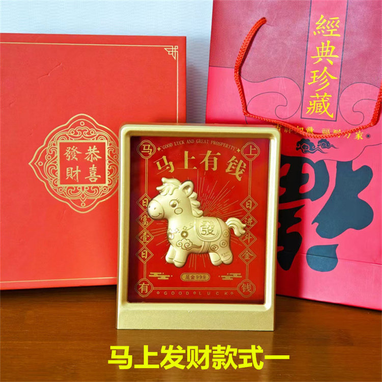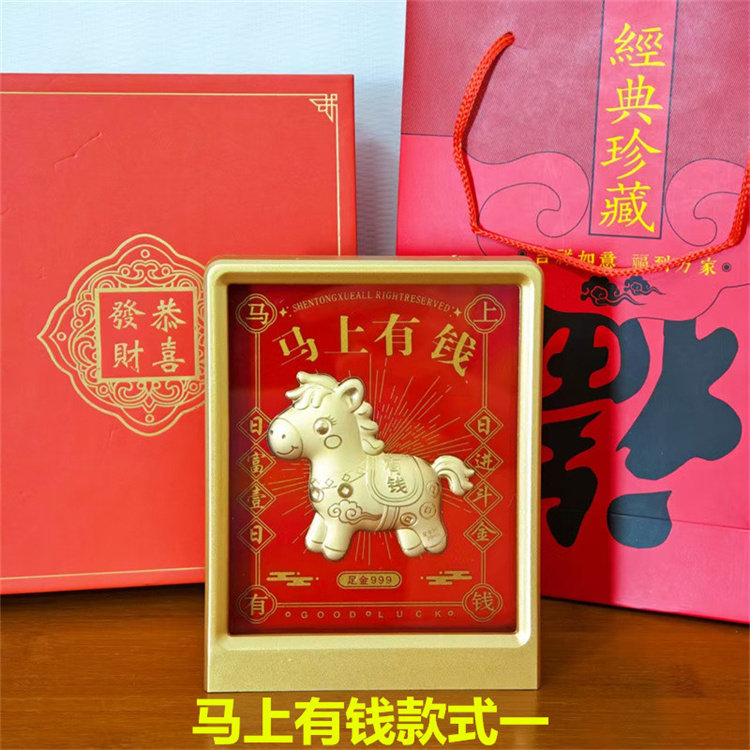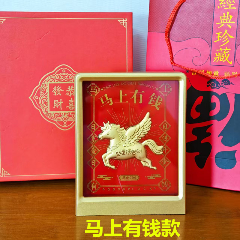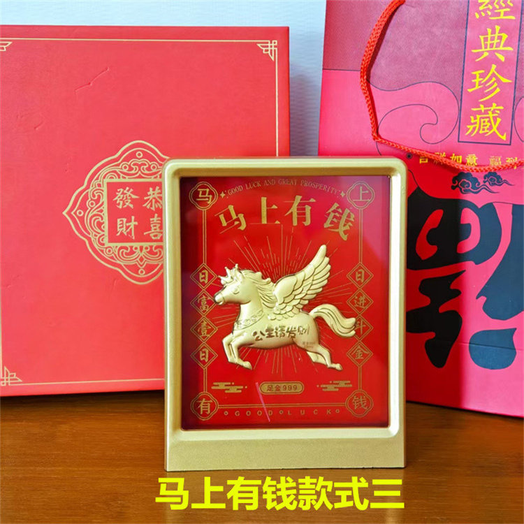 马年八方来财马上有钱含金创意摆件活动礼乔迁商务装饰画框引流直