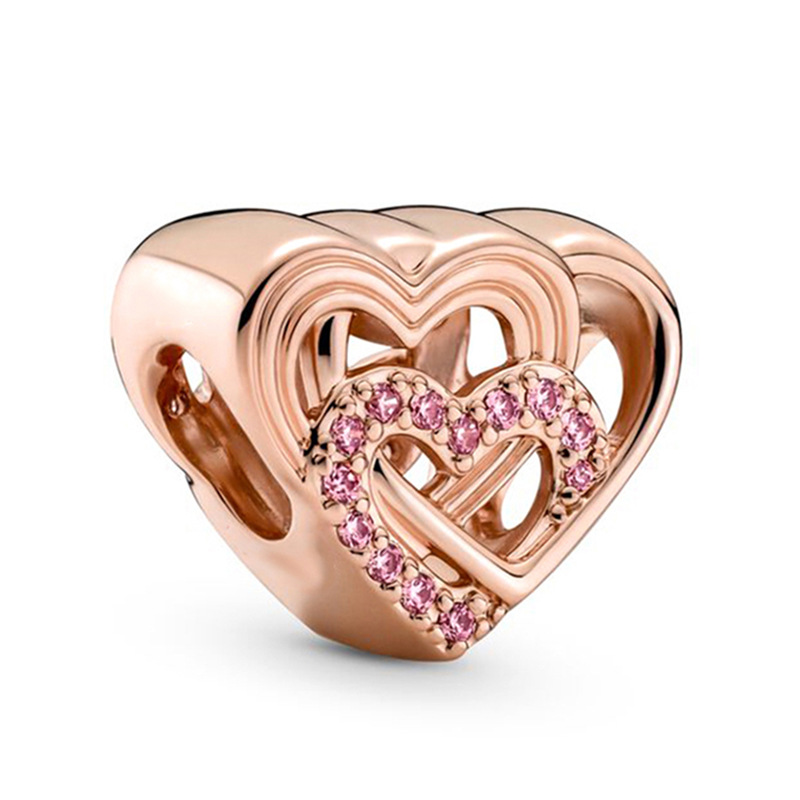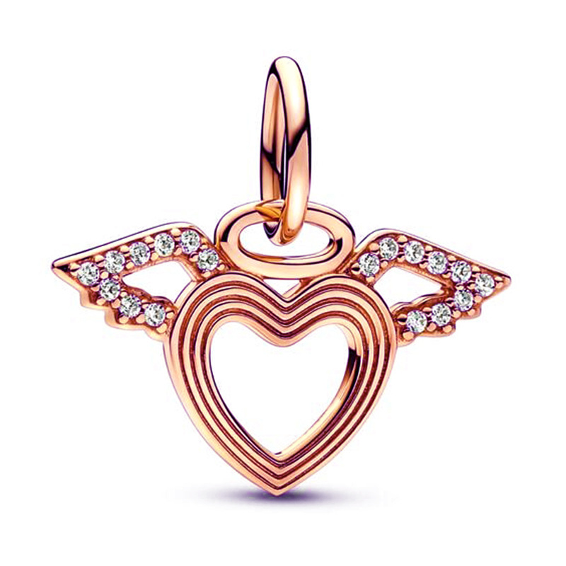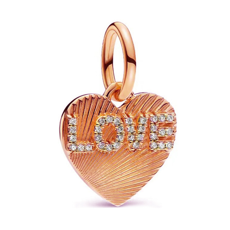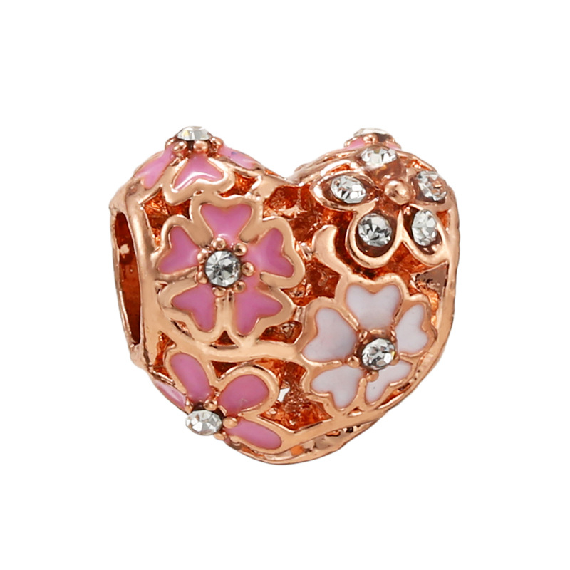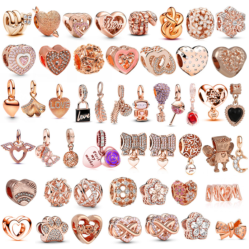 潘家热销玫瑰金串珠 爱心 羽毛 吊坠DIY手链项链配件工厂现货批发