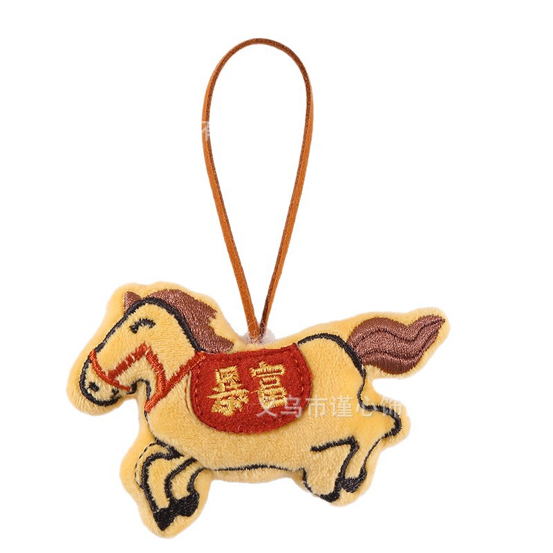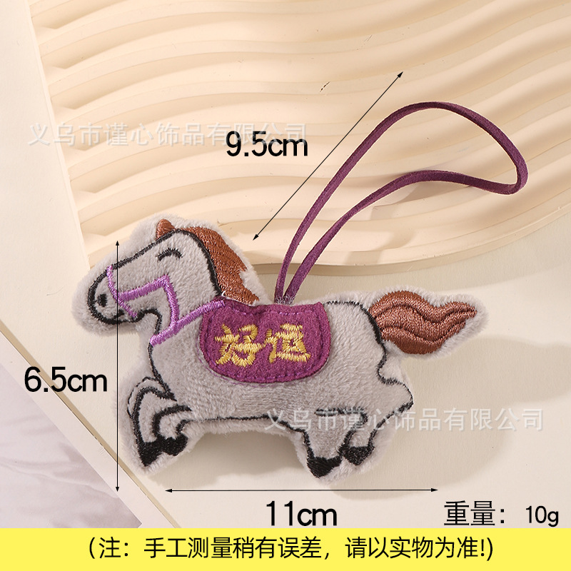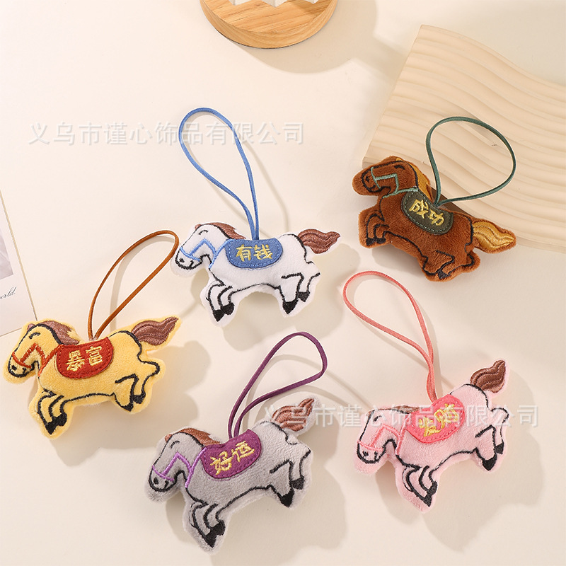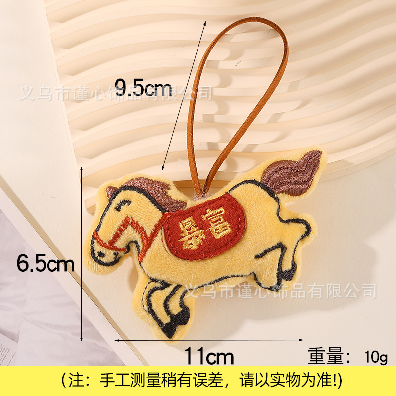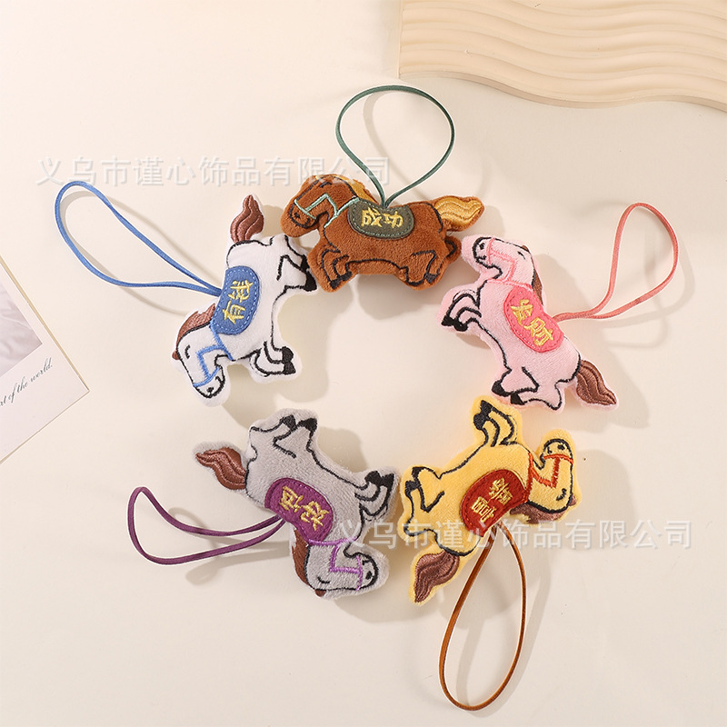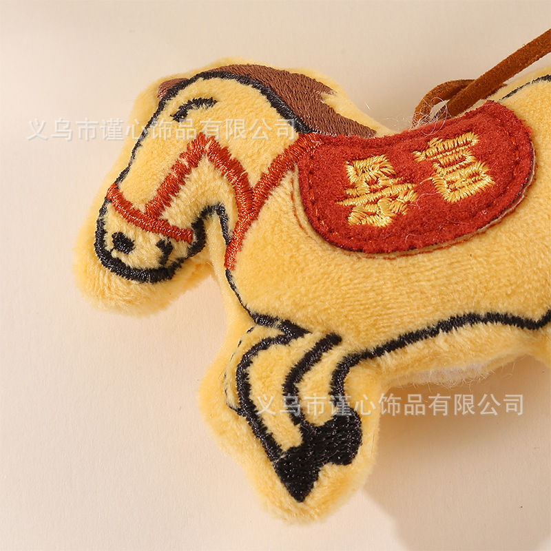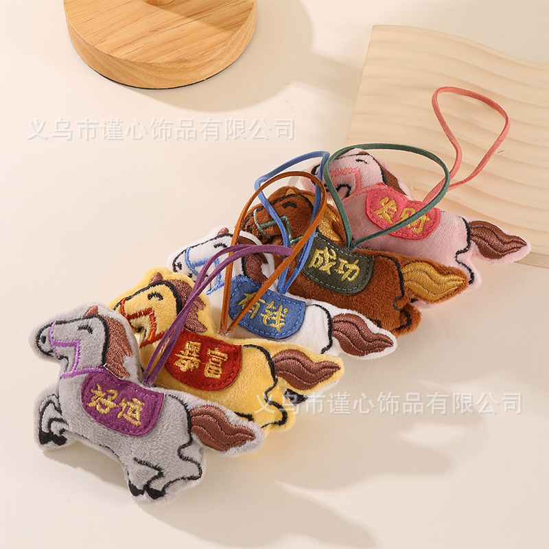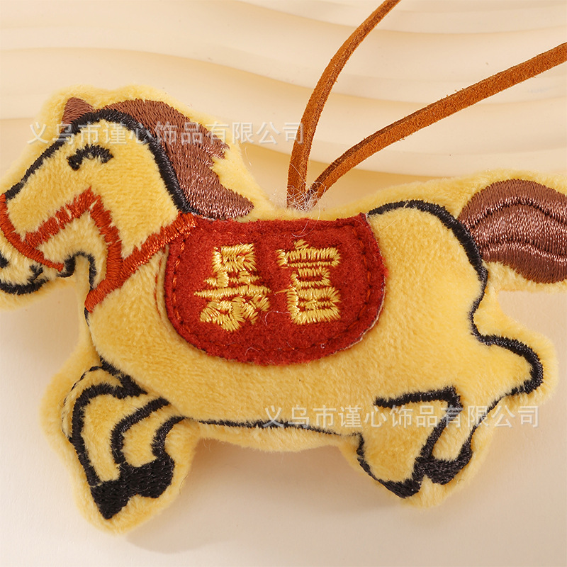 马年新款刺绣充棉小马挂绳挂饰中国风毛绒生肖马公仔包包挂件批货