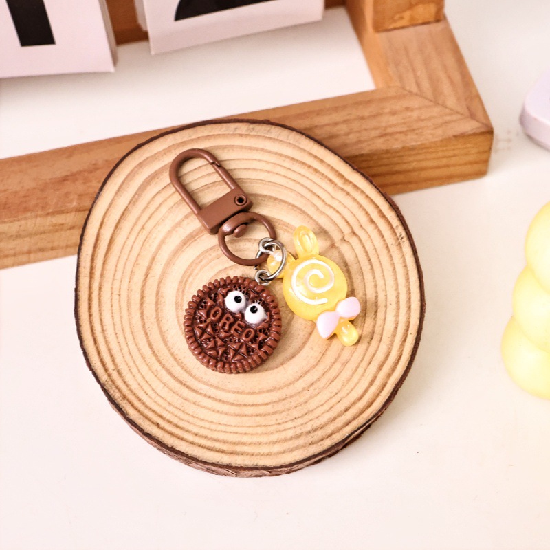 新年小礼品仿真饼干棒棒糖钥匙扣 ins少女包包挂件活动小礼品批发