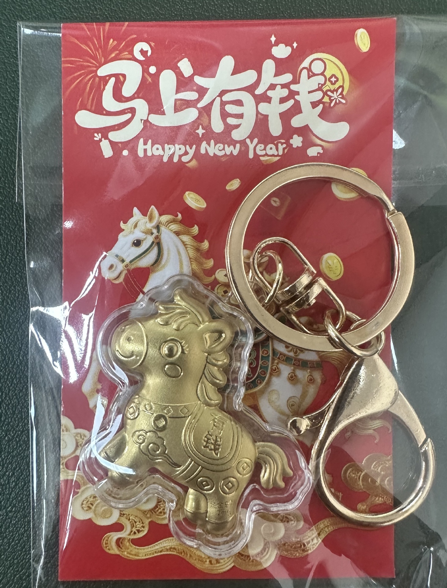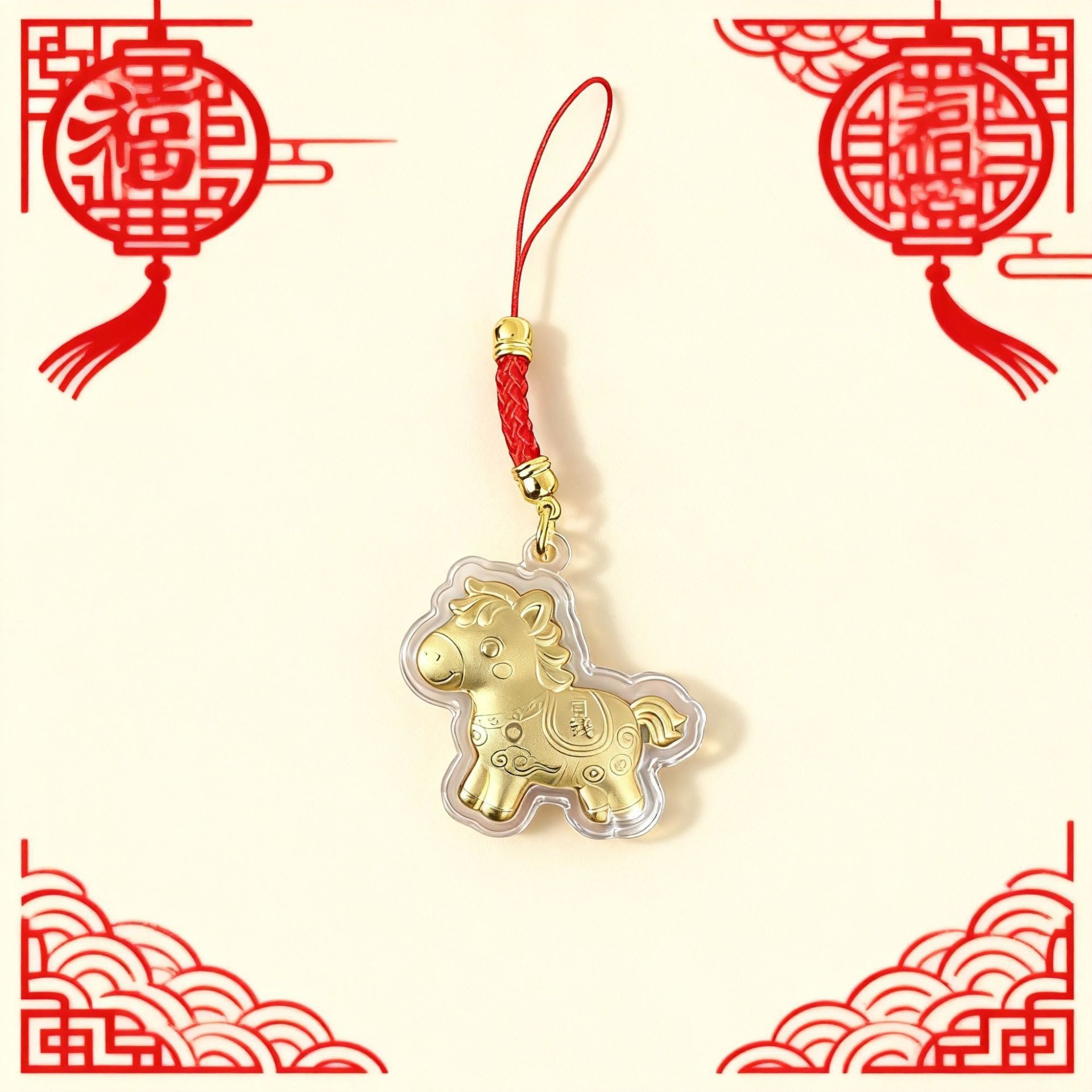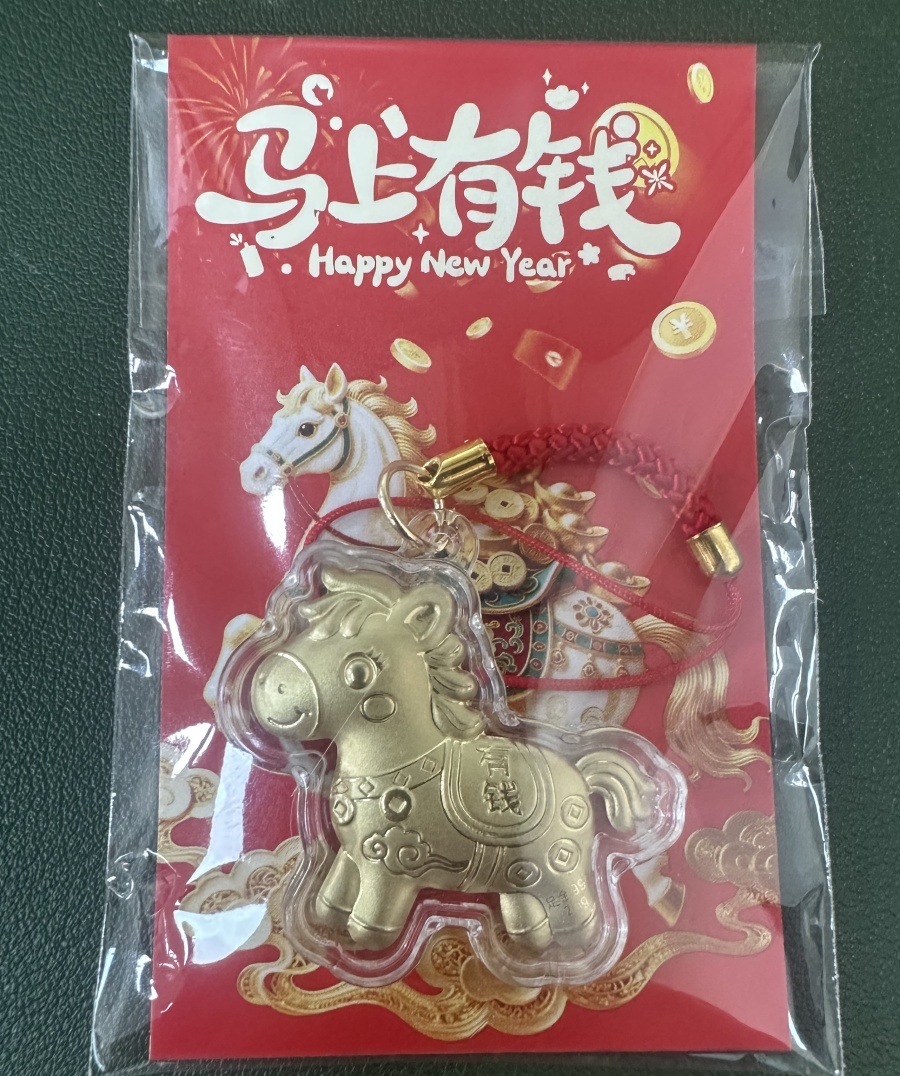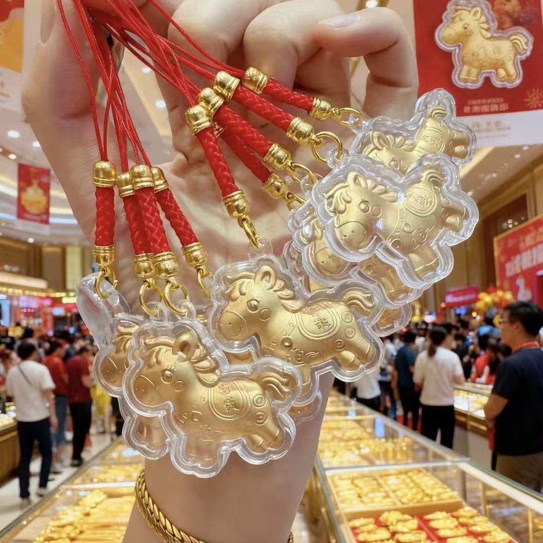 新款马年马上有钱黄金红绳手机链卡通小挂件钥匙扣春节贺岁礼批发