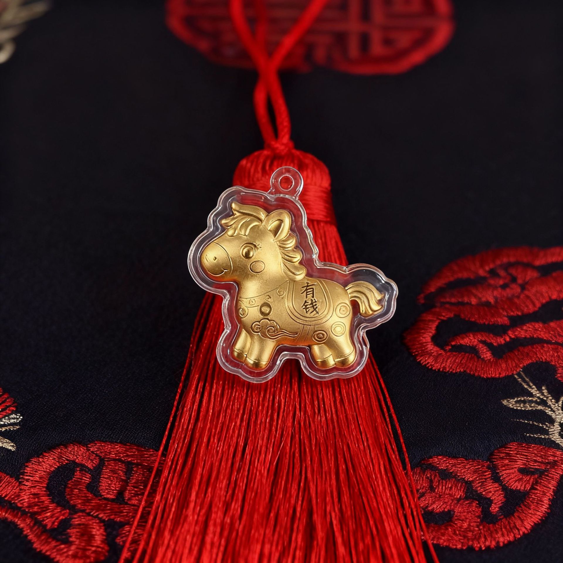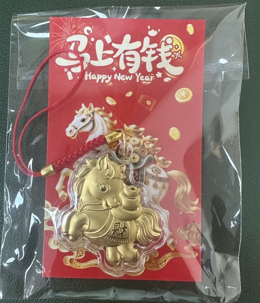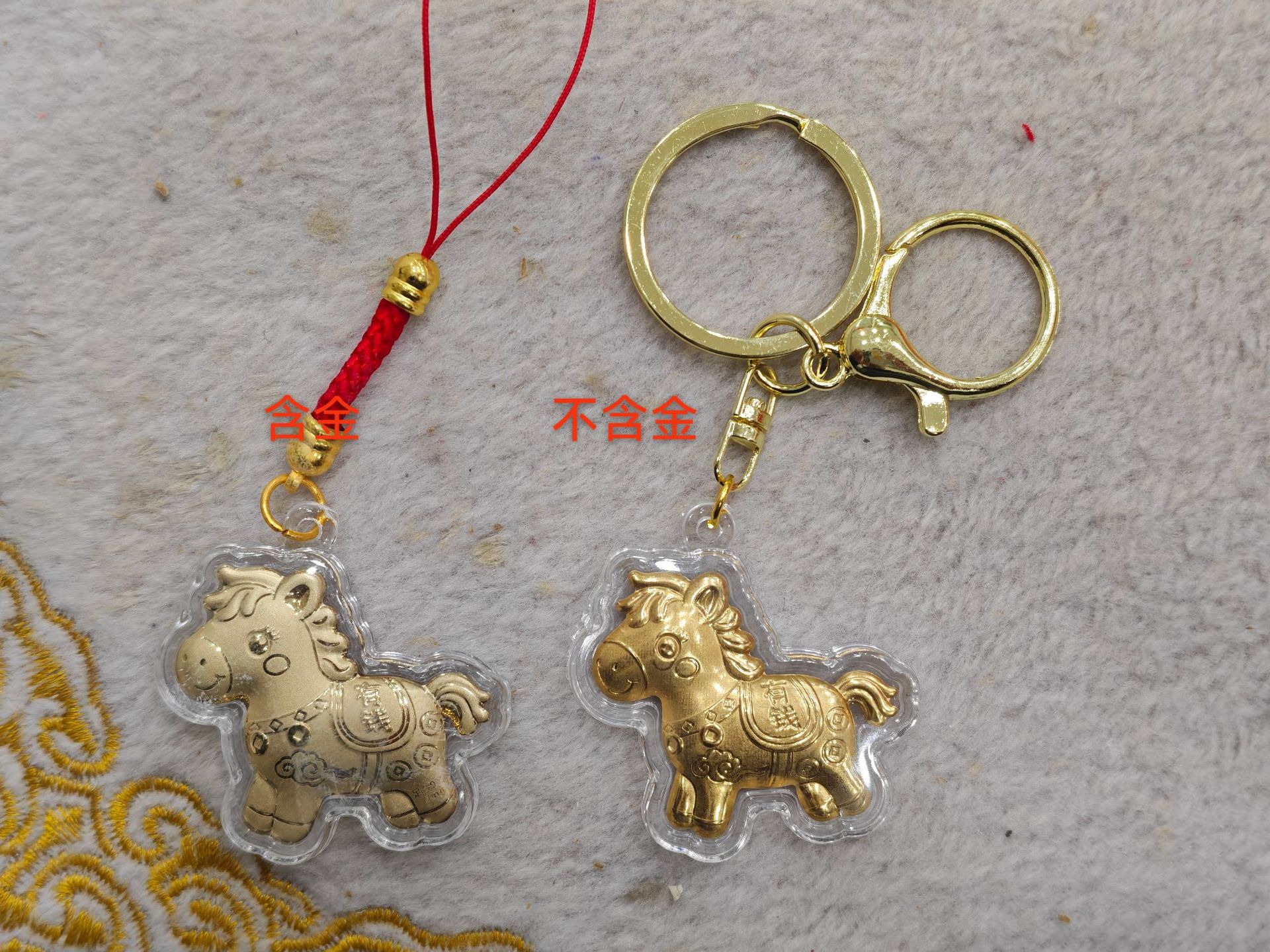 新款马年马上有钱黄金红绳手机链卡通小挂件钥匙扣春节贺岁礼批发