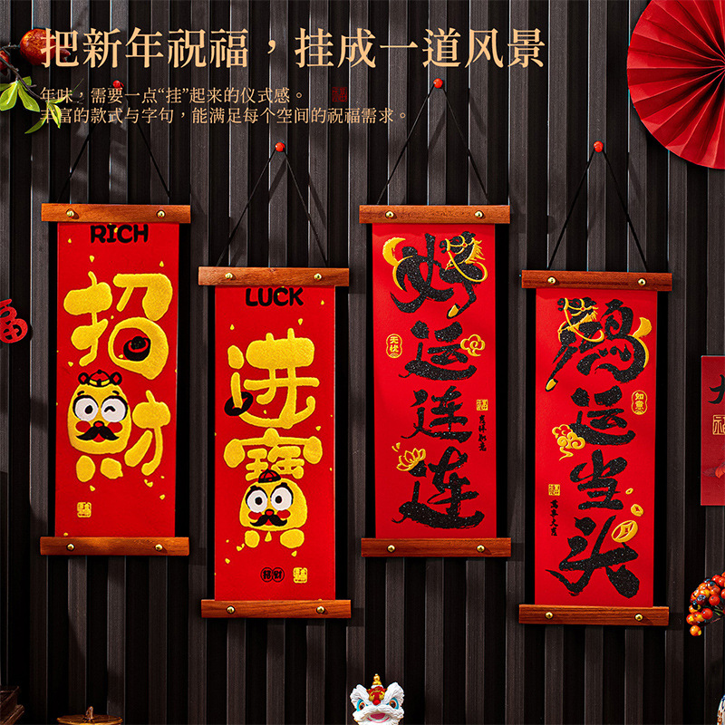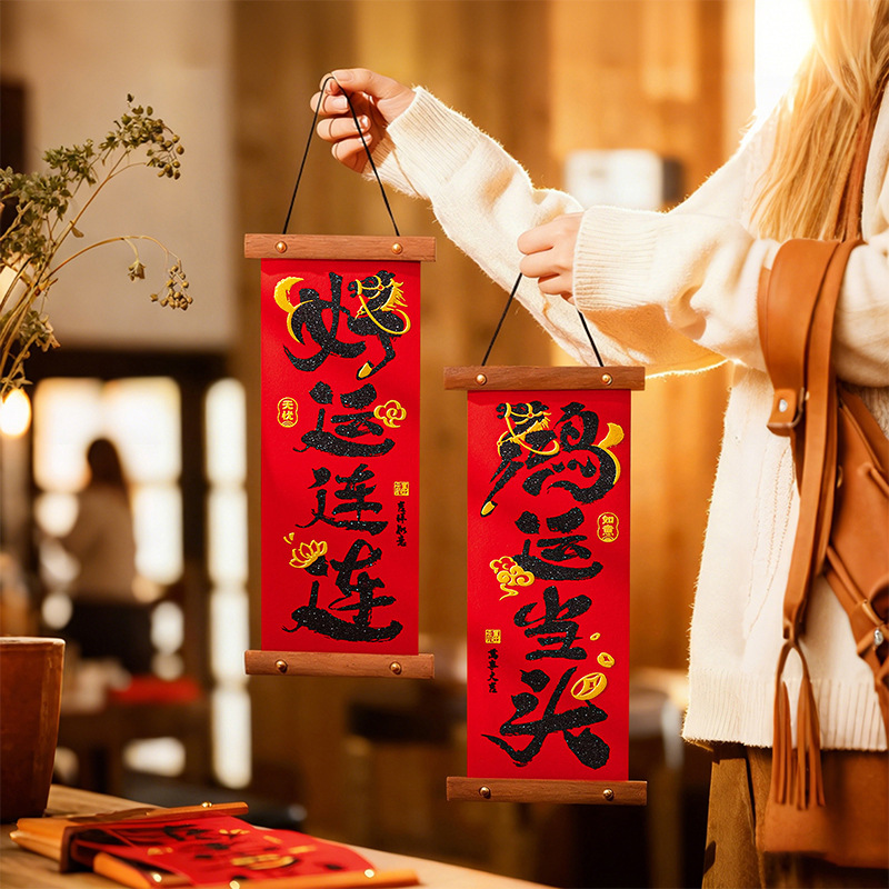 绒布小对联2026马年新年装饰过年喜庆挂件春节氛围布置入户门挂饰