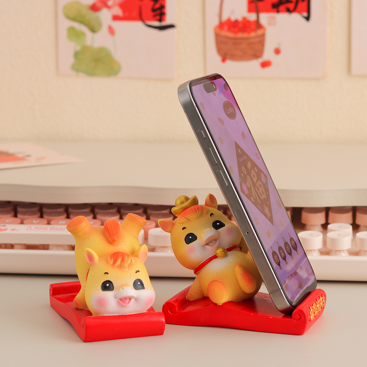 2026马年吉祥物手机支架摆件创意可爱办公室桌面装饰品新年伴手礼