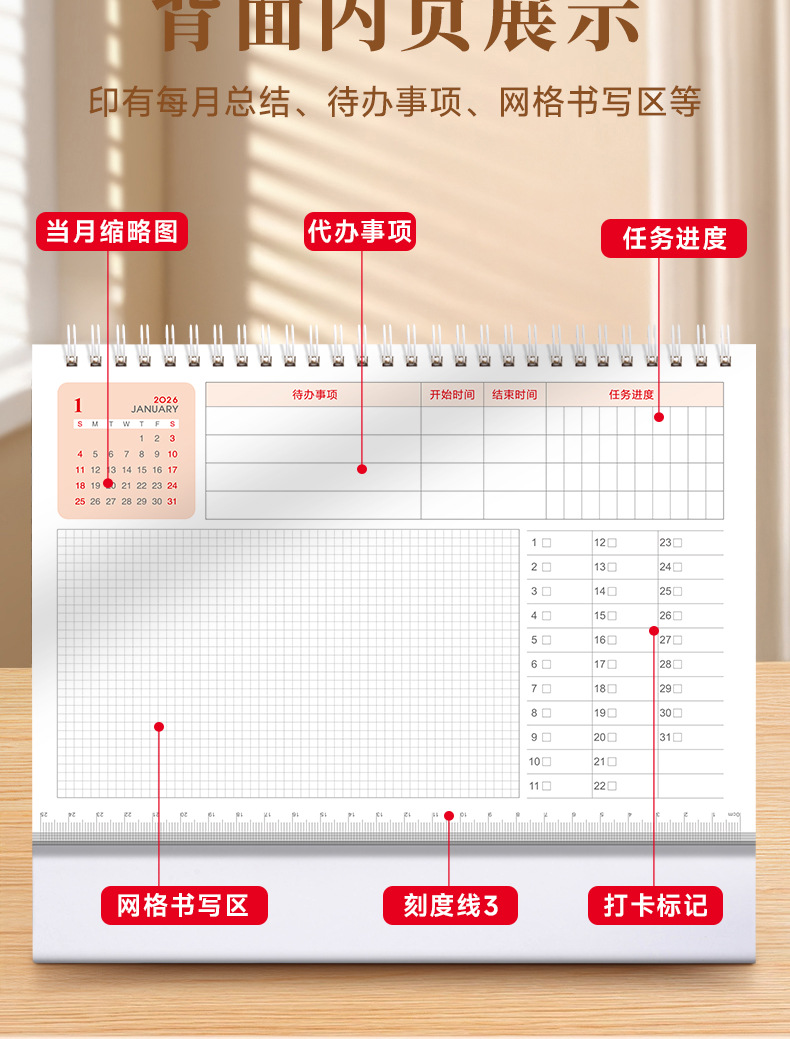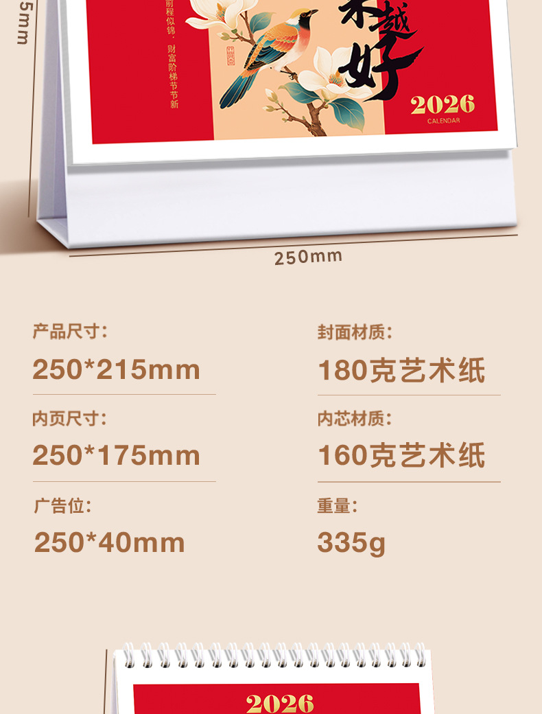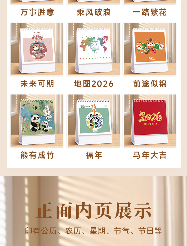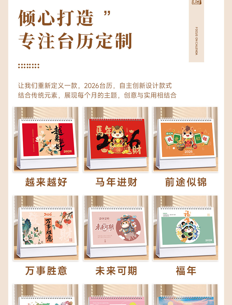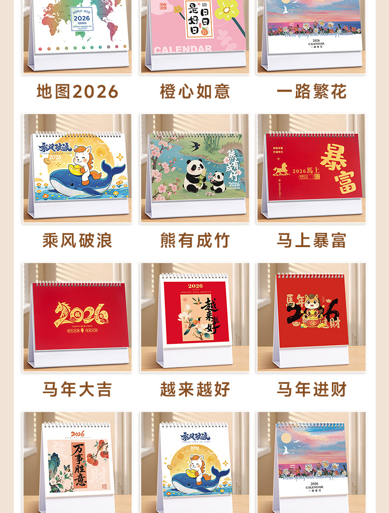 加厚纸质台历2026马年创意日历定制办公学习桌面摆件可印企业logo