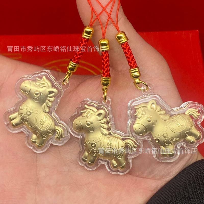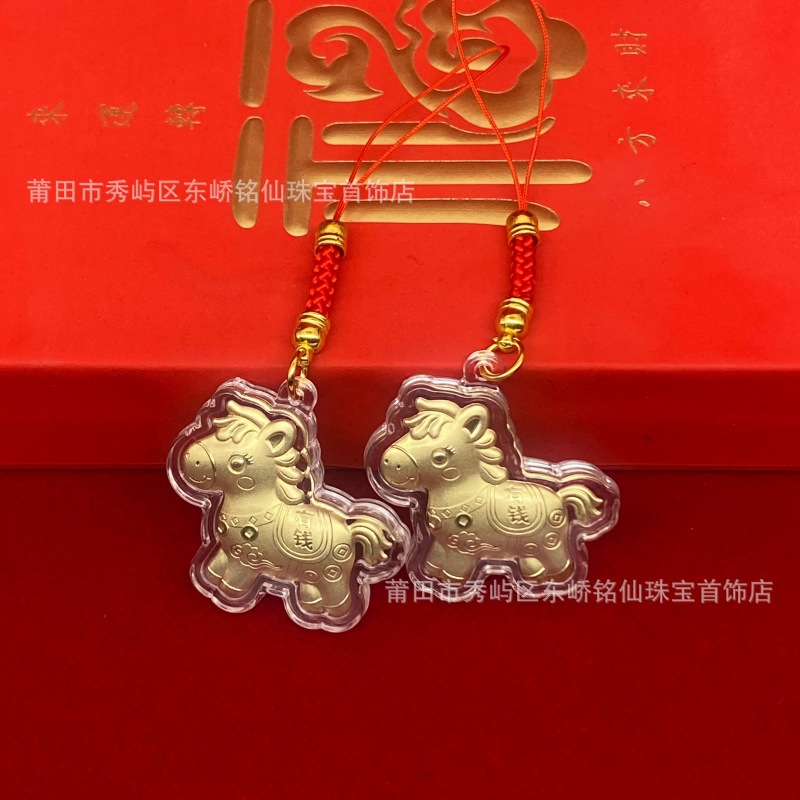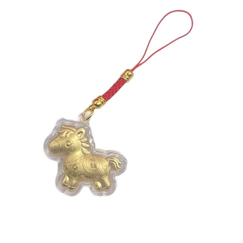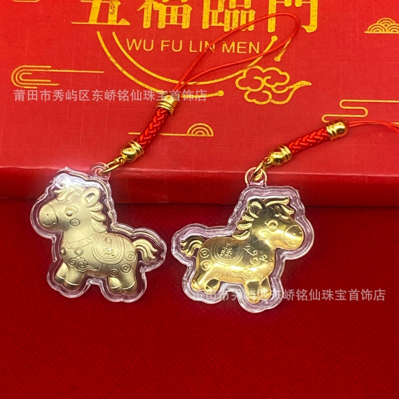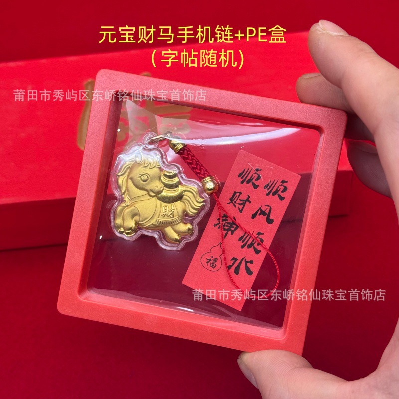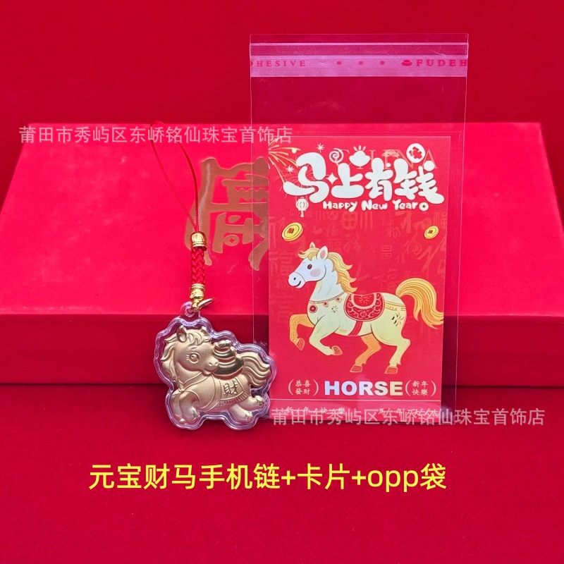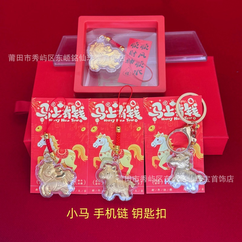 2026年马年马上有钱卡通Q版金箔小马手机链挂饰活动引流礼品批发