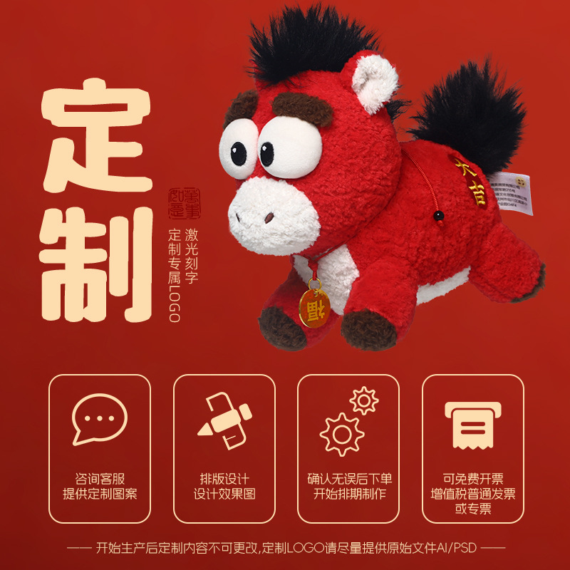 捉趣2026马年吉祥物挂件生肖马公仔毛绒玩具抱枕玩偶娃娃年会礼物