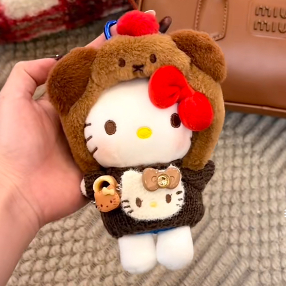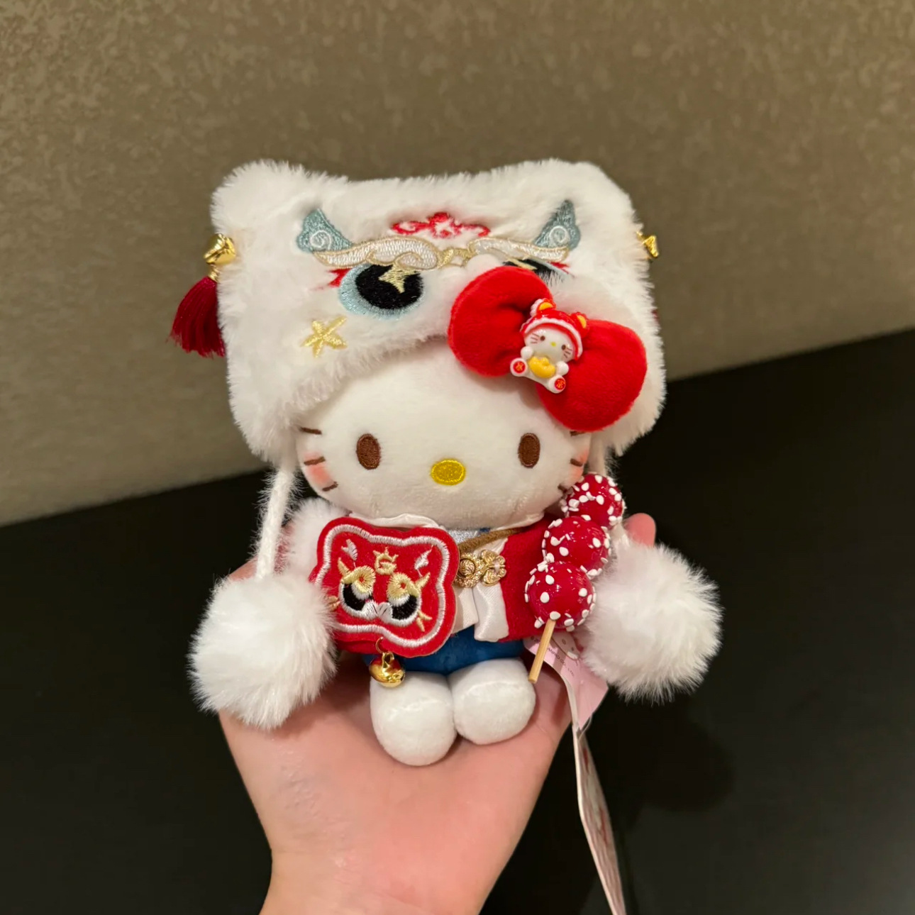 新春马年可爱小醒狮毛绒HelloKitty钥匙扣红色娃衣装饰喜庆包挂件
