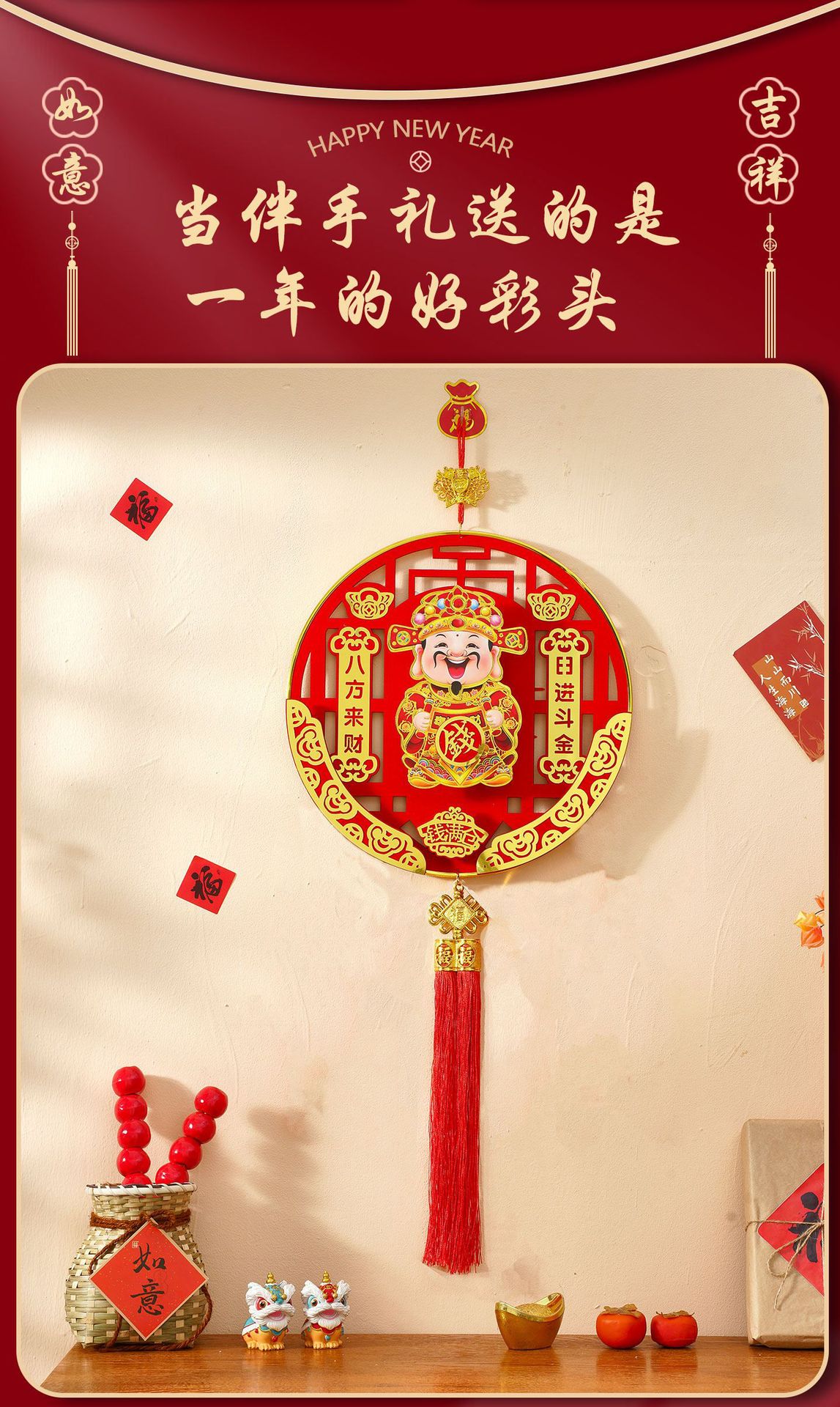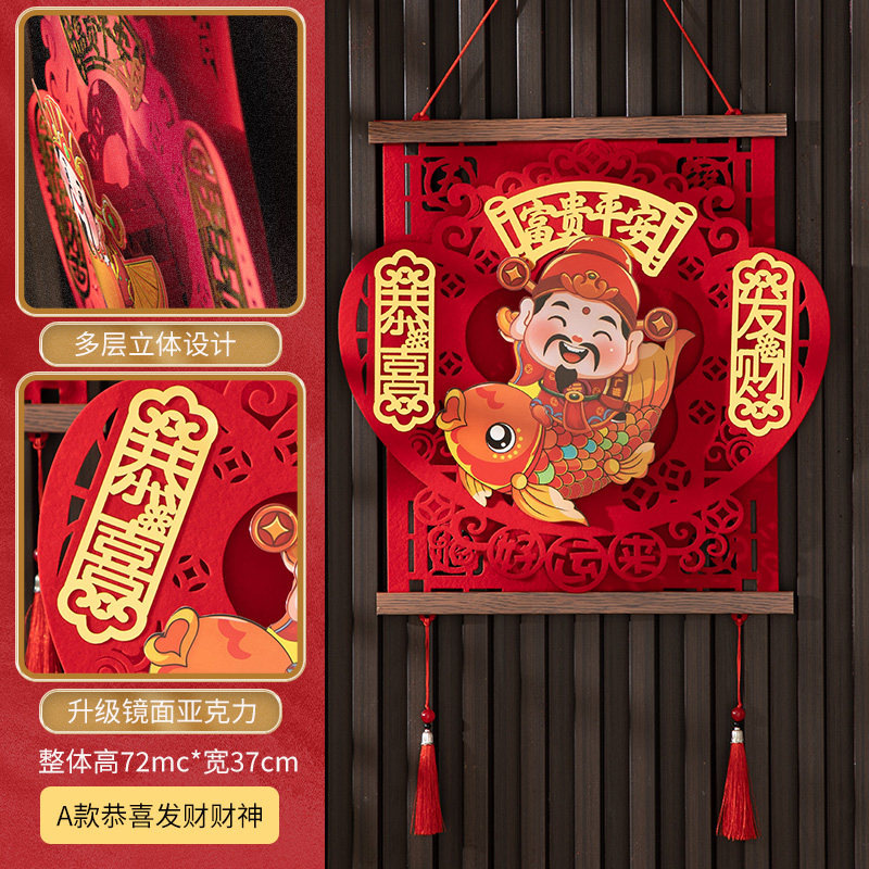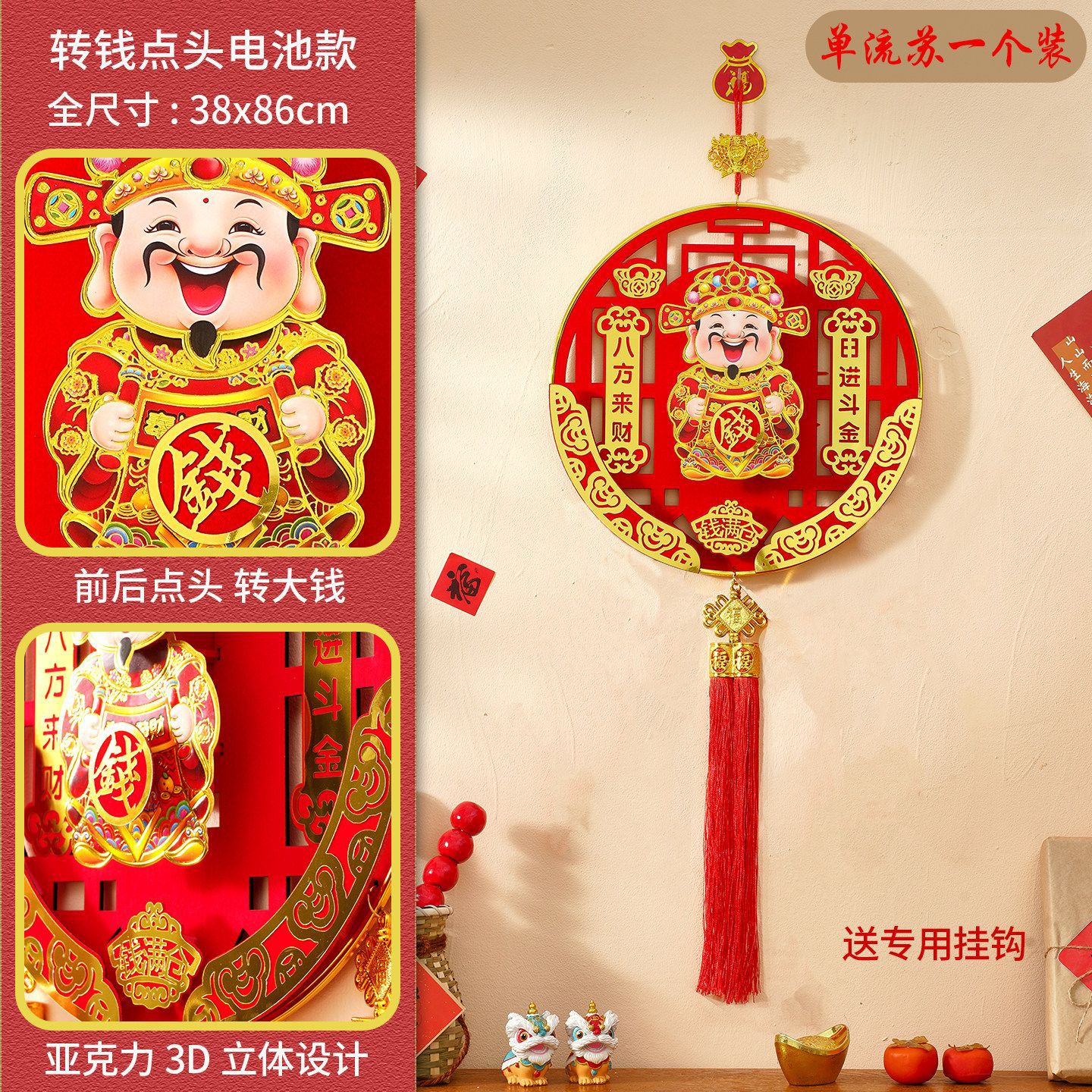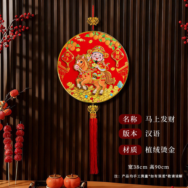 2026新年电动点头摇头财神马年春节挂件客厅背景墙福字装饰品挂饰
