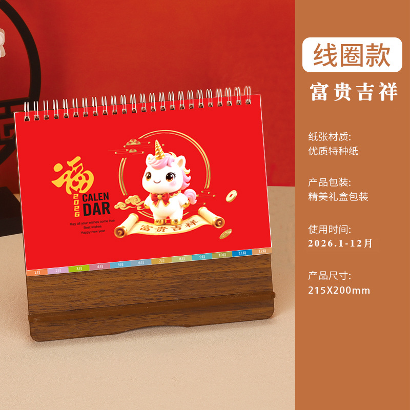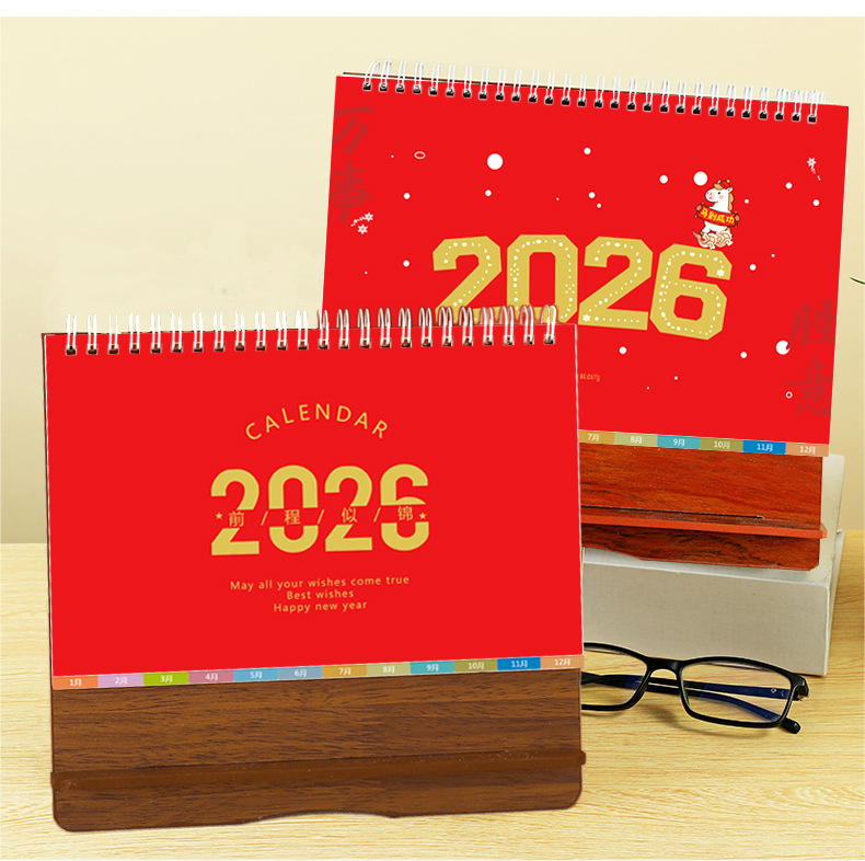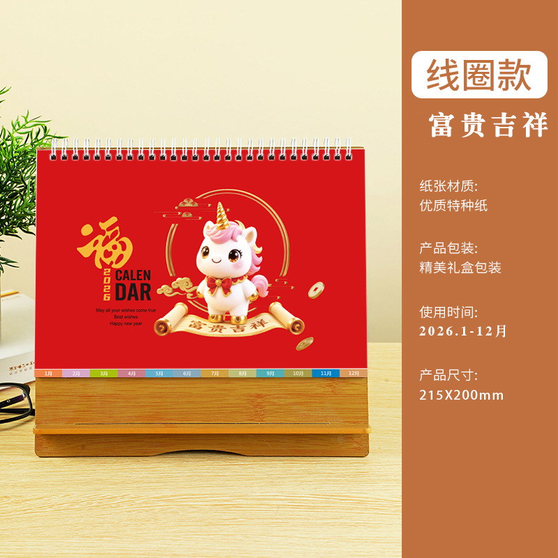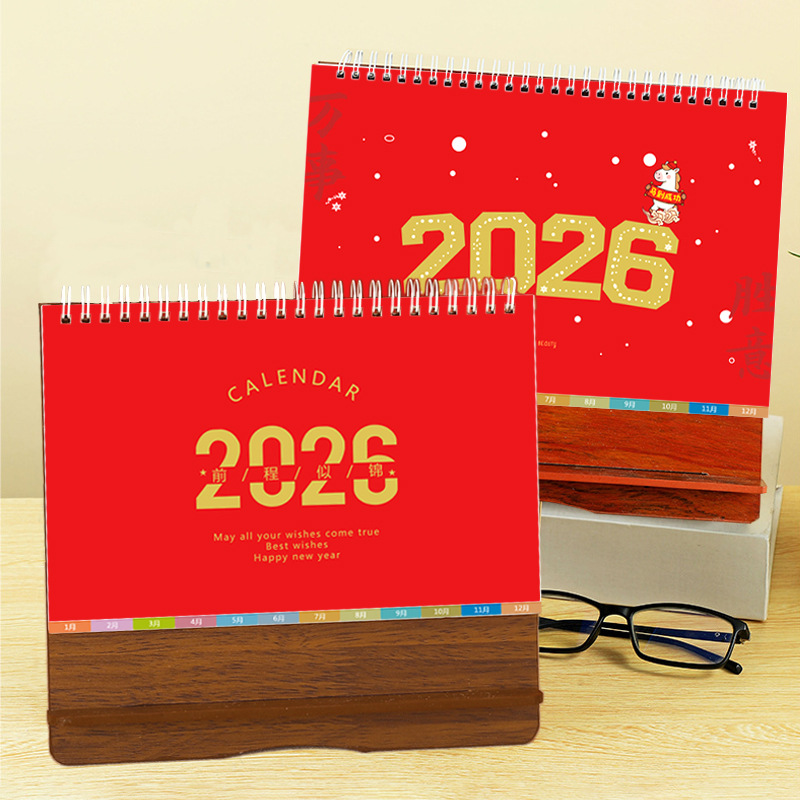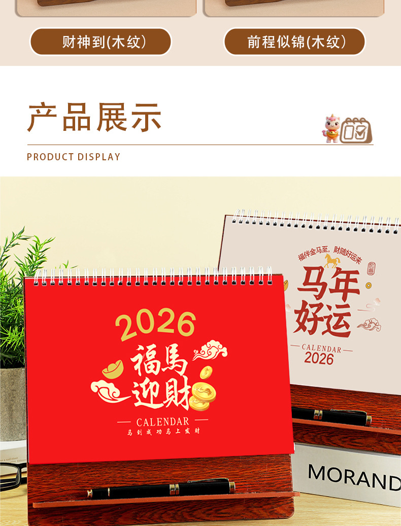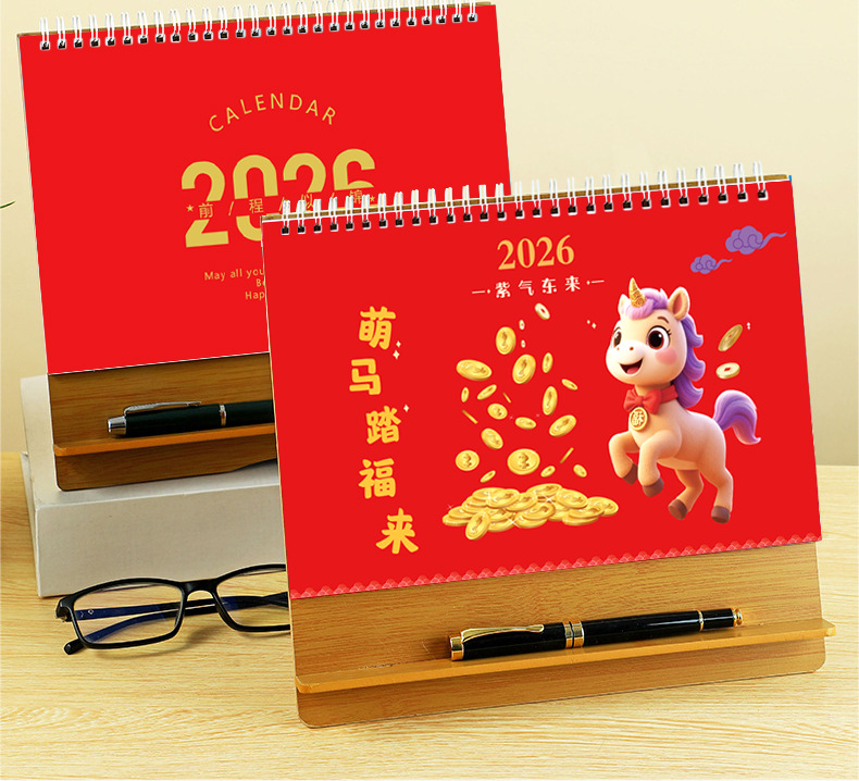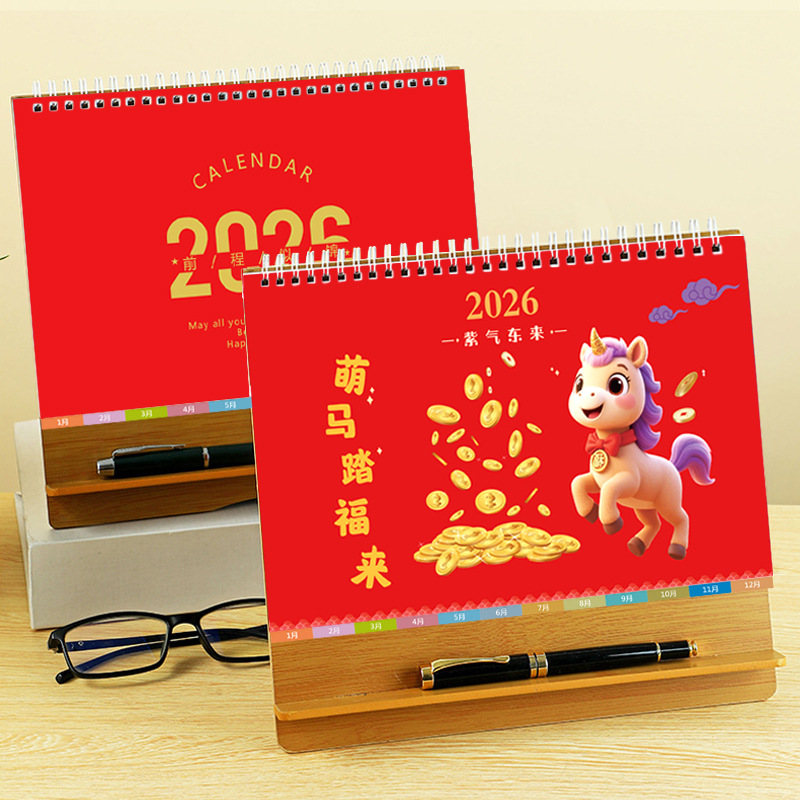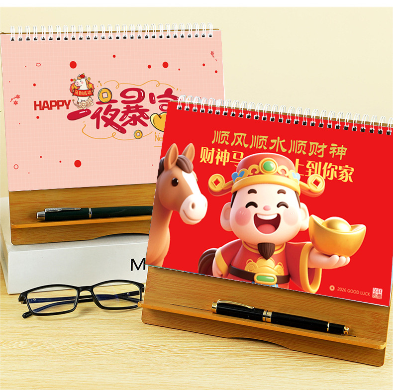 台历2026马年木质多功能手机支架创意办公桌面摆件日历企业定制