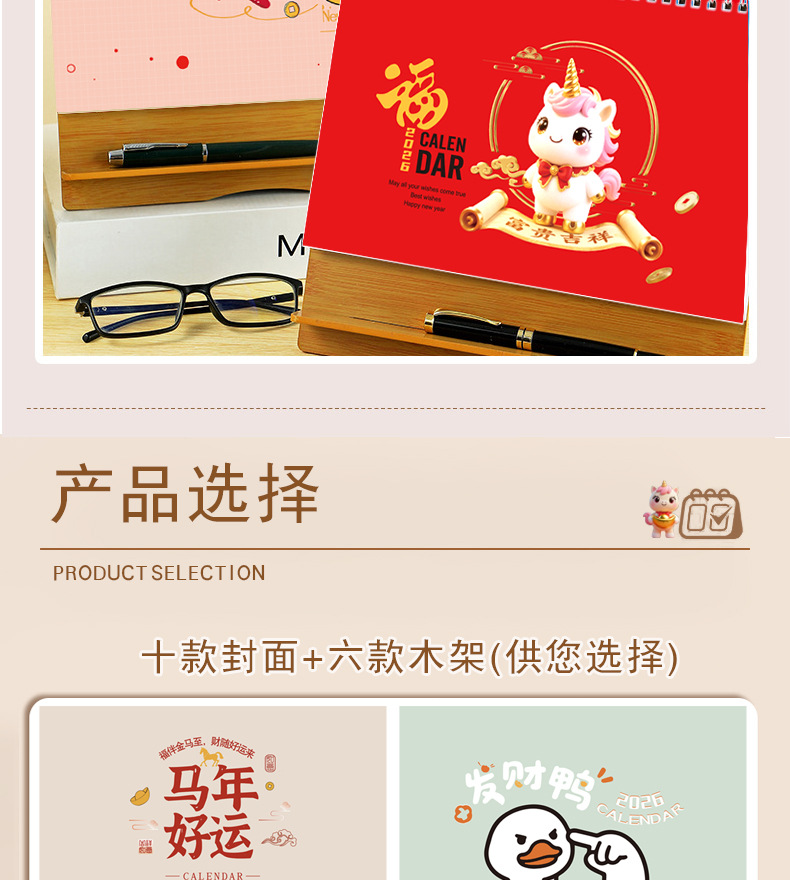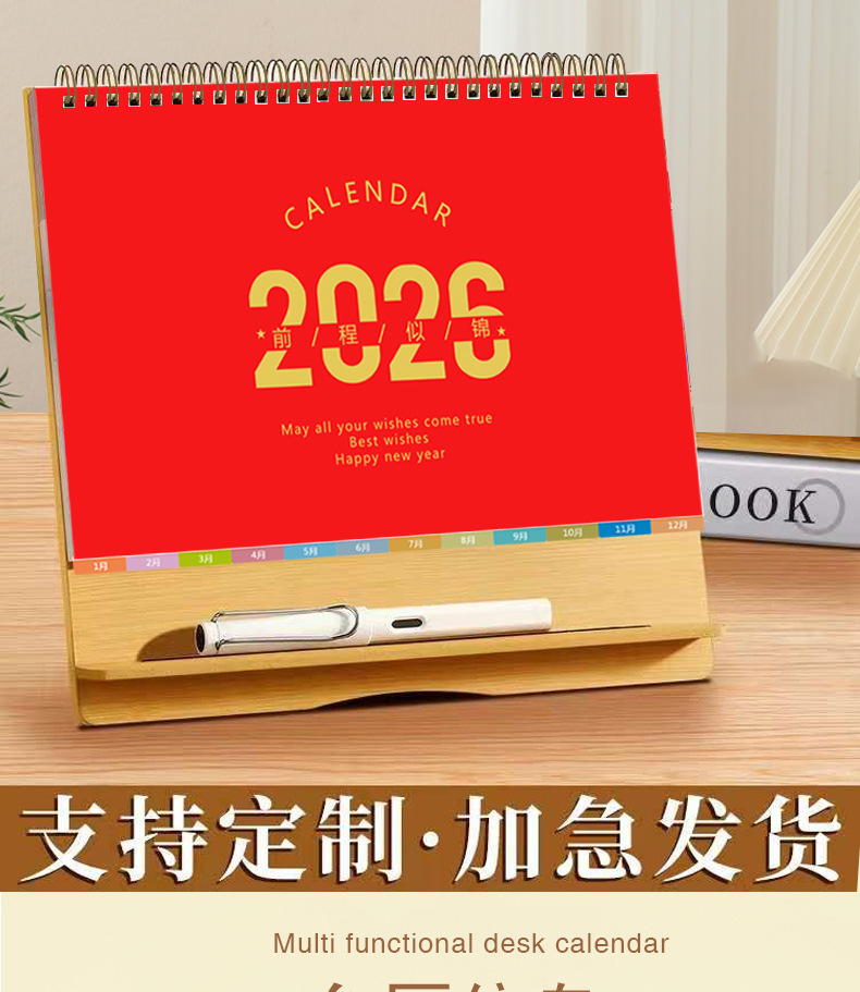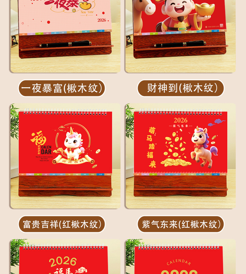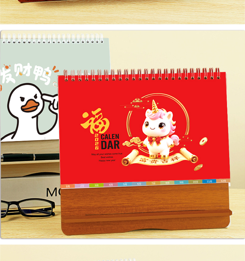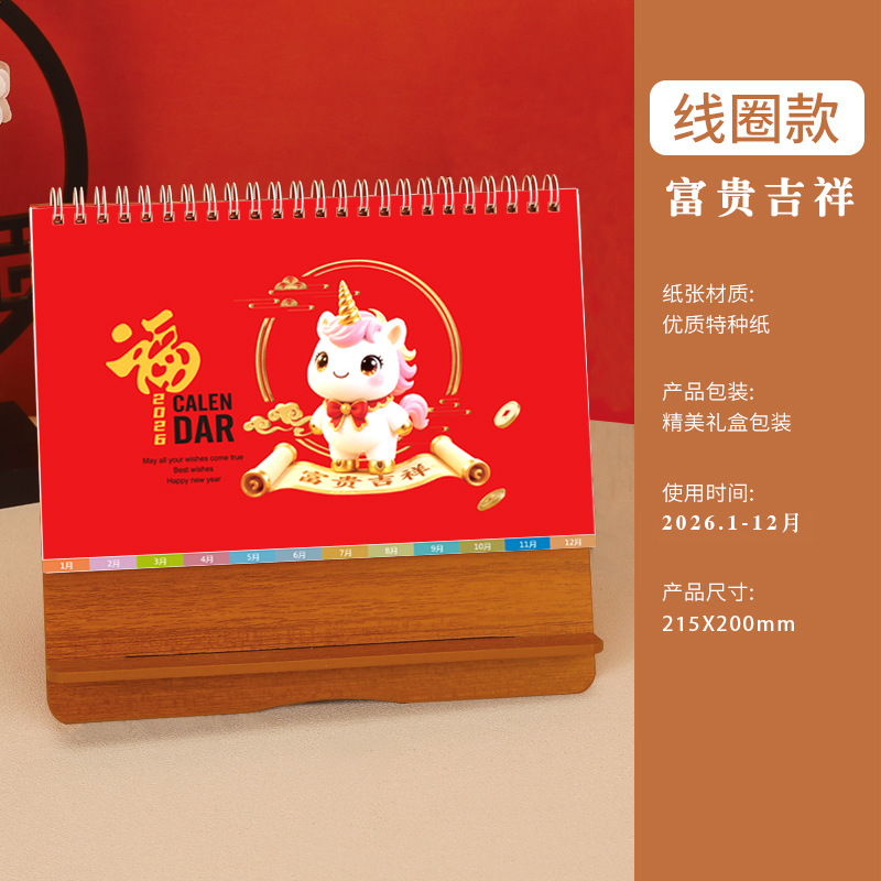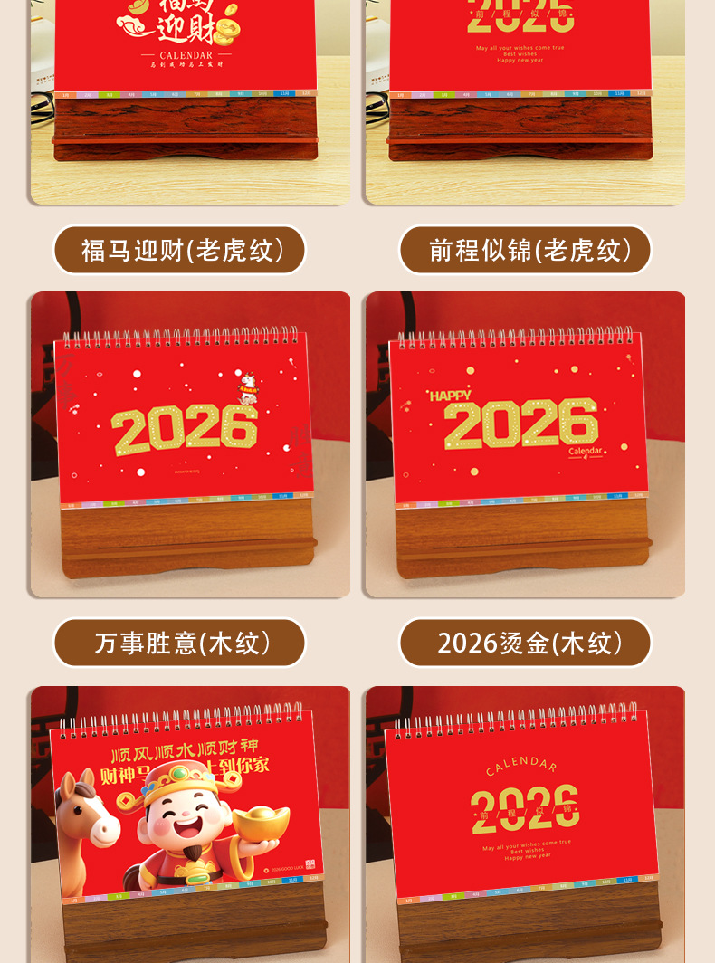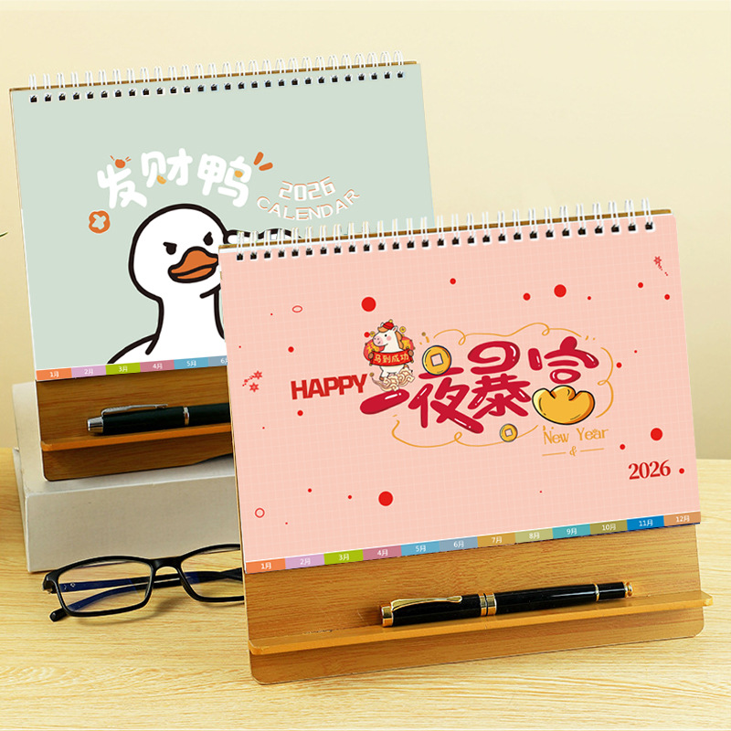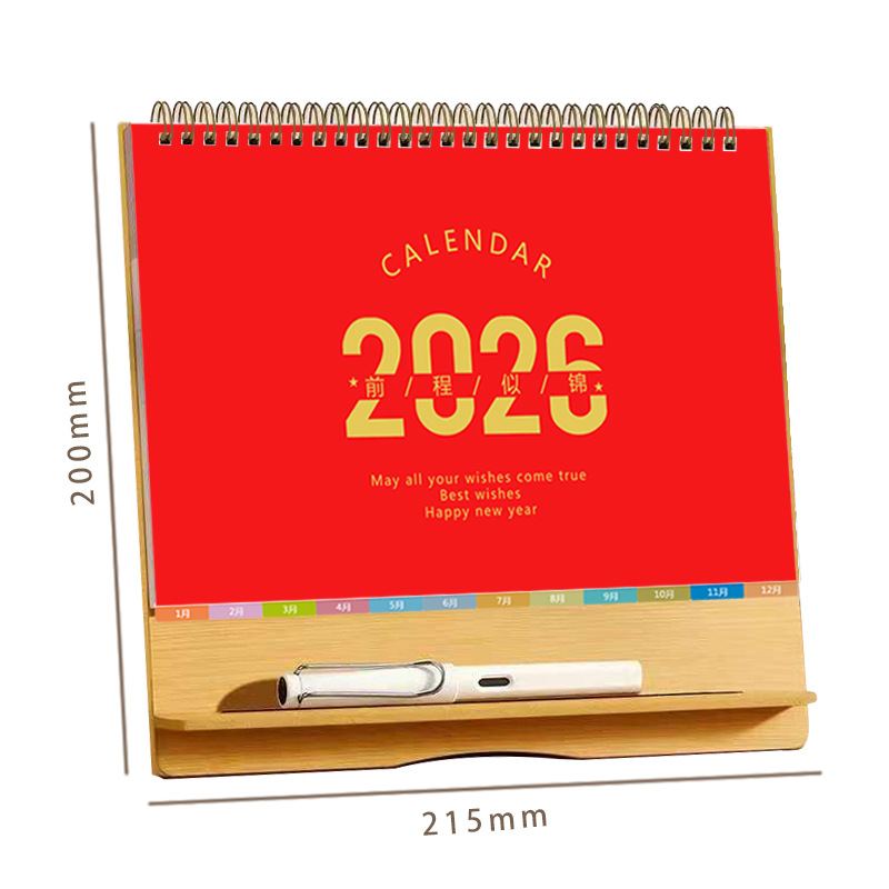 台历2026马年木质多功能手机支架创意办公桌面摆件日历企业定制