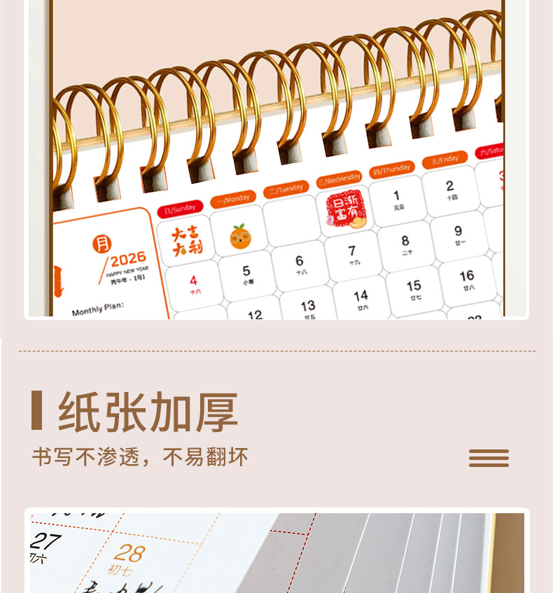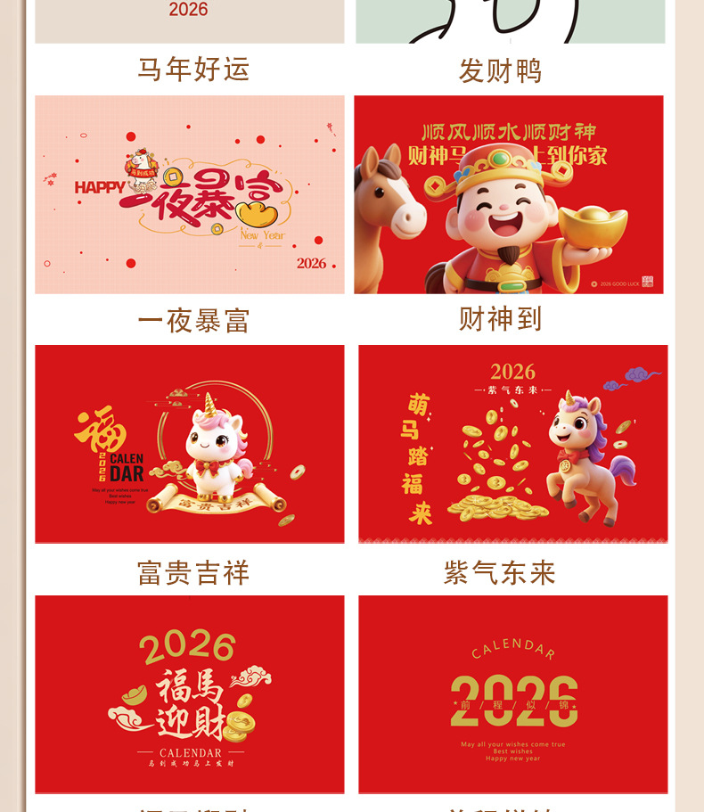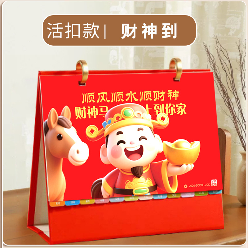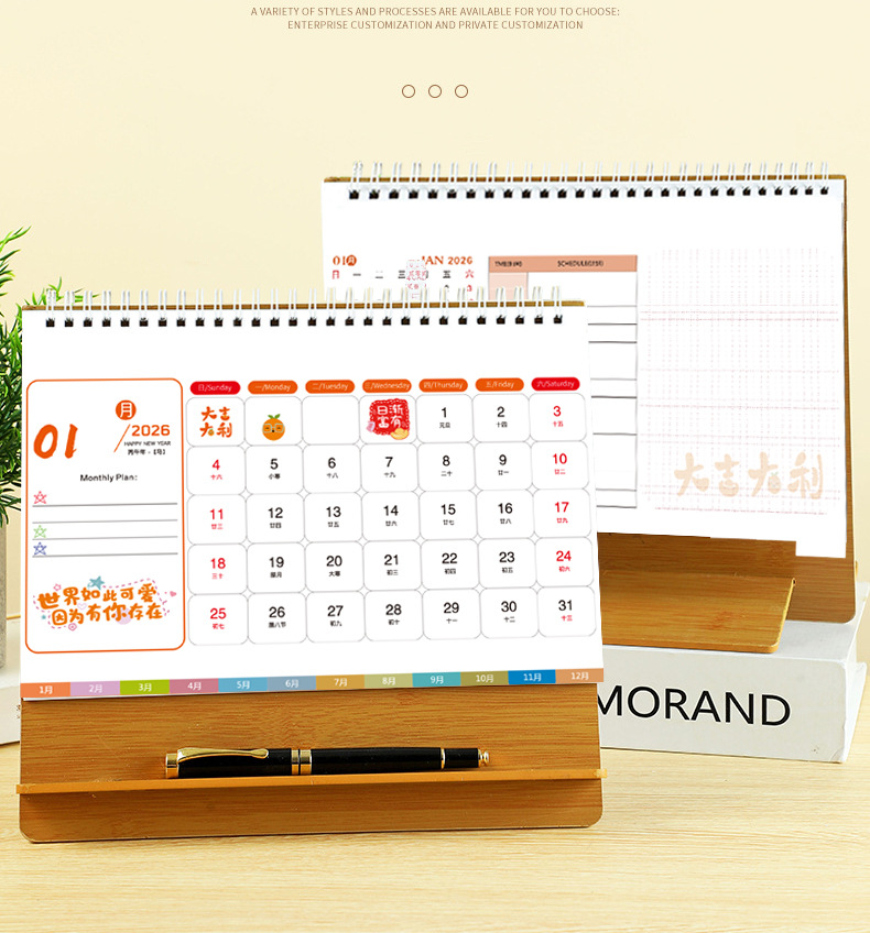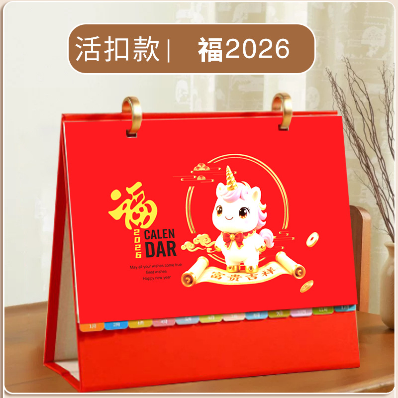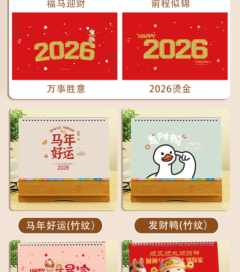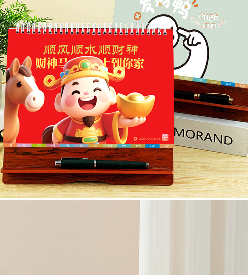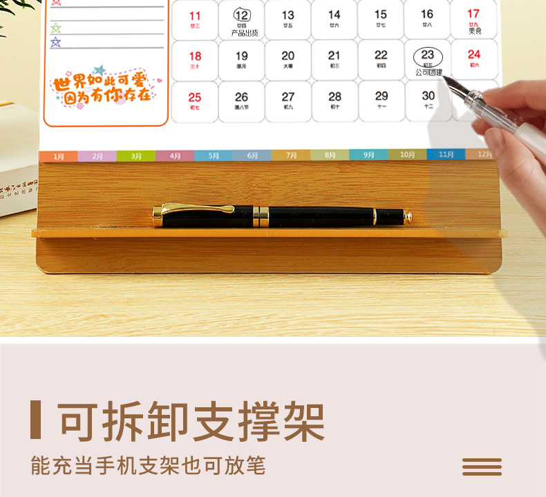 台历2026马年木质多功能手机支架创意办公桌面摆件日历企业定制