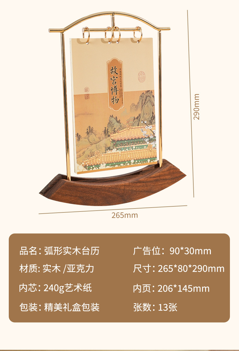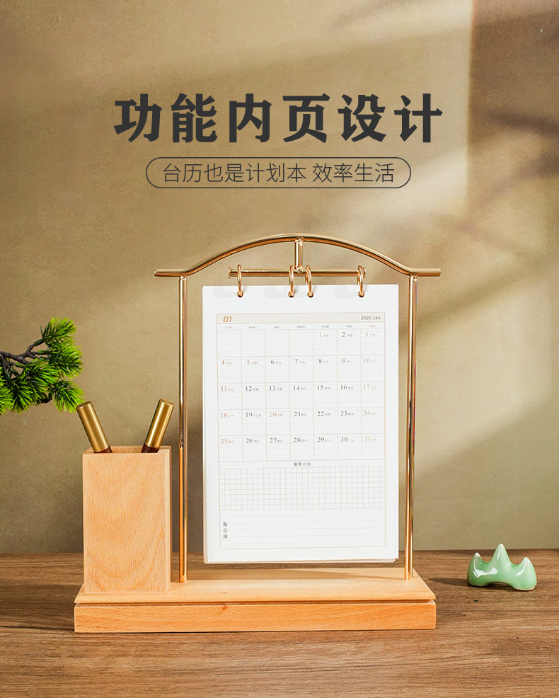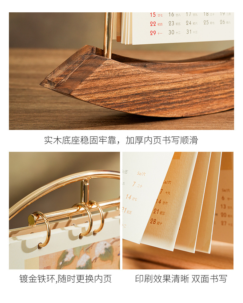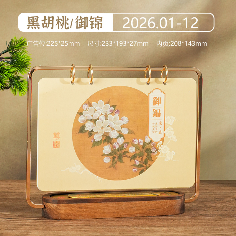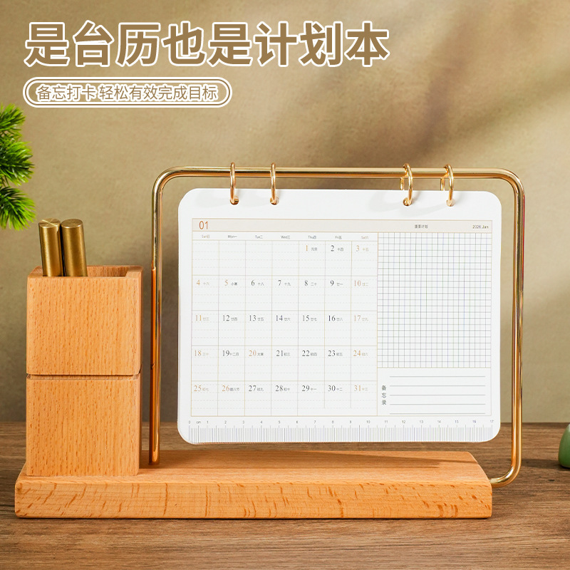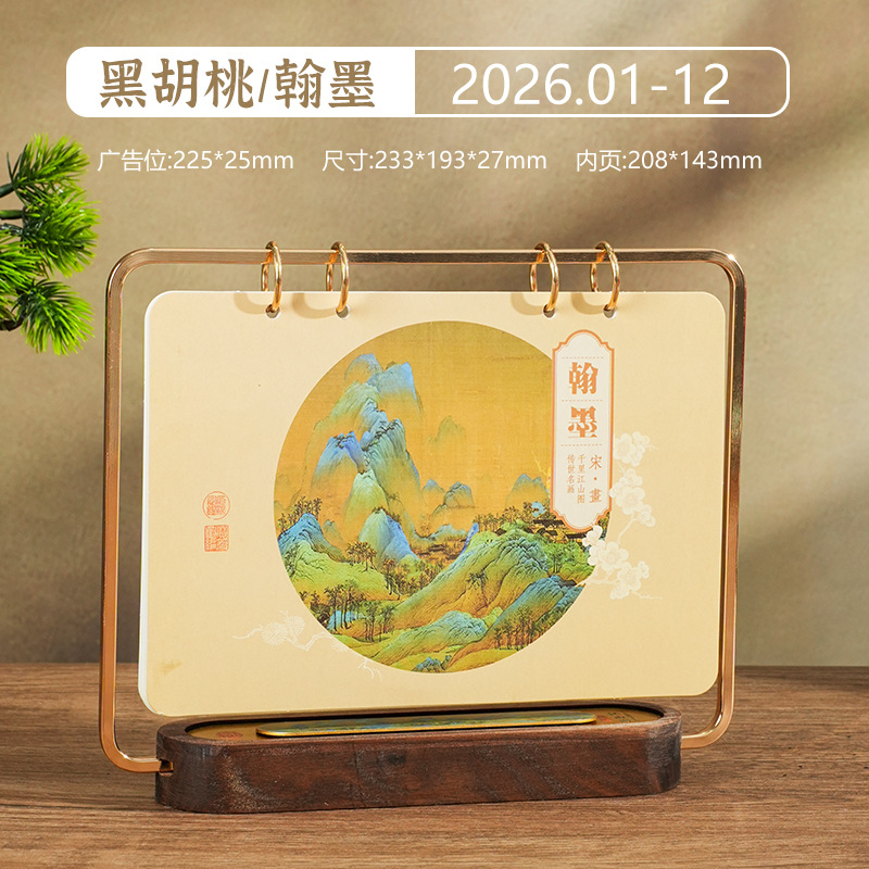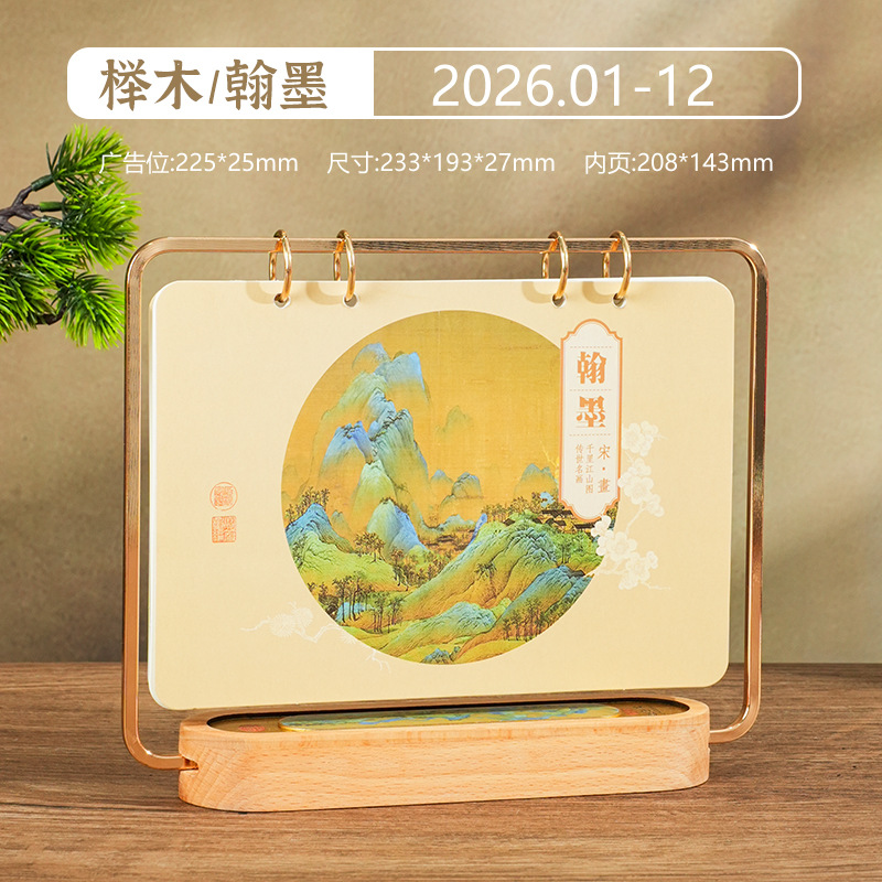 2026马年新款中式皮质台历定 做实木架底座日历摆台创意摆件定 制