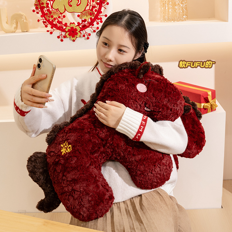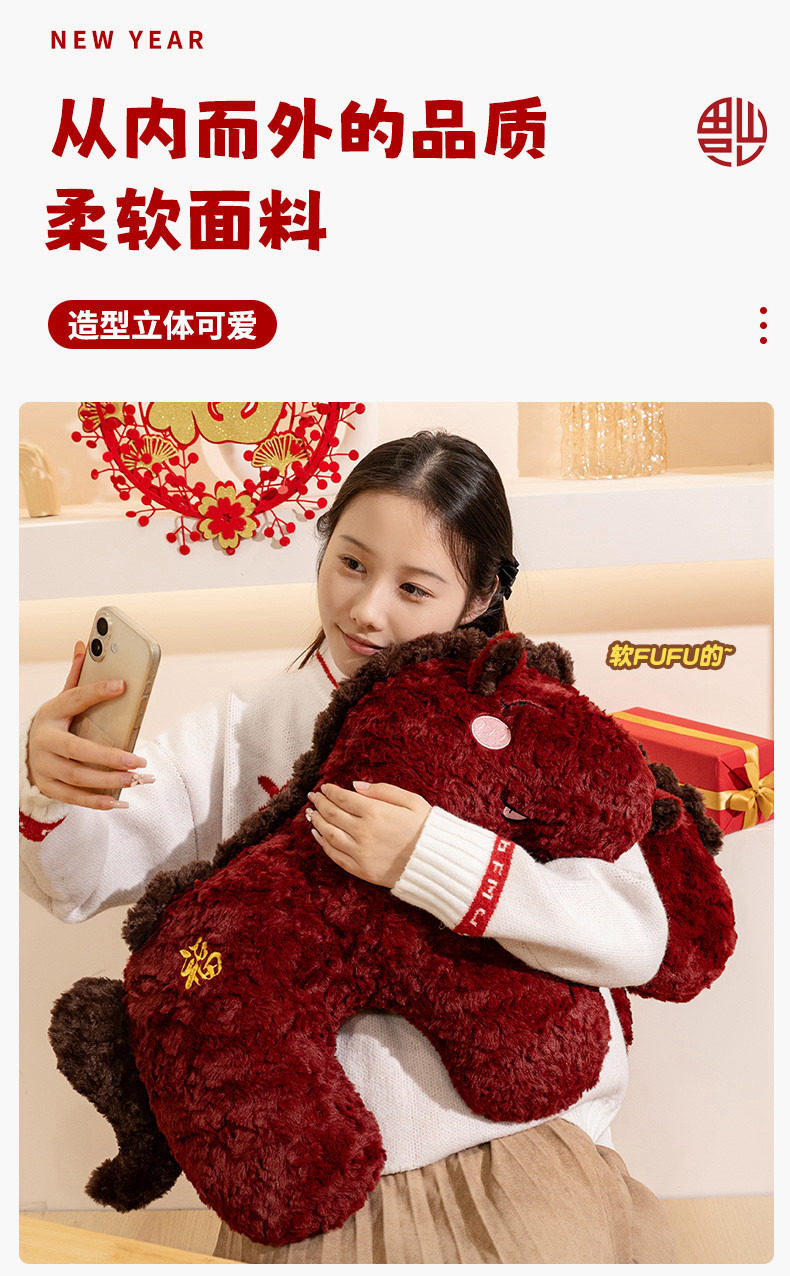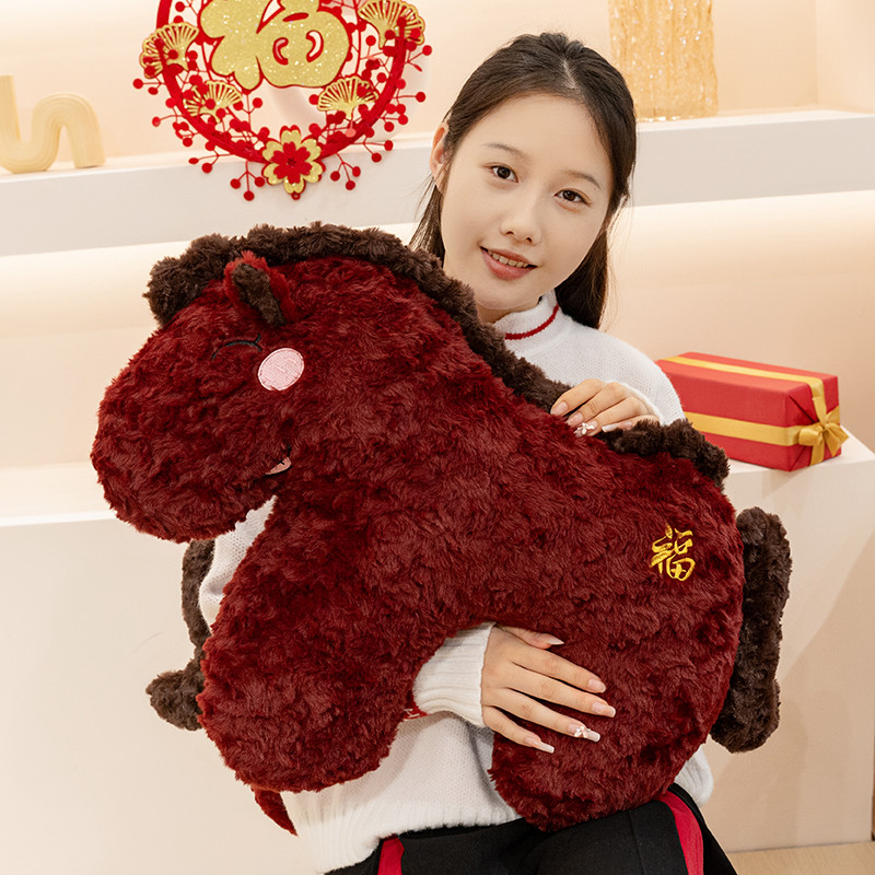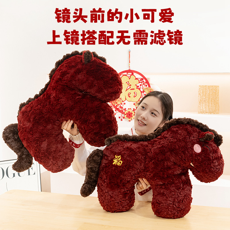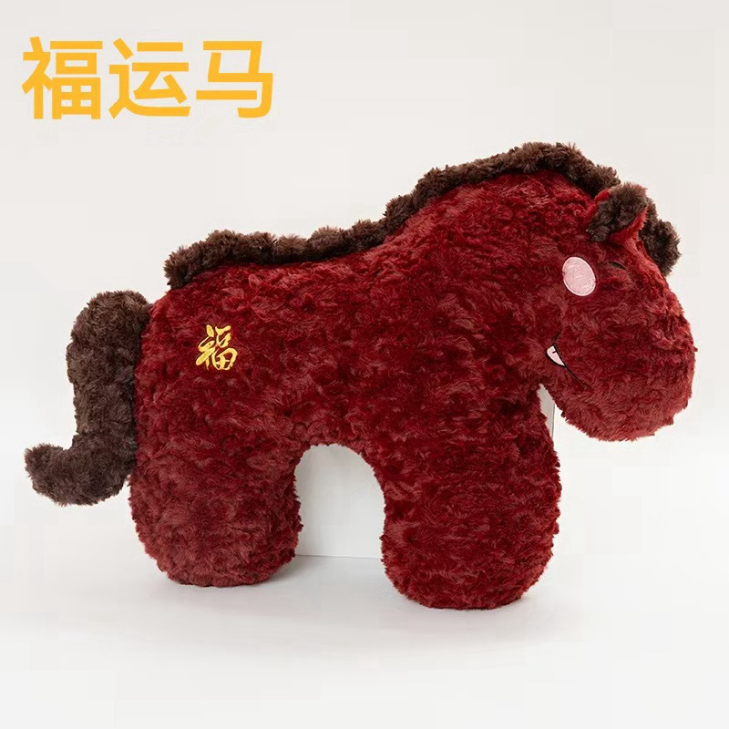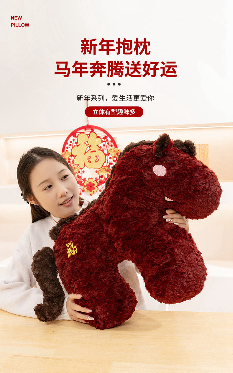 马年福运萌马抱枕生肖马公仔玩偶新中式客厅沙发小马靠枕新年摆件