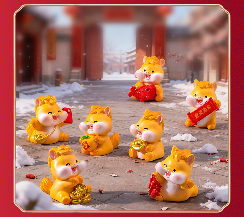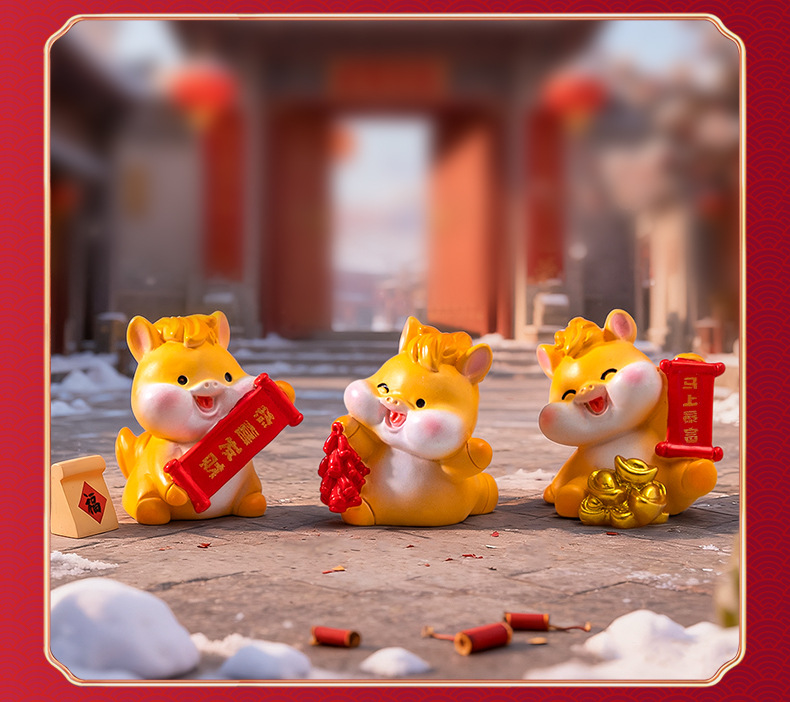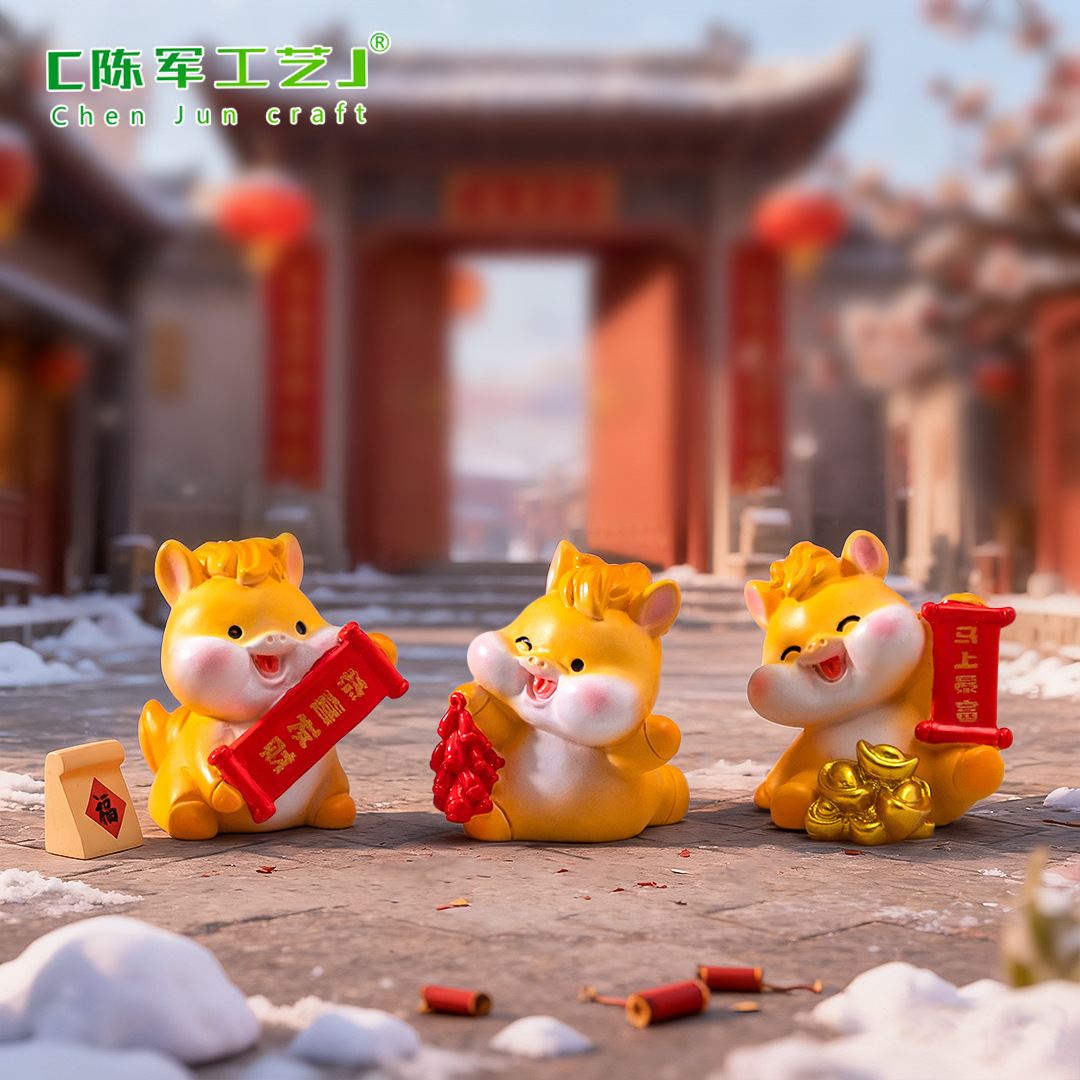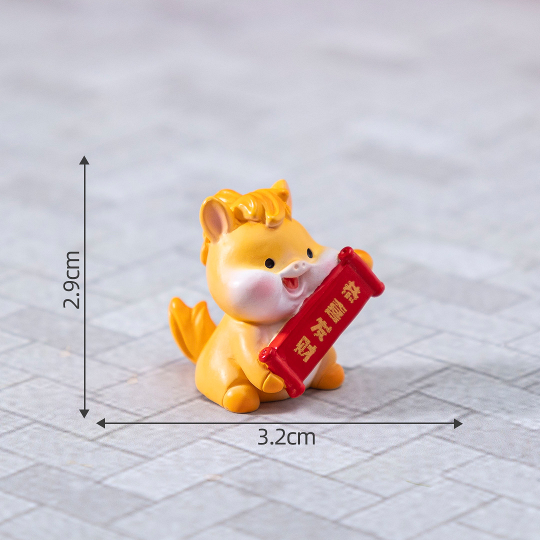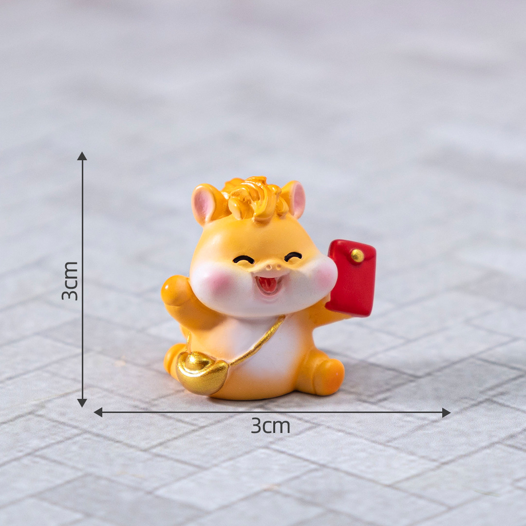 微景观创意卡通新年元宝小马公仔 DIY装饰配件迷你车载卓曼小摆件