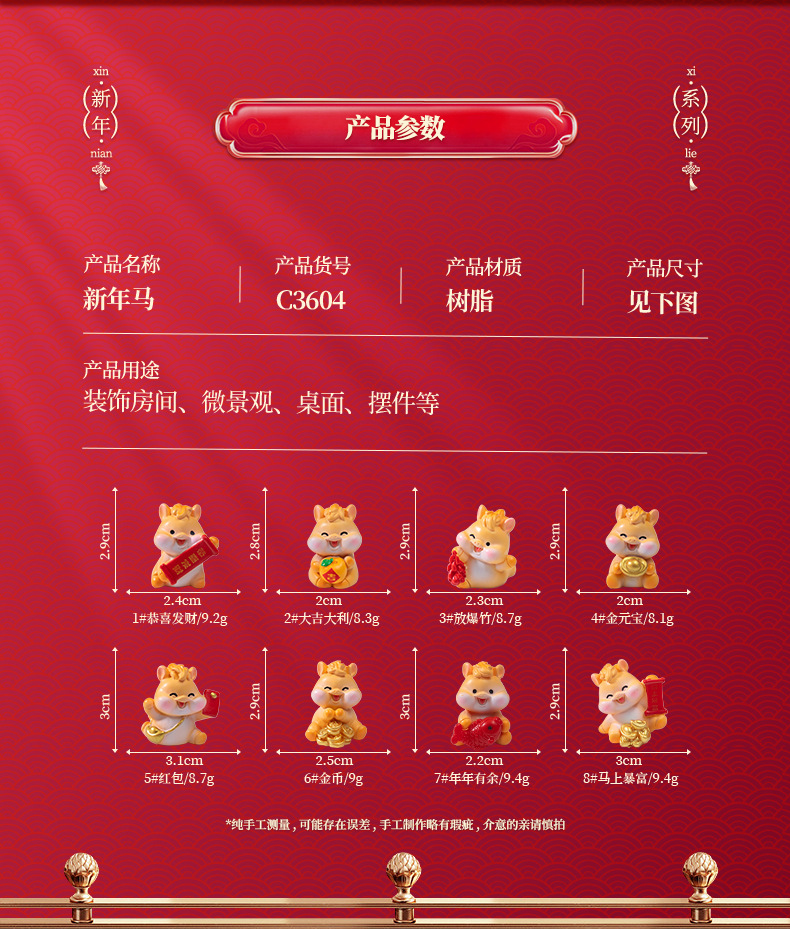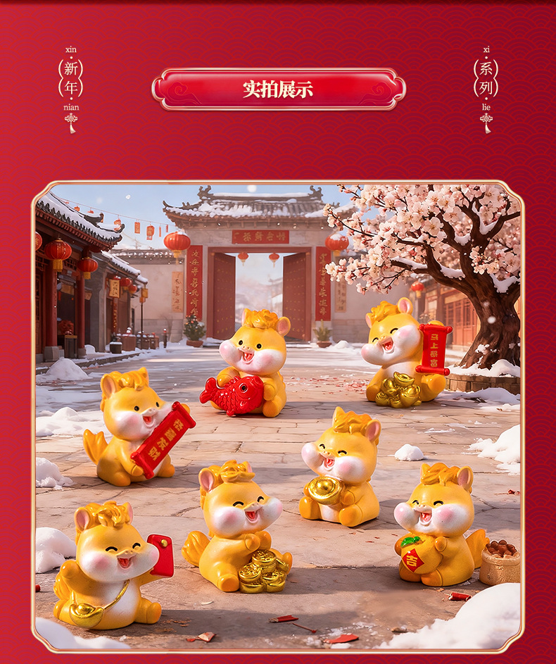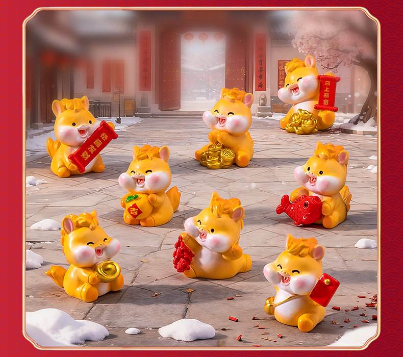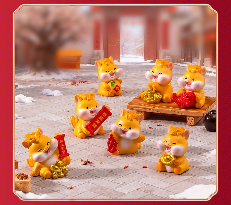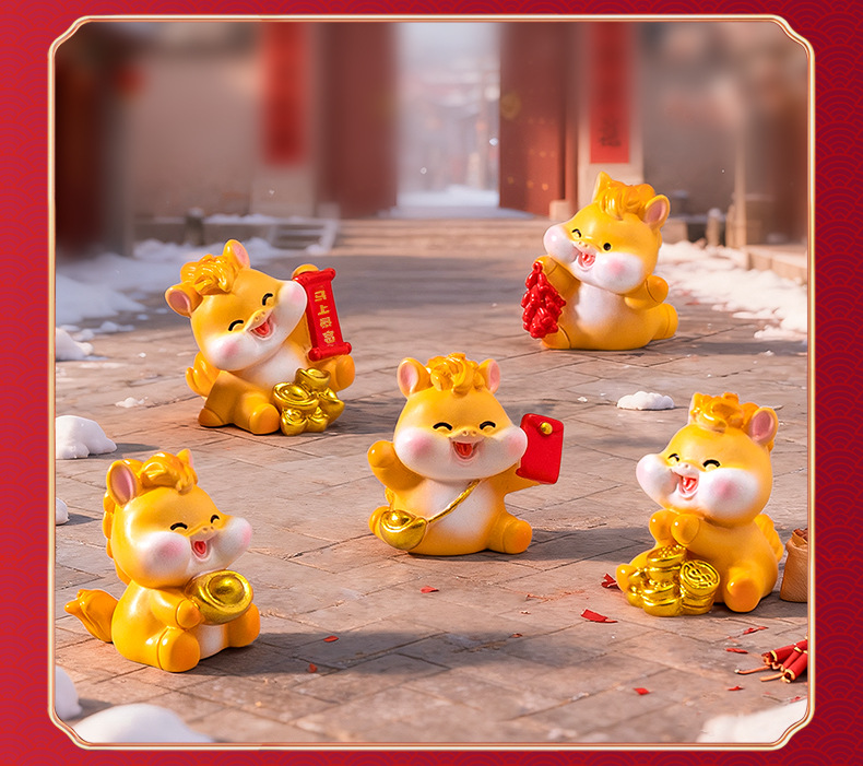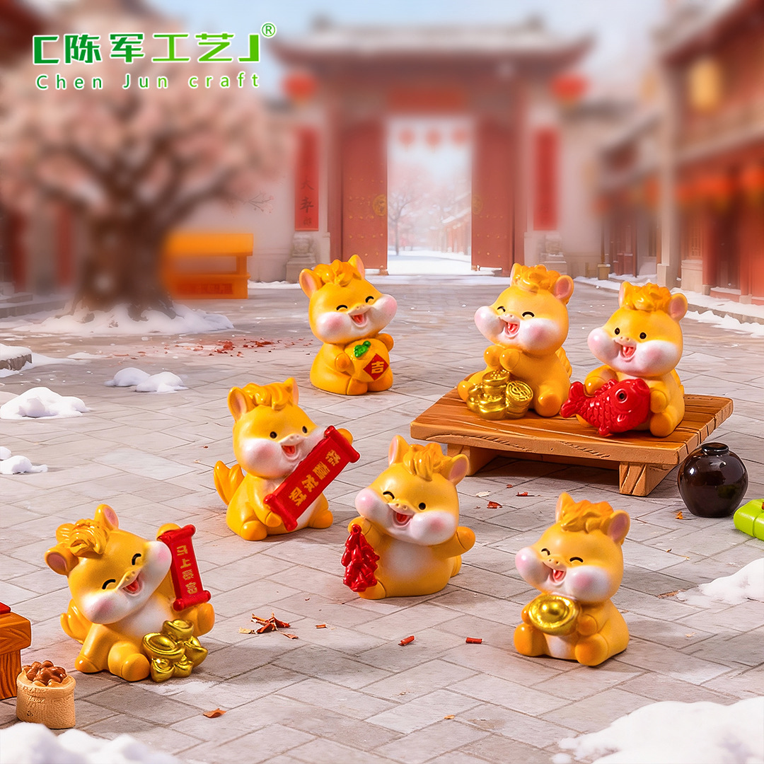 微景观创意卡通新年元宝小马公仔 DIY装饰配件迷你车载卓曼小摆件