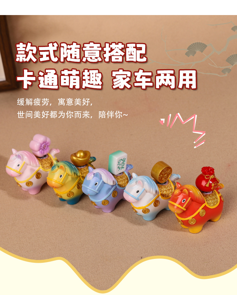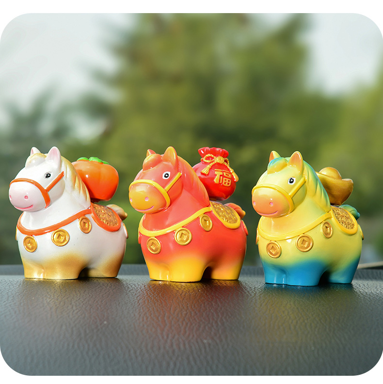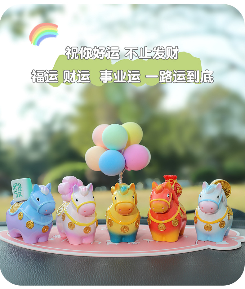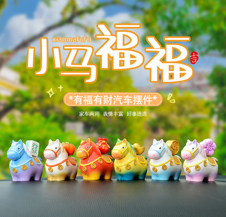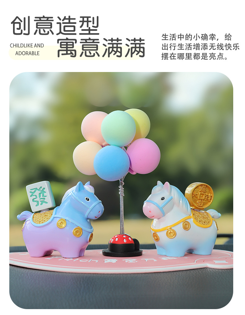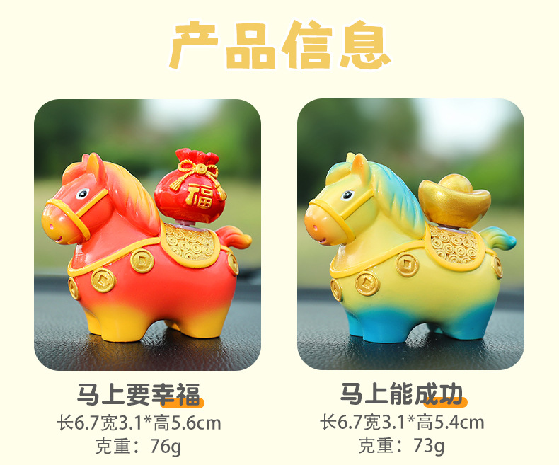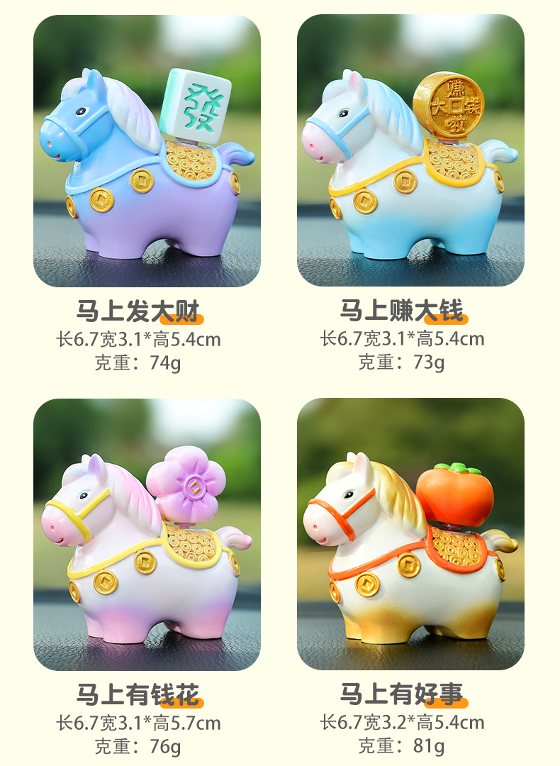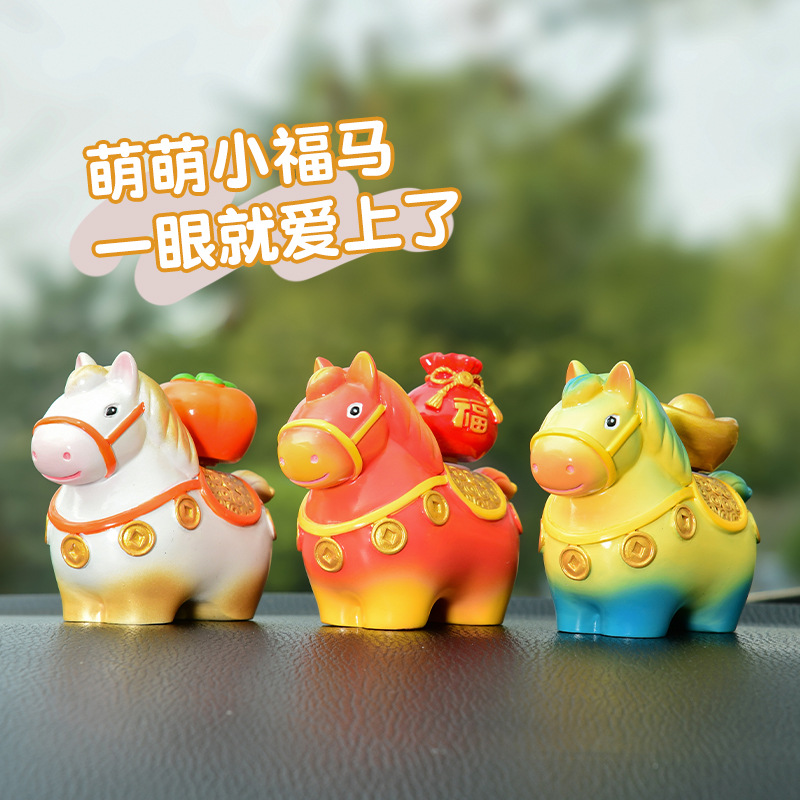 小马福福汽车摆件创意马年车载汽车用品中控台装饰摆件马上有钱