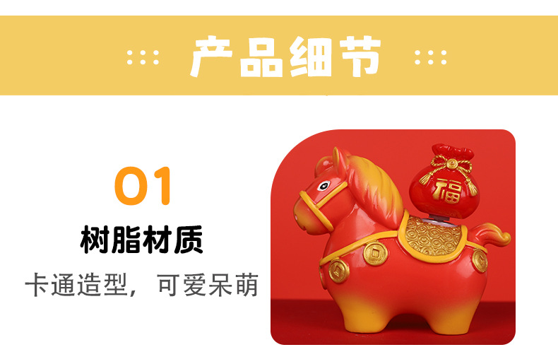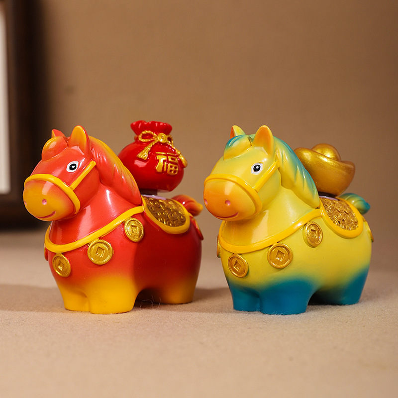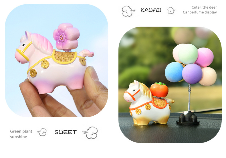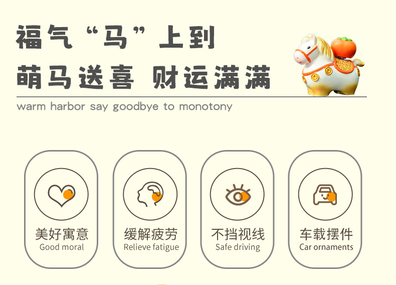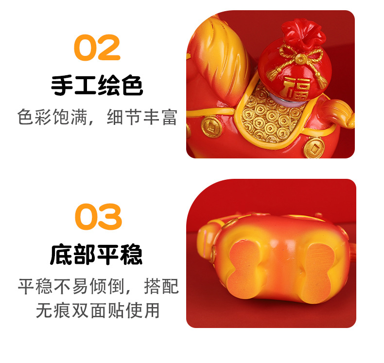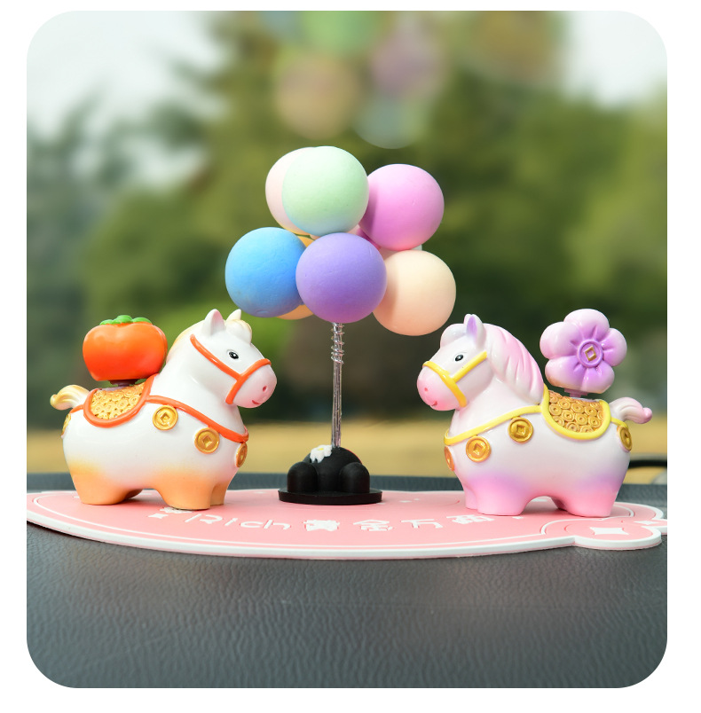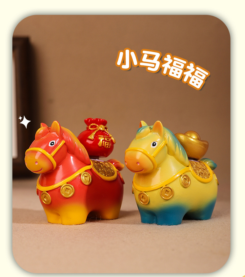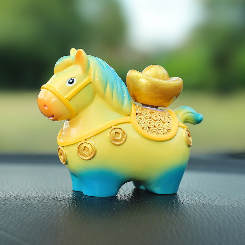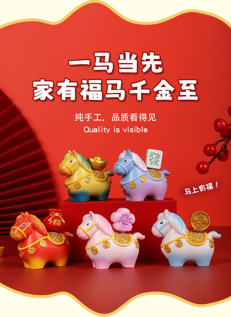 小马福福汽车摆件创意马年车载汽车用品中控台装饰摆件马上有钱