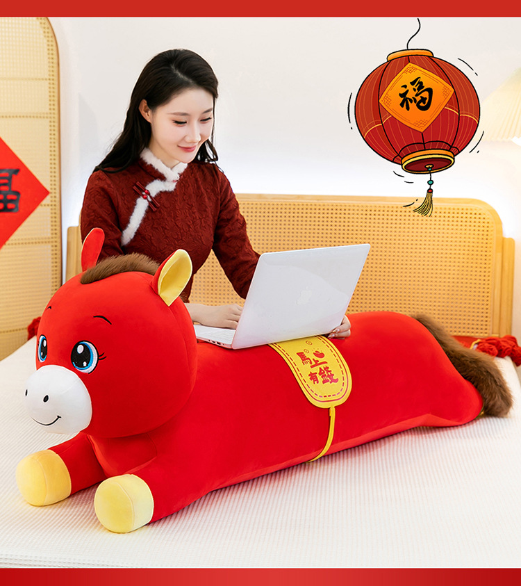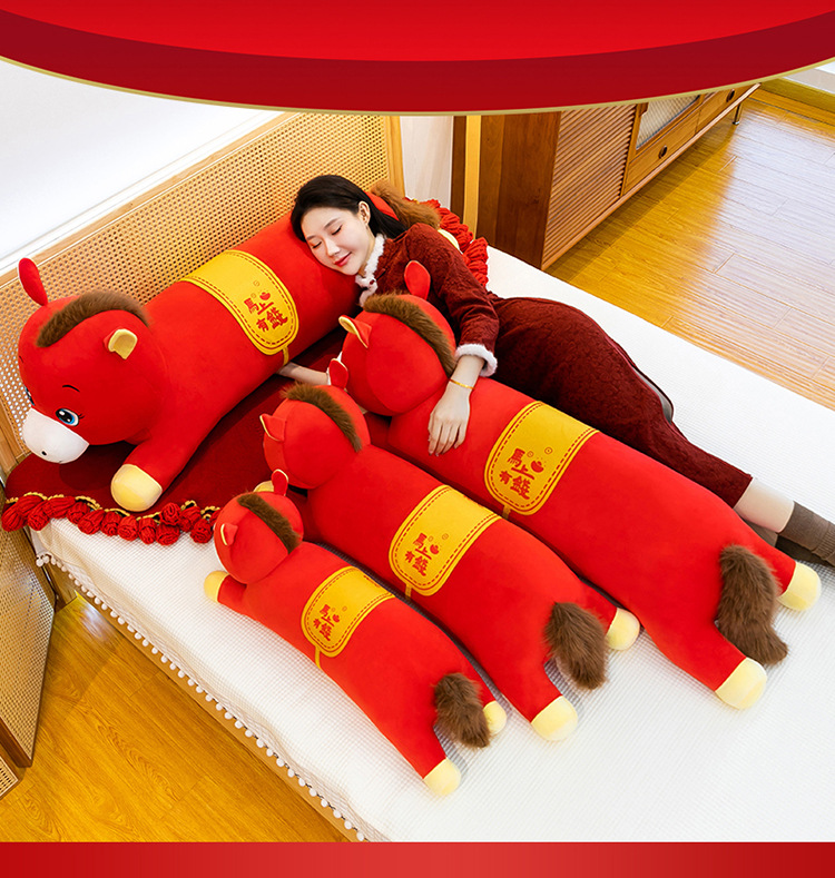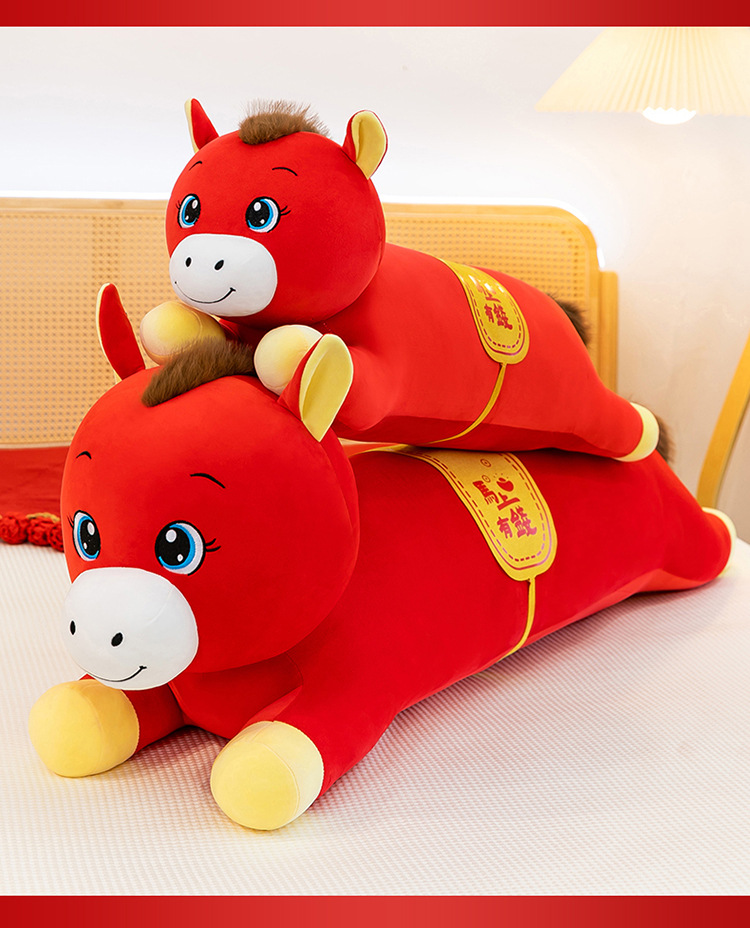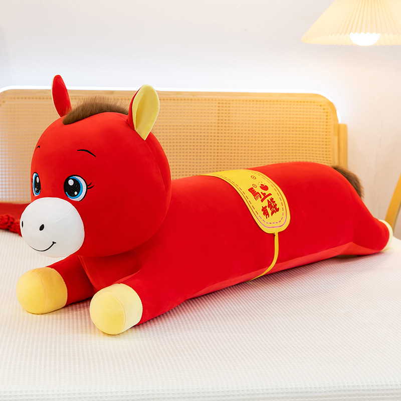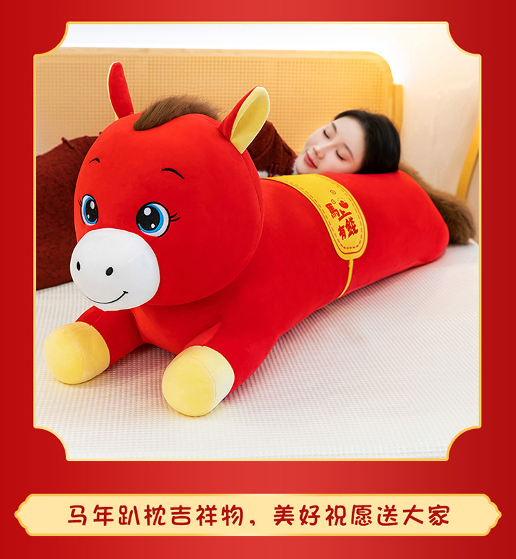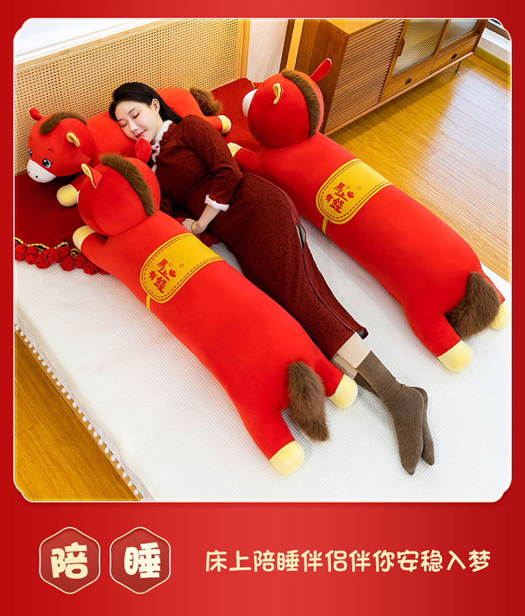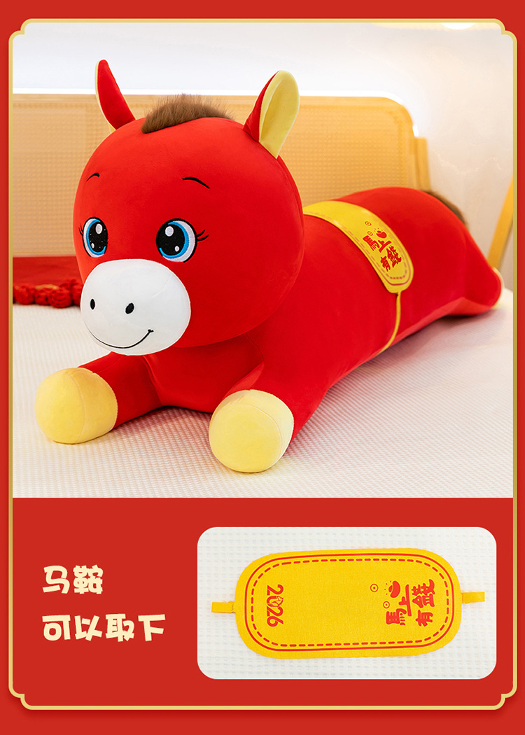 2026年马年抱枕羽绒棉长条小马枕厂家直销可加logo创意摆件可爱