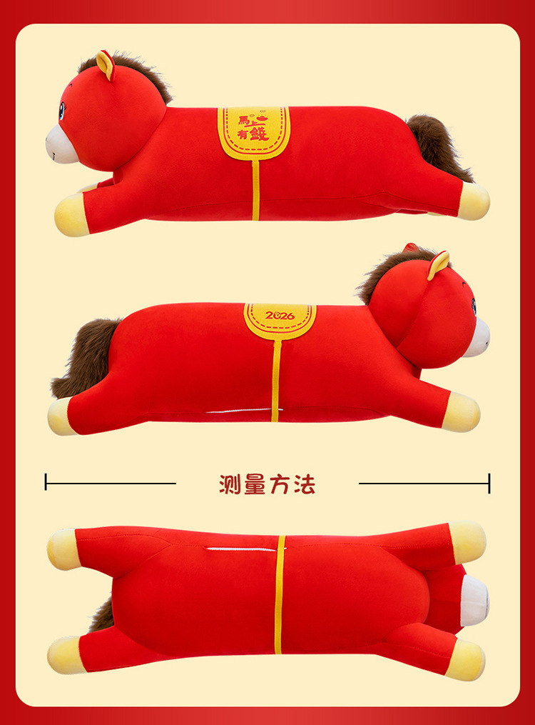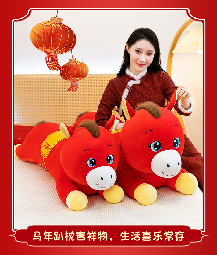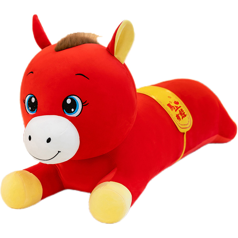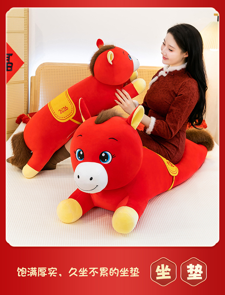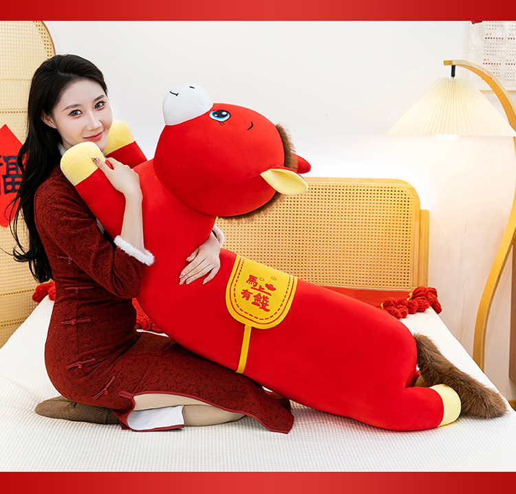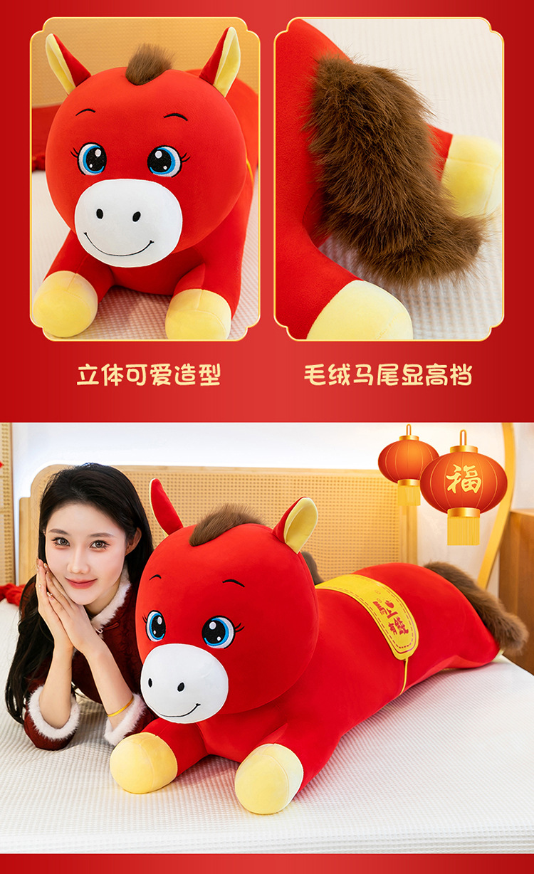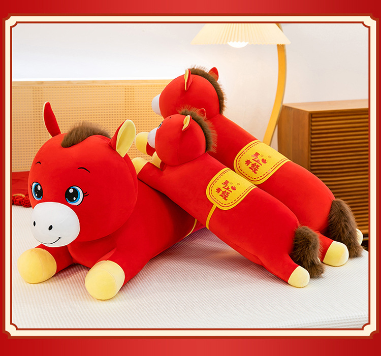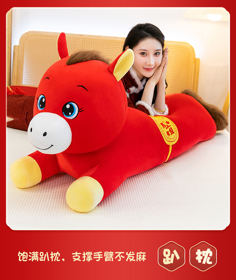 2026年马年抱枕羽绒棉长条小马枕厂家直销可加logo创意摆件可爱