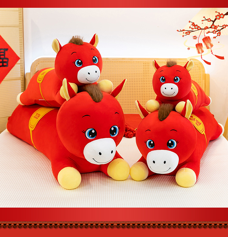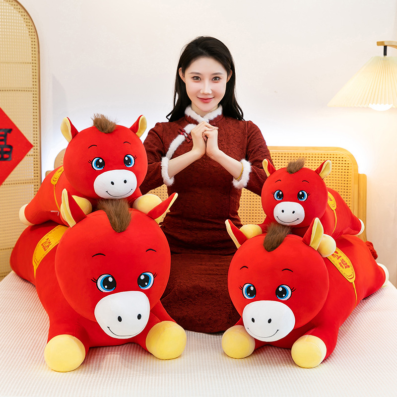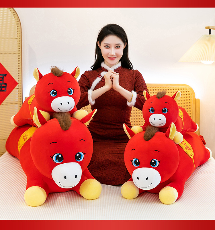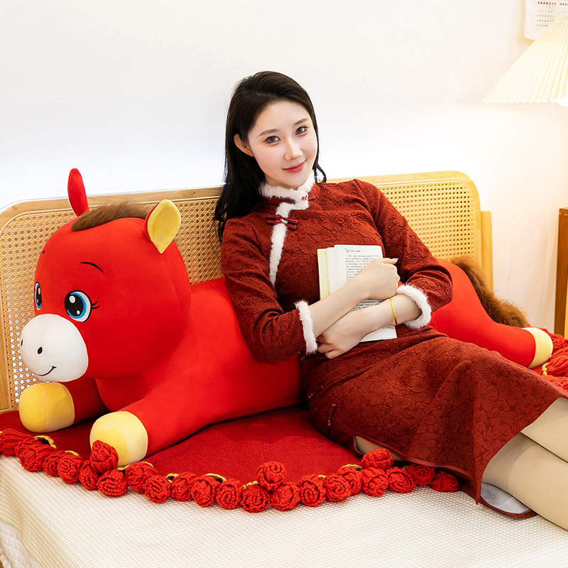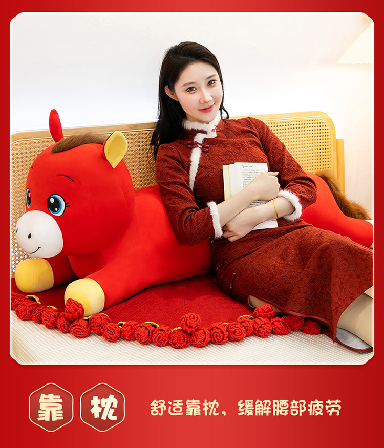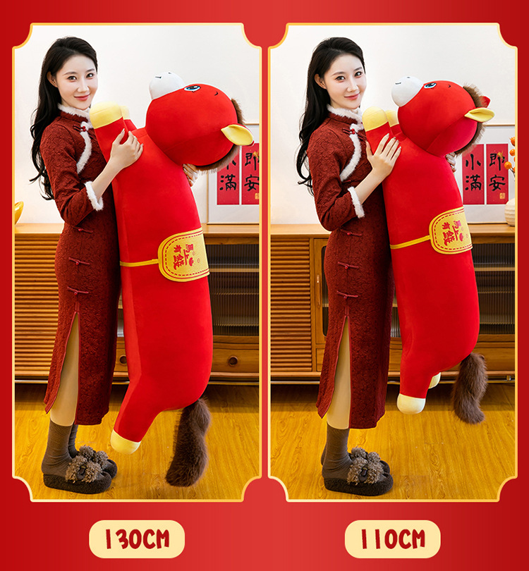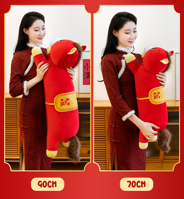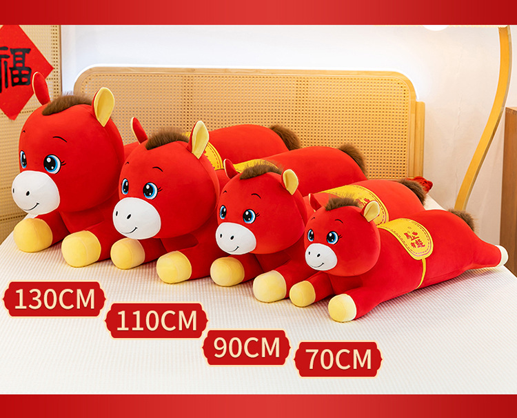 2026年马年抱枕羽绒棉长条小马枕厂家直销可加logo创意摆件可爱