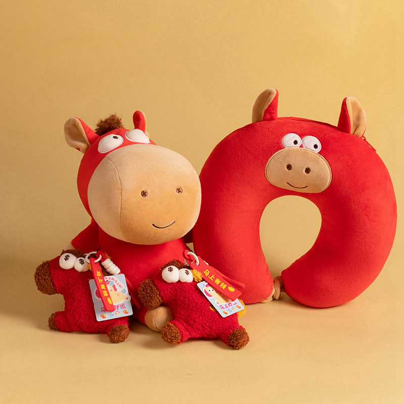马年吉祥物毛绒玩具挂件生肖马公仔U型变形枕玩偶公司年会活动 礼