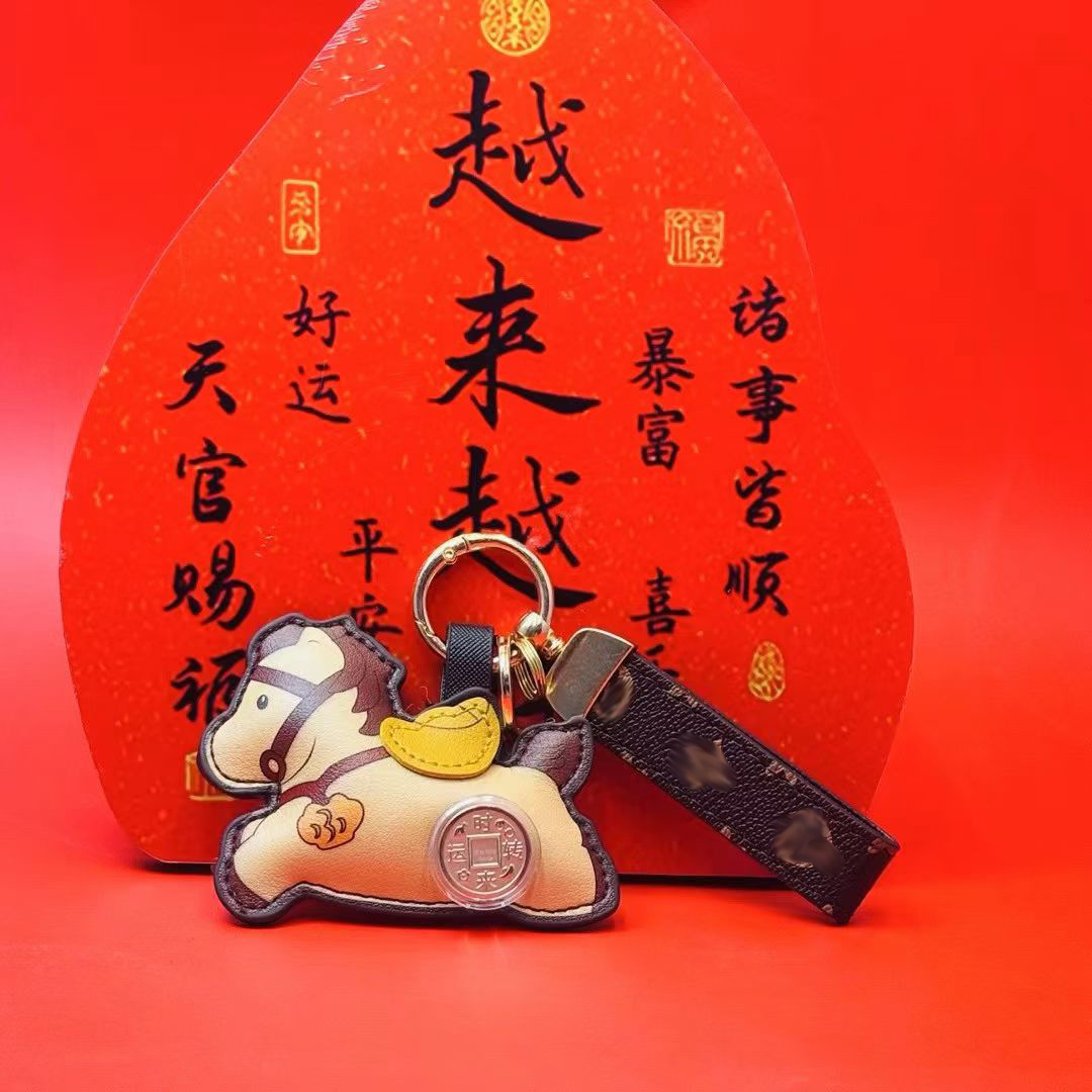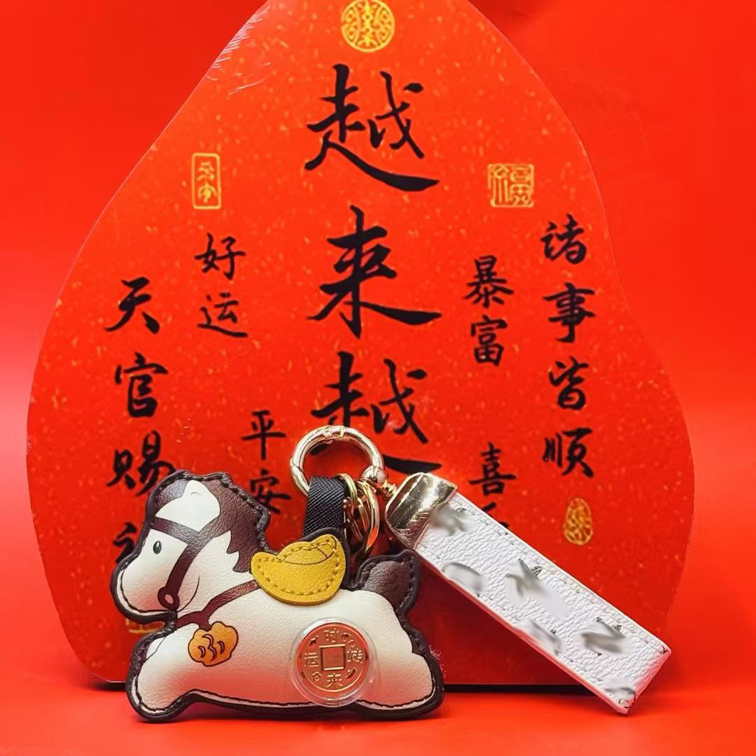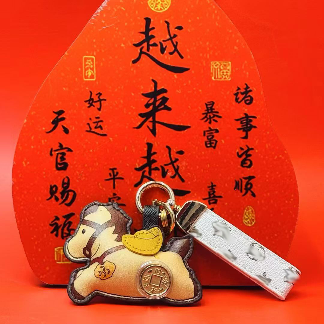 2026马年时来运转马上有钱钥匙扣挂件可旋转风生水起皮革挂饰礼品