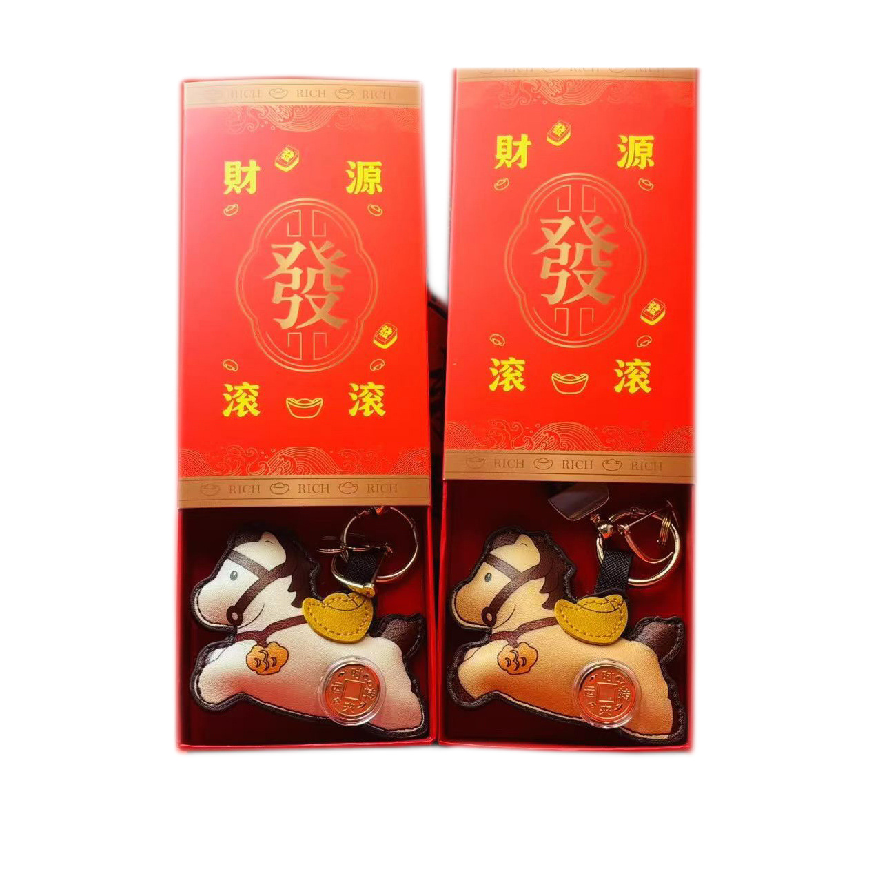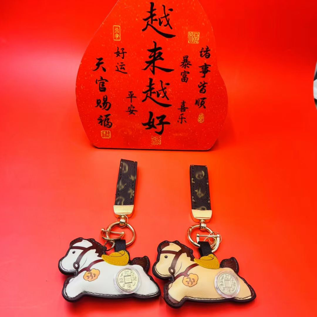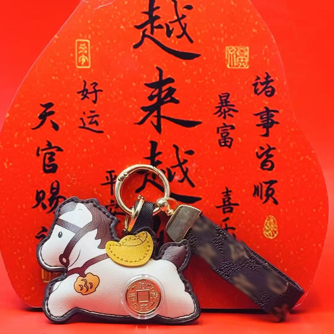 2026马年时来运转马上有钱钥匙扣挂件可旋转风生水起皮革挂饰礼品