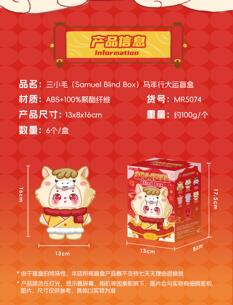三小毛马年行大运毛绒盲盒 创意可爱摆件少女心潮玩摆件 公仔礼物