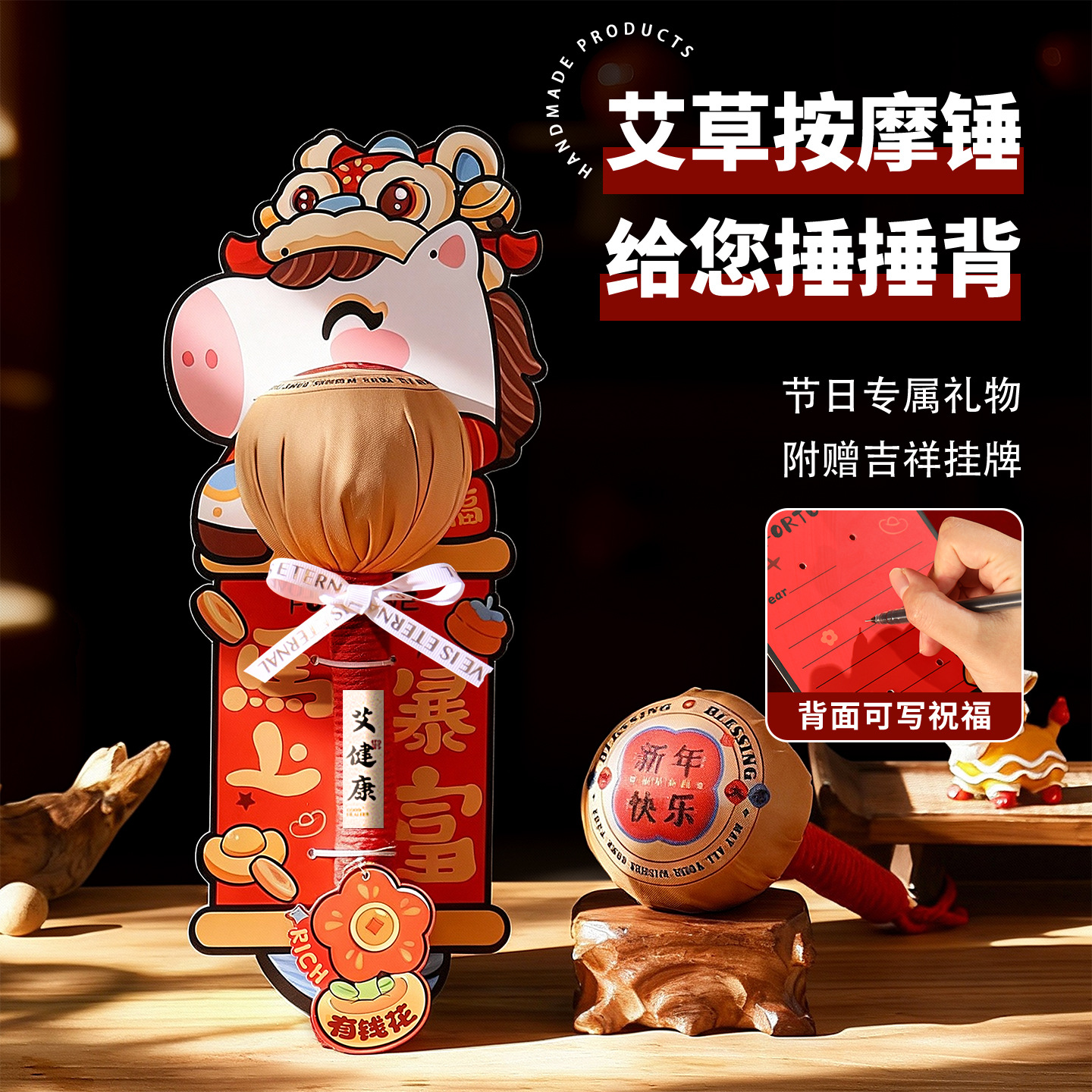 马年春节礼物艾草锤伴手礼品高档实用过新年送长辈老师父母养生锤