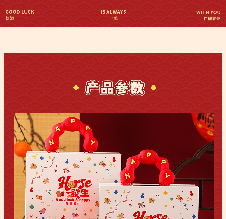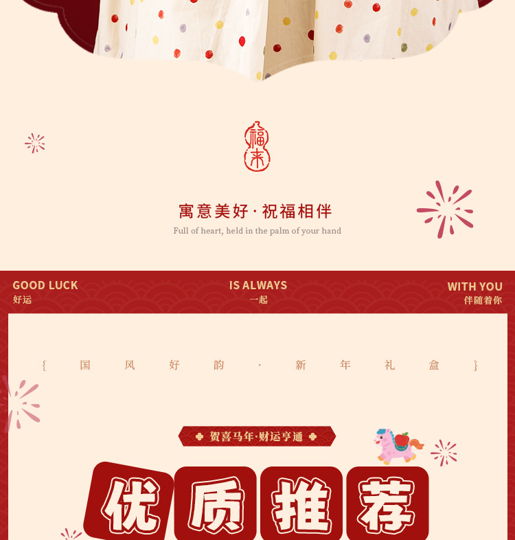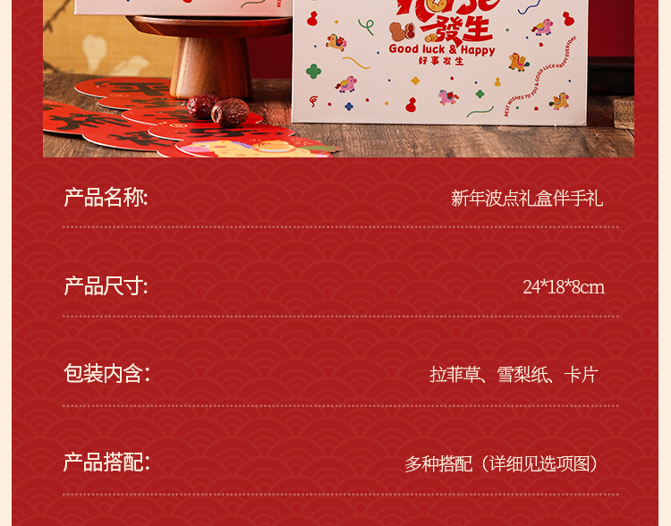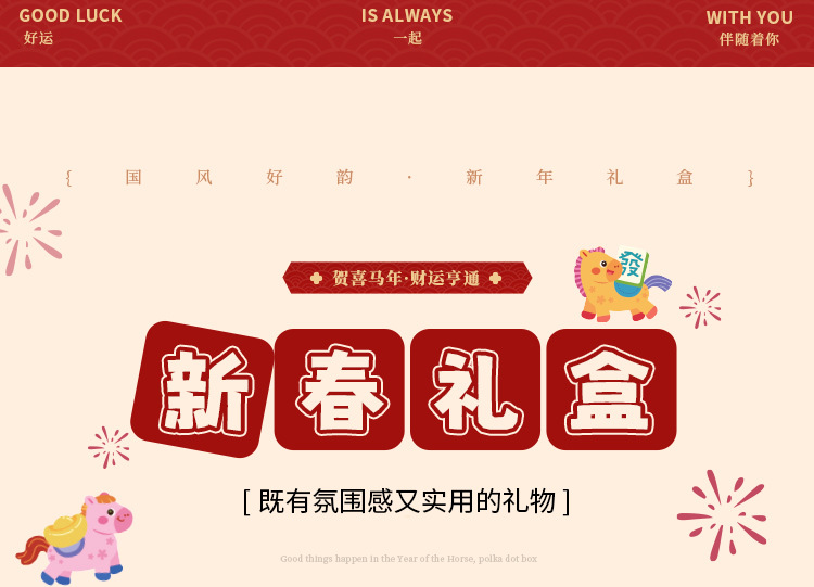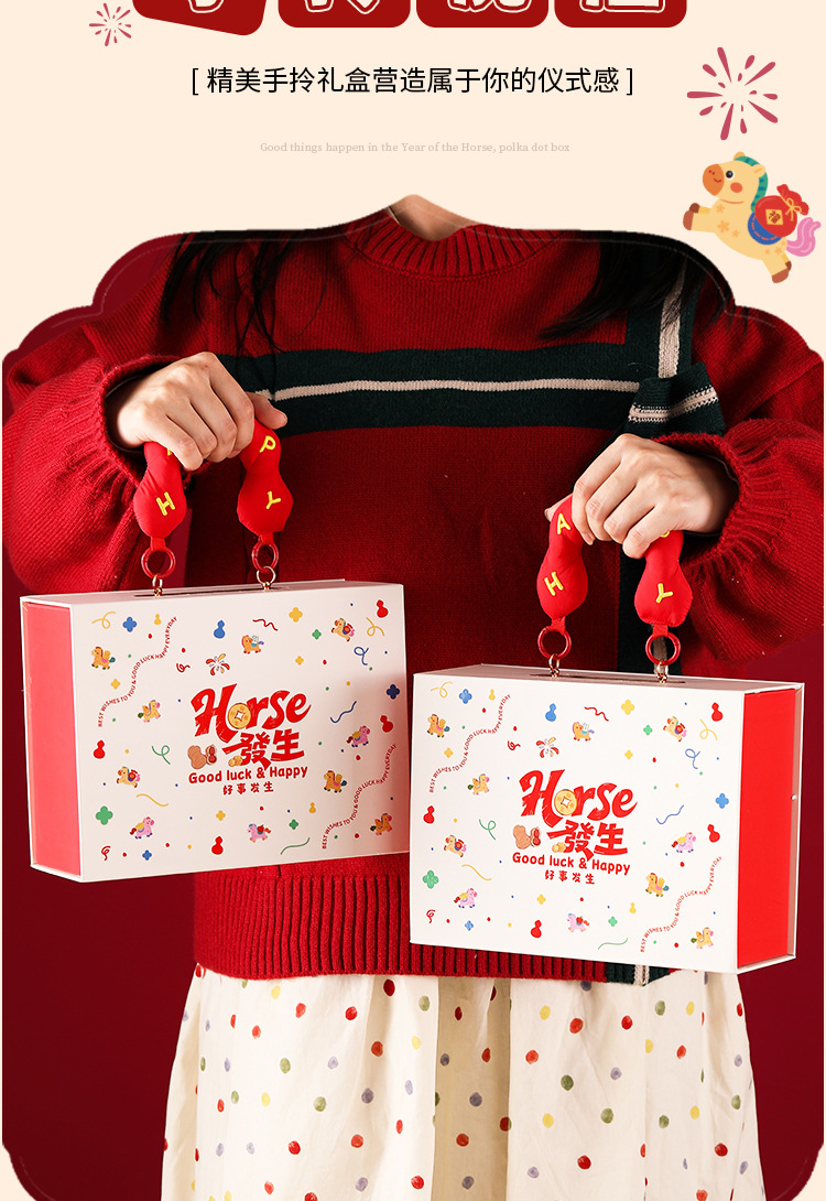 | 马年波点礼盒:24*18*8cm | USD $13.0 | 5000 set available |