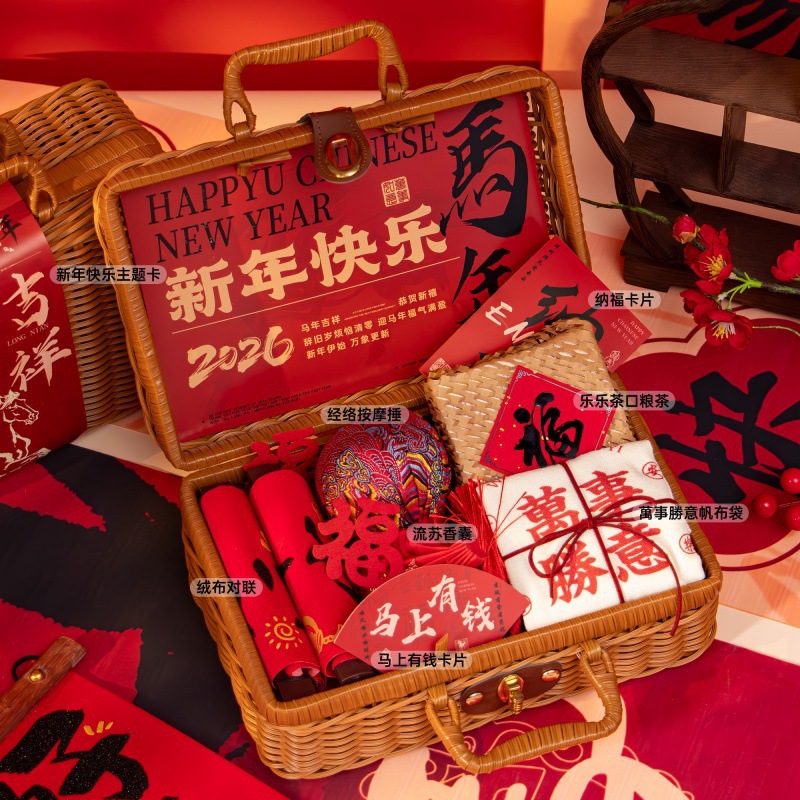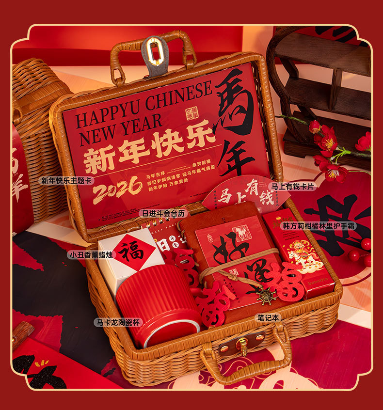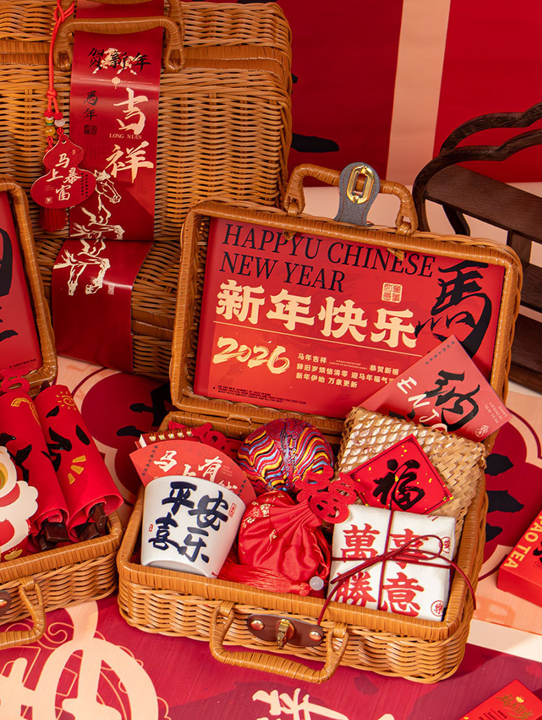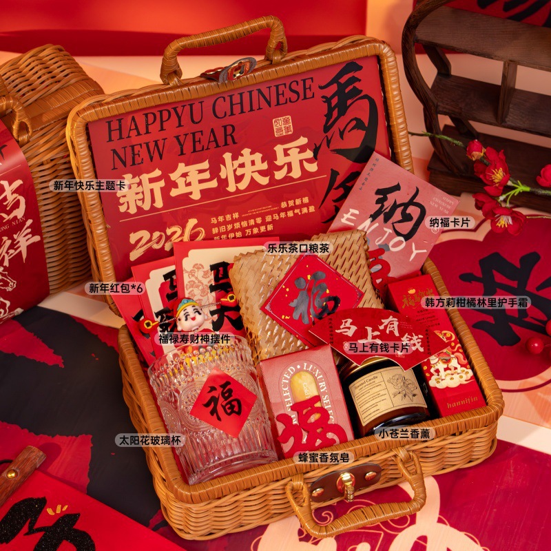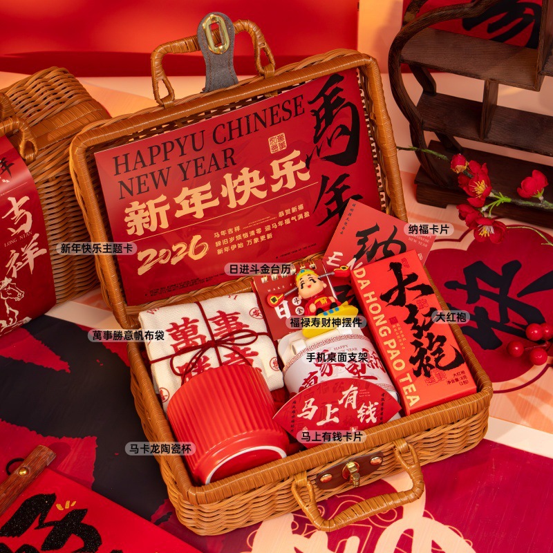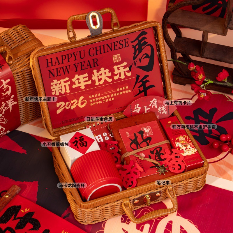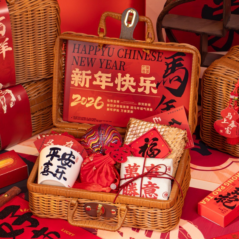 新年伴手礼2026马年公司商务年会实用礼品春节送客户员工藤编礼盒