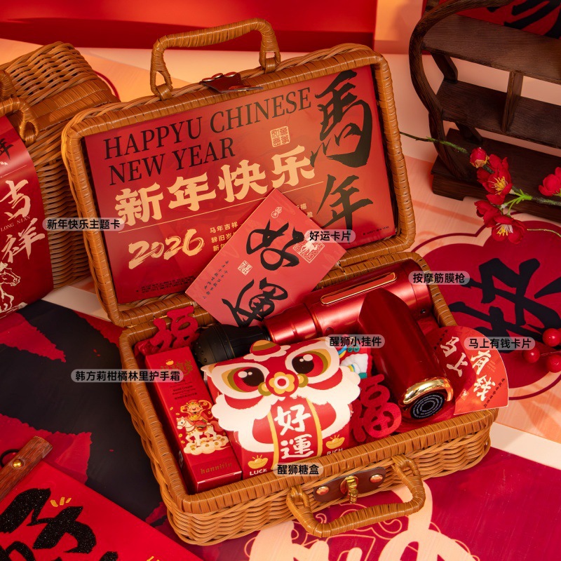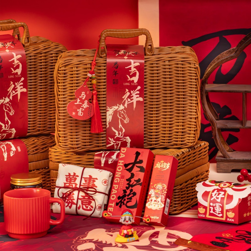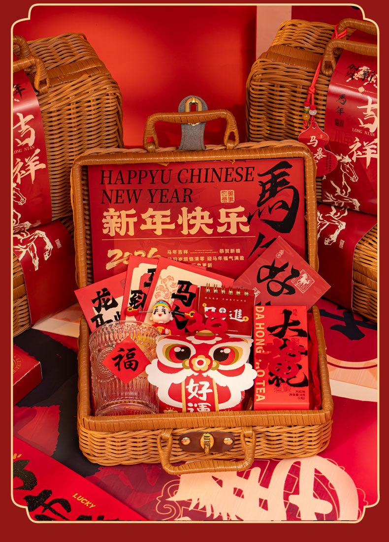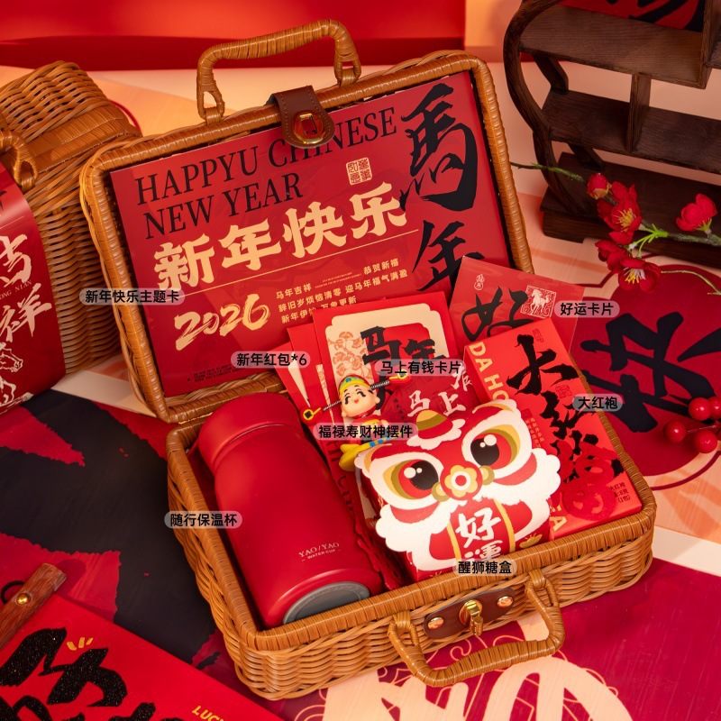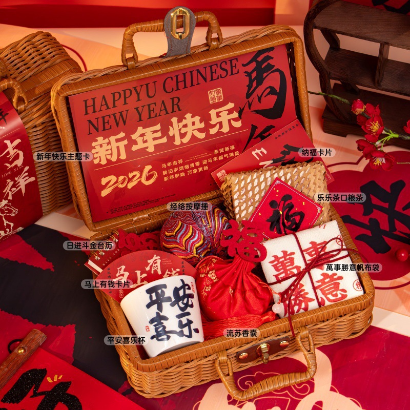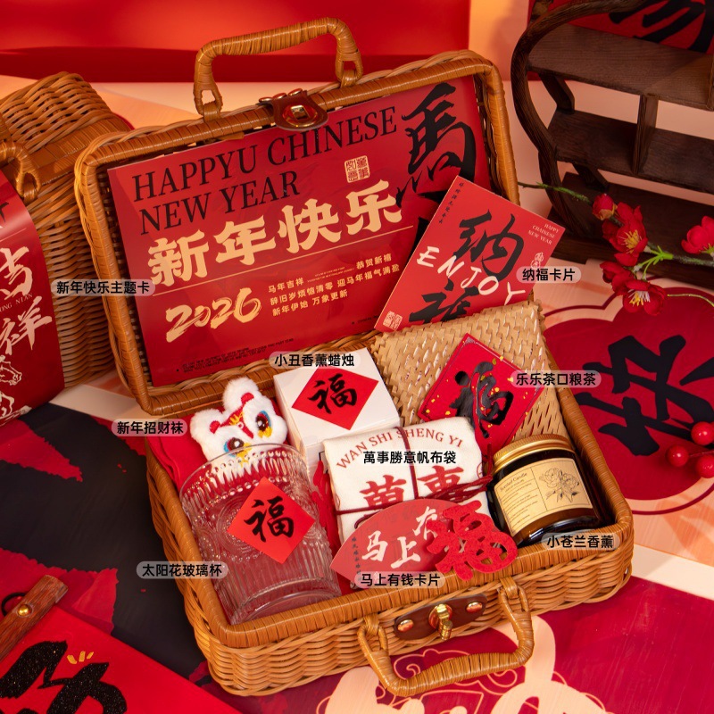 新年伴手礼2026马年公司商务年会实用礼品春节送客户员工藤编礼盒