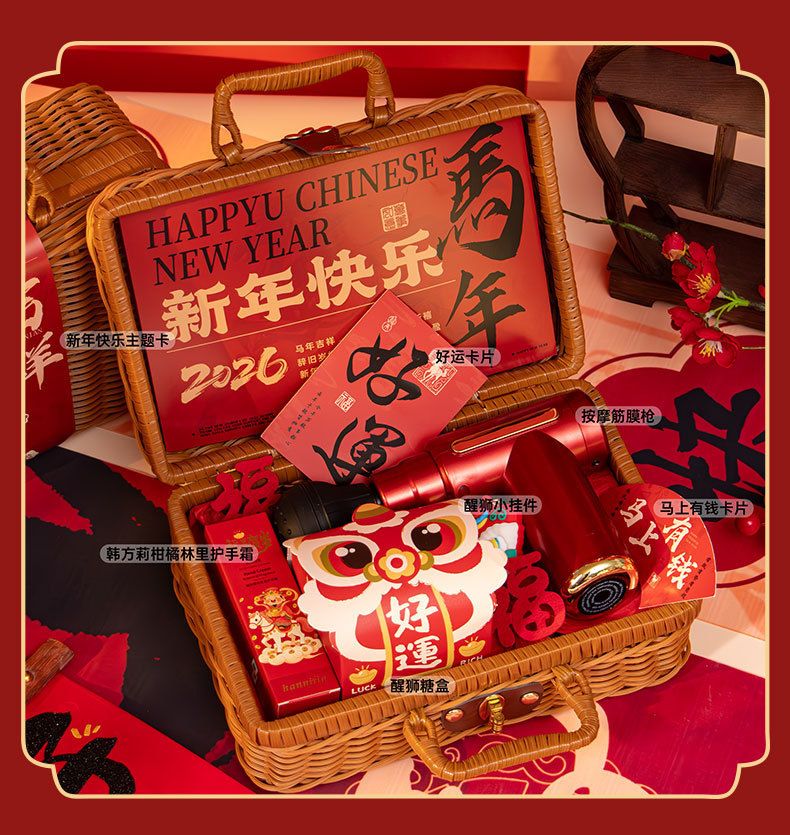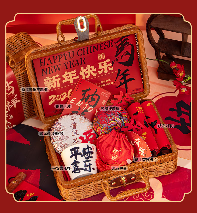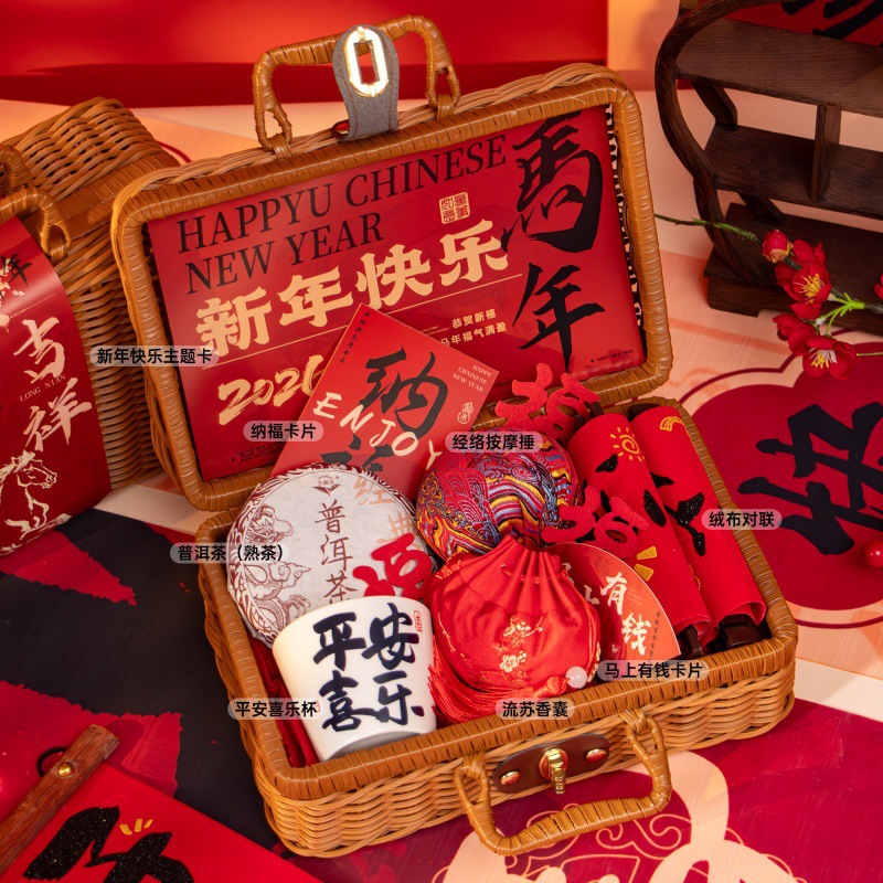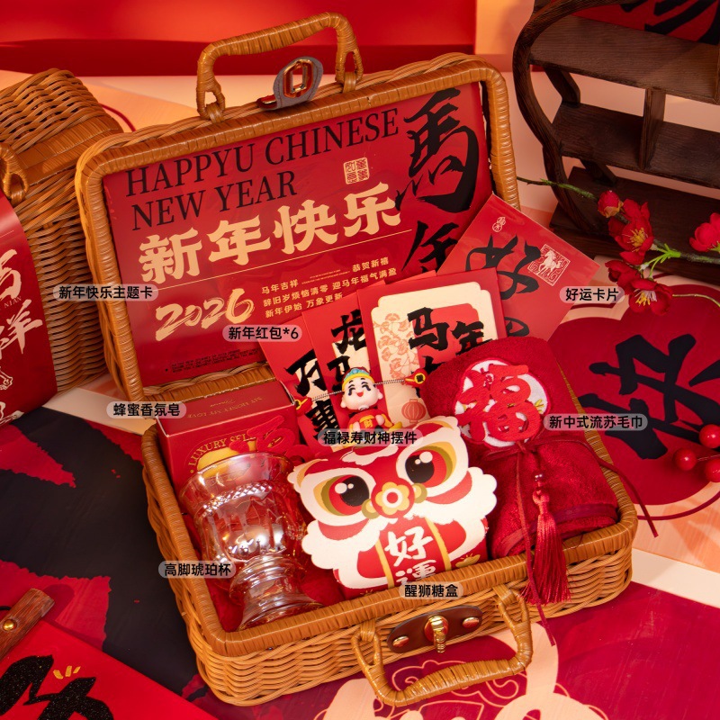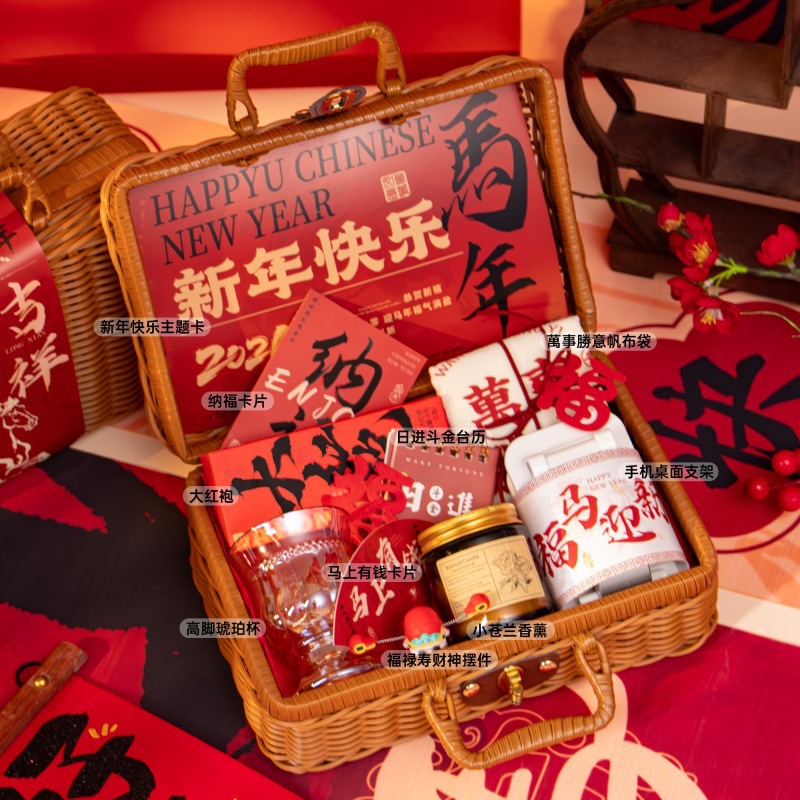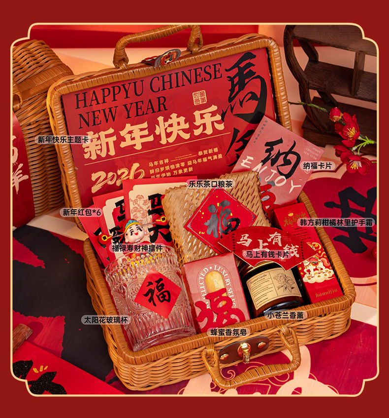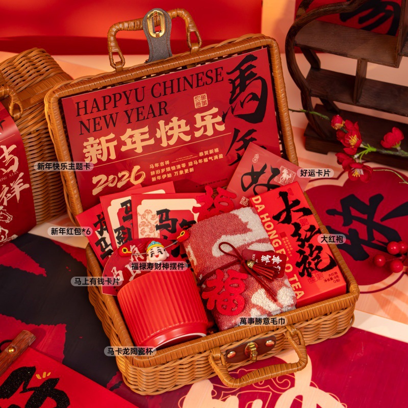 新年伴手礼2026马年公司商务年会实用礼品春节送客户员工藤编礼盒