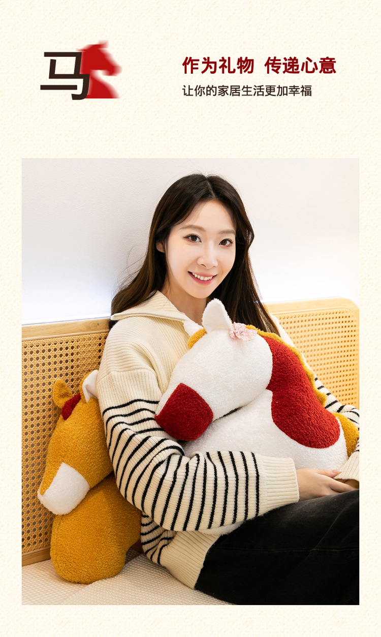 生肖马吉祥物抱枕萌趣毛绒ins家居玩偶安抚伴手礼马年礼物送朋友