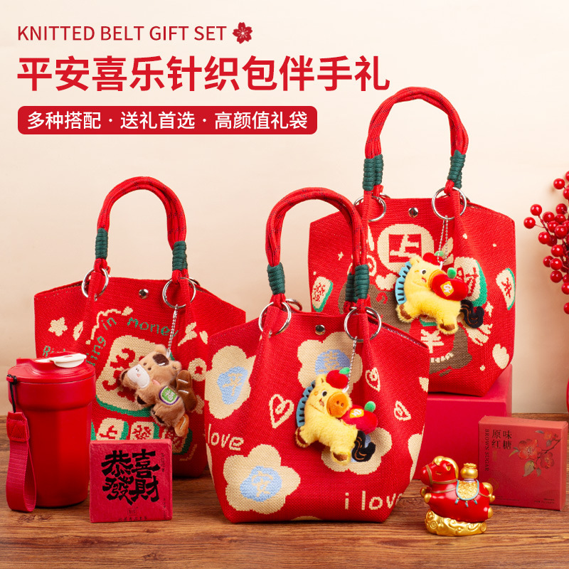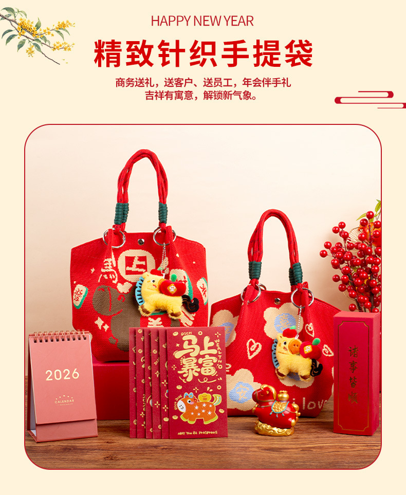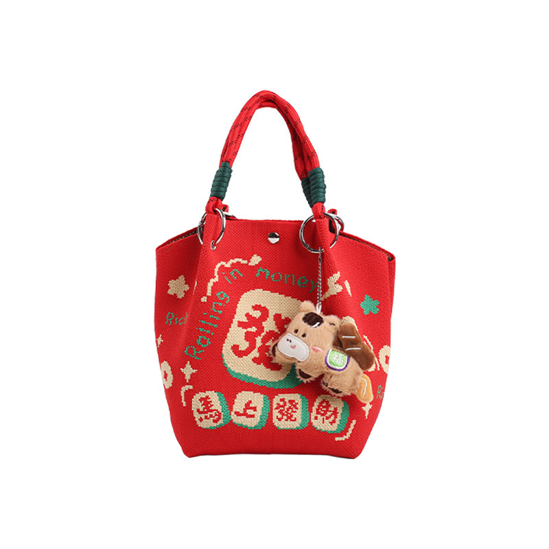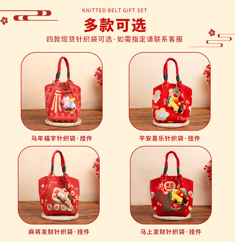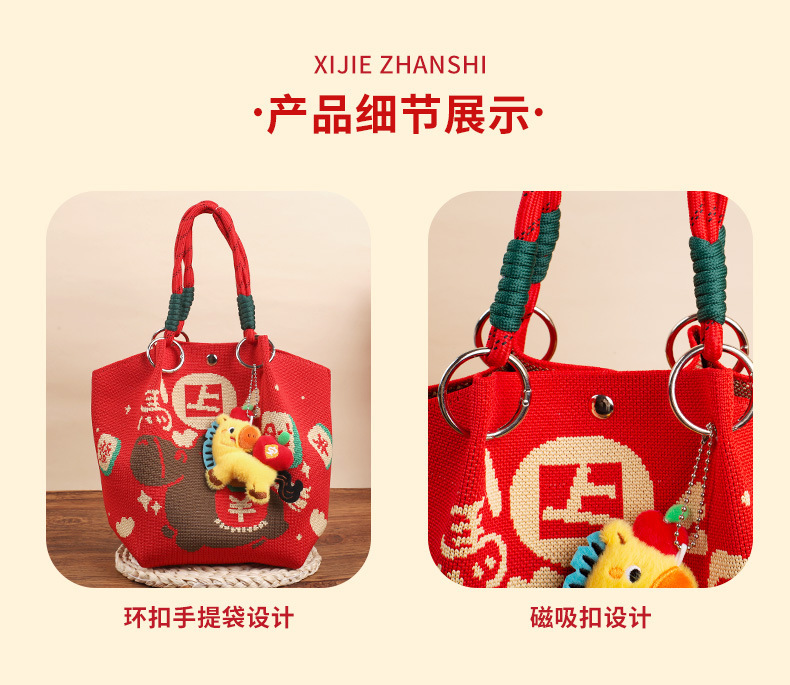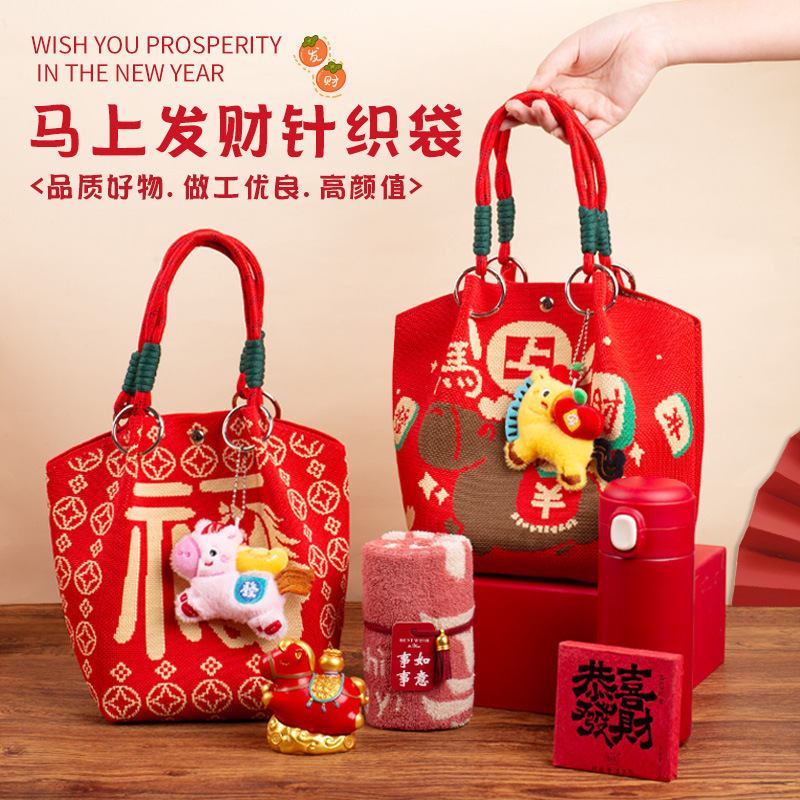 婚礼纪念品手提包 马年新款水桶包伴手礼年会针织袋伴手礼年会
