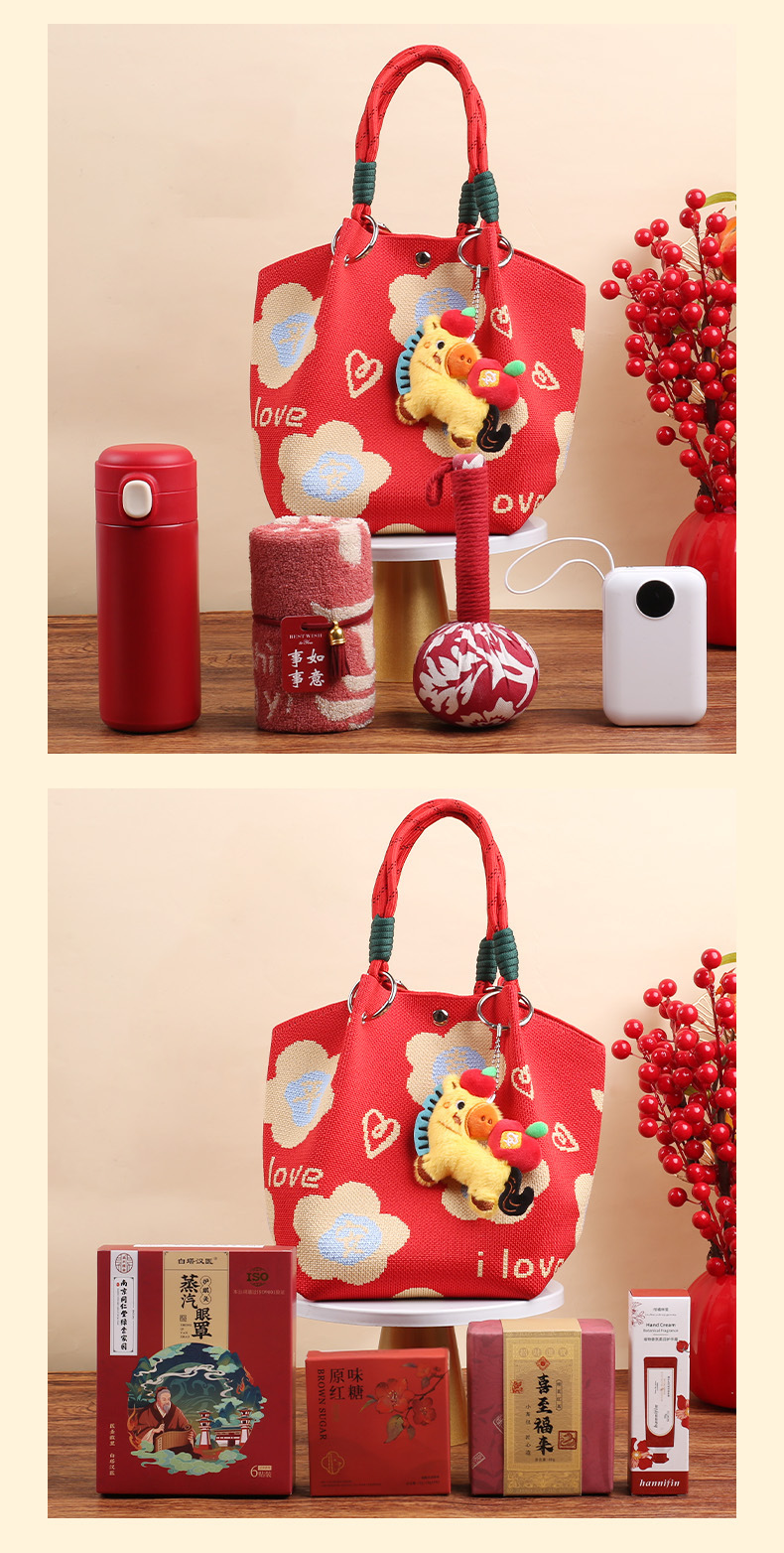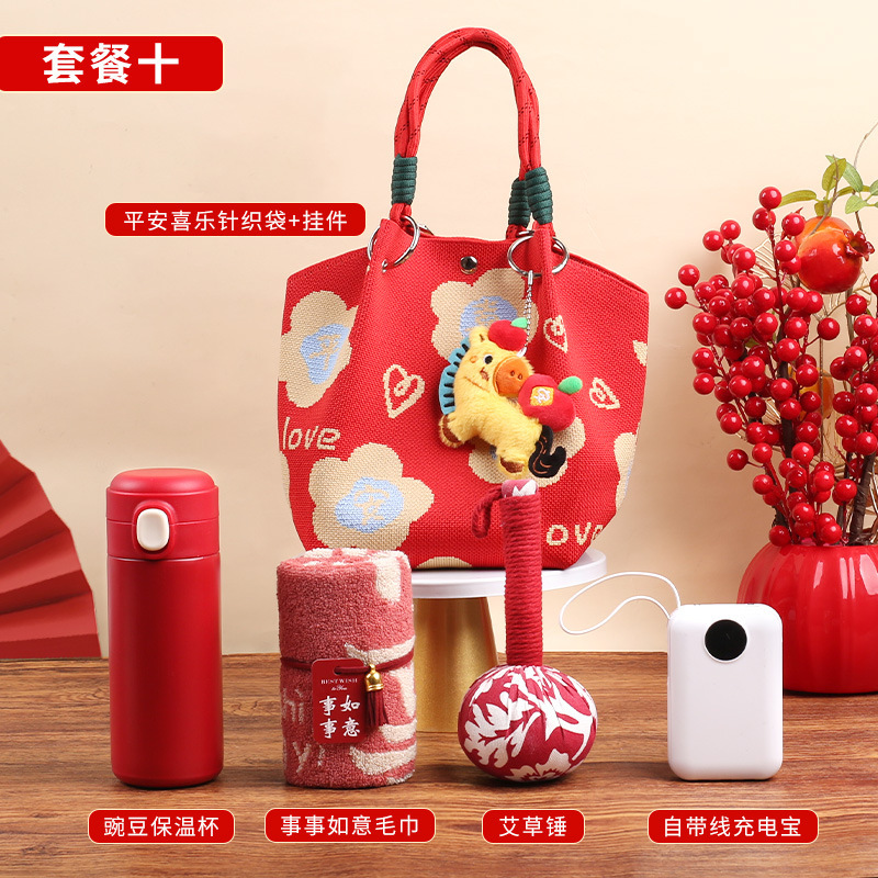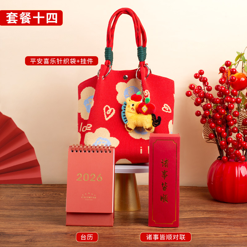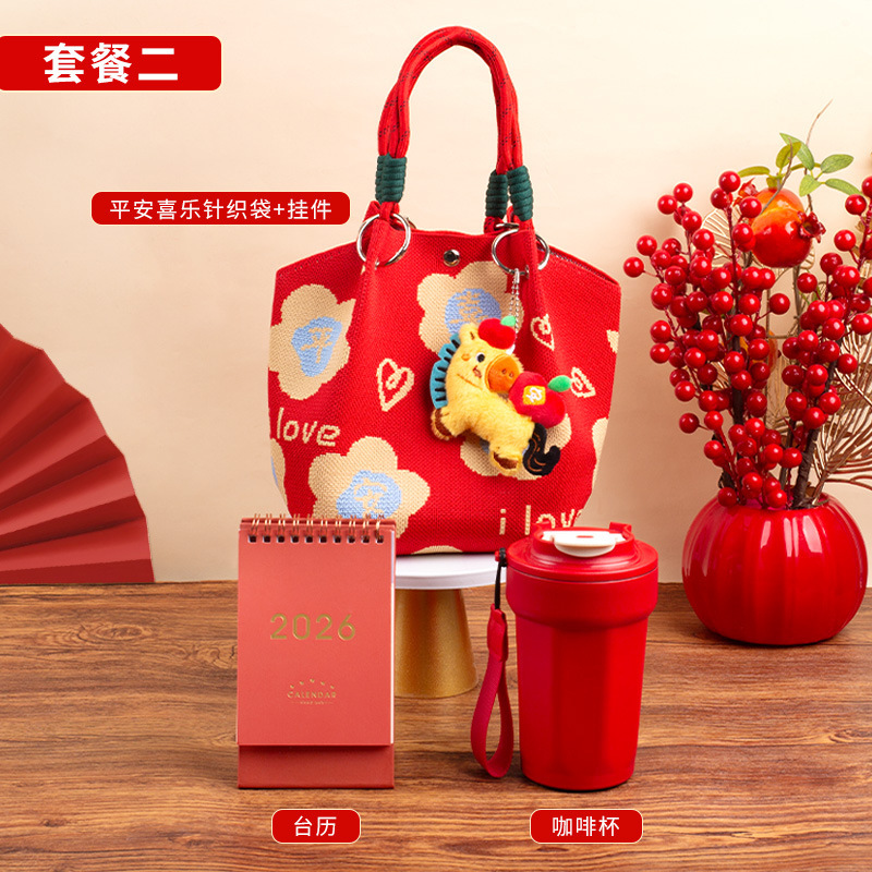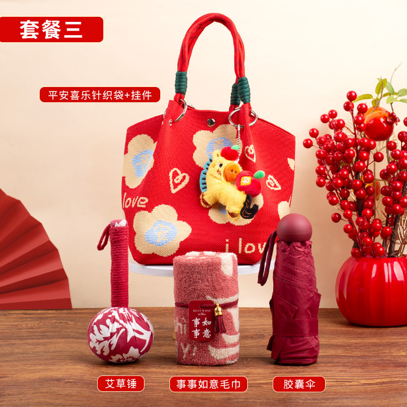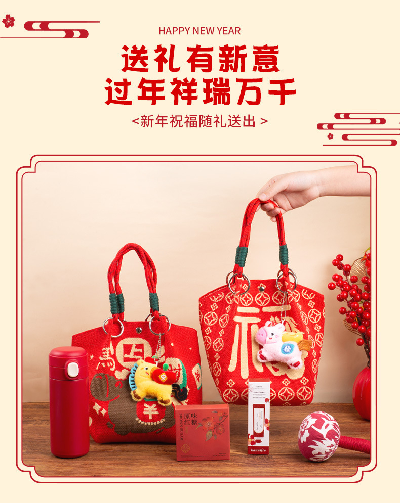 婚礼纪念品手提包 马年新款水桶包伴手礼年会针织袋伴手礼年会