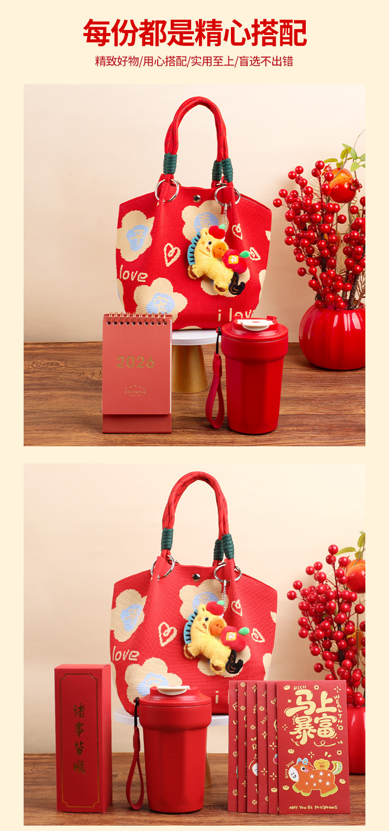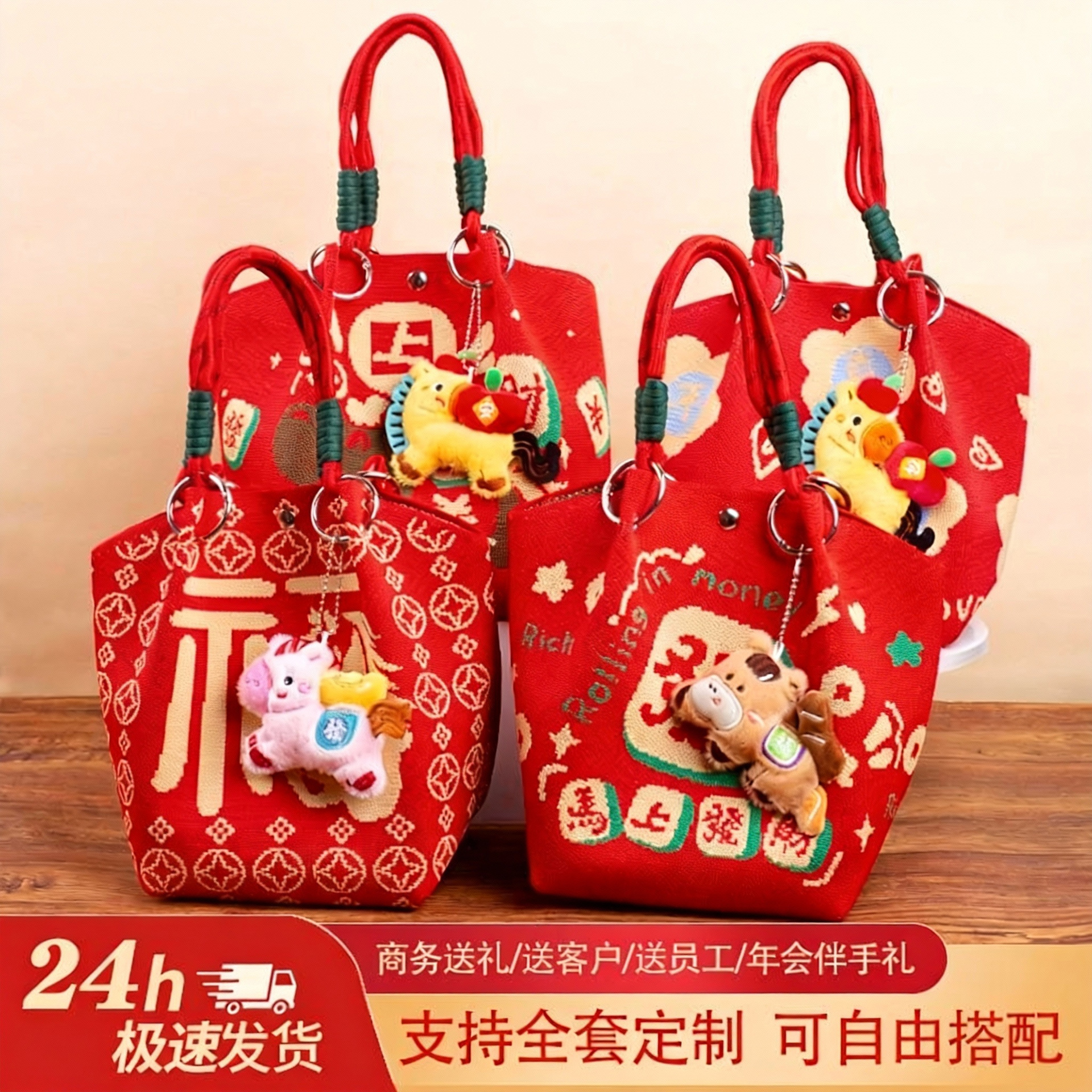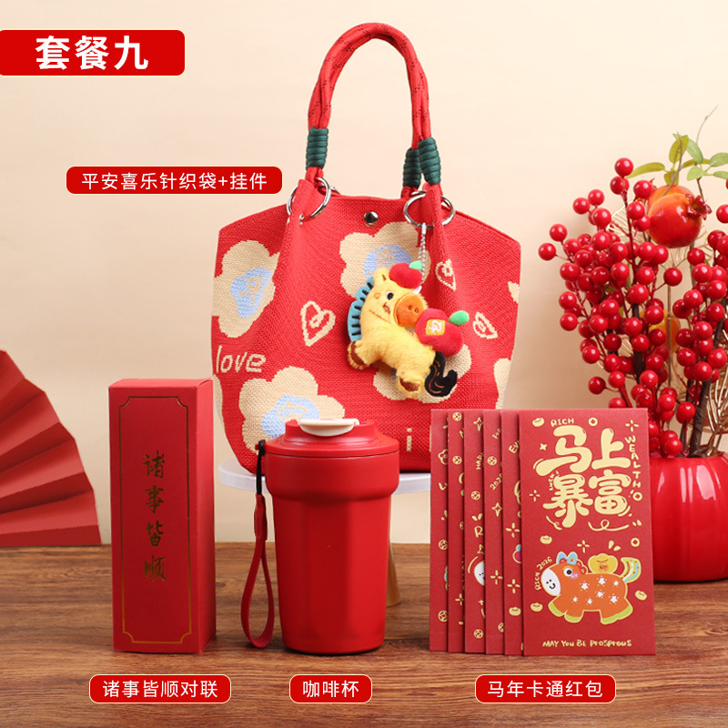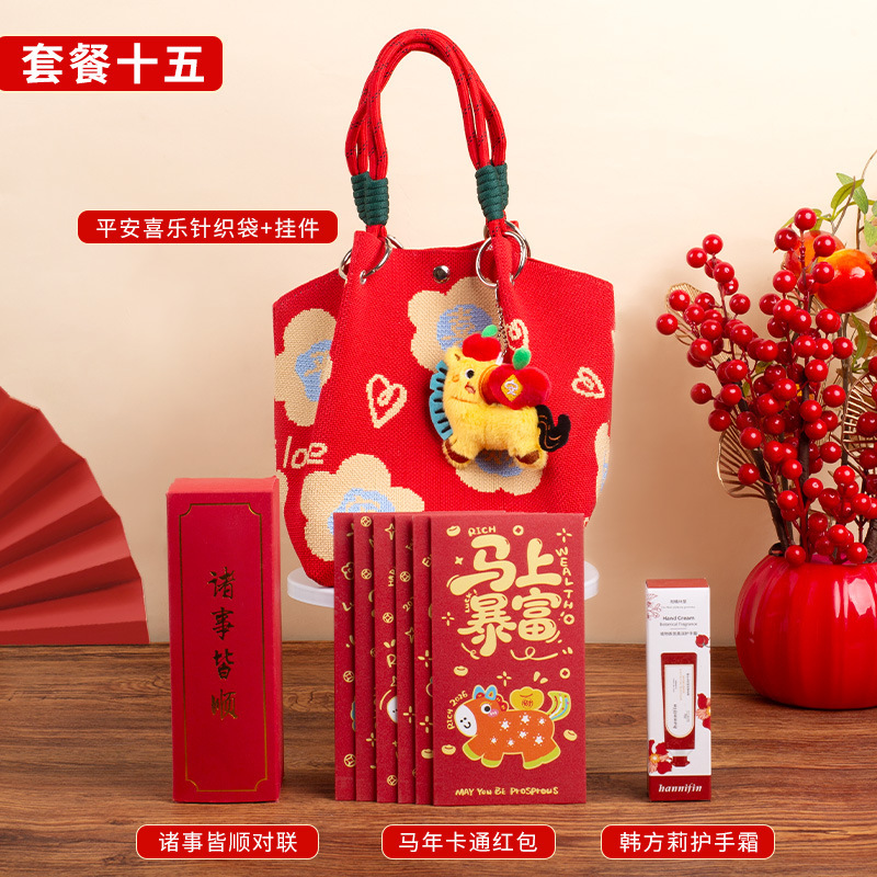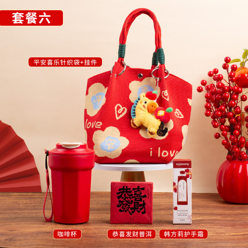 婚礼纪念品手提包 马年新款水桶包伴手礼年会针织袋伴手礼年会