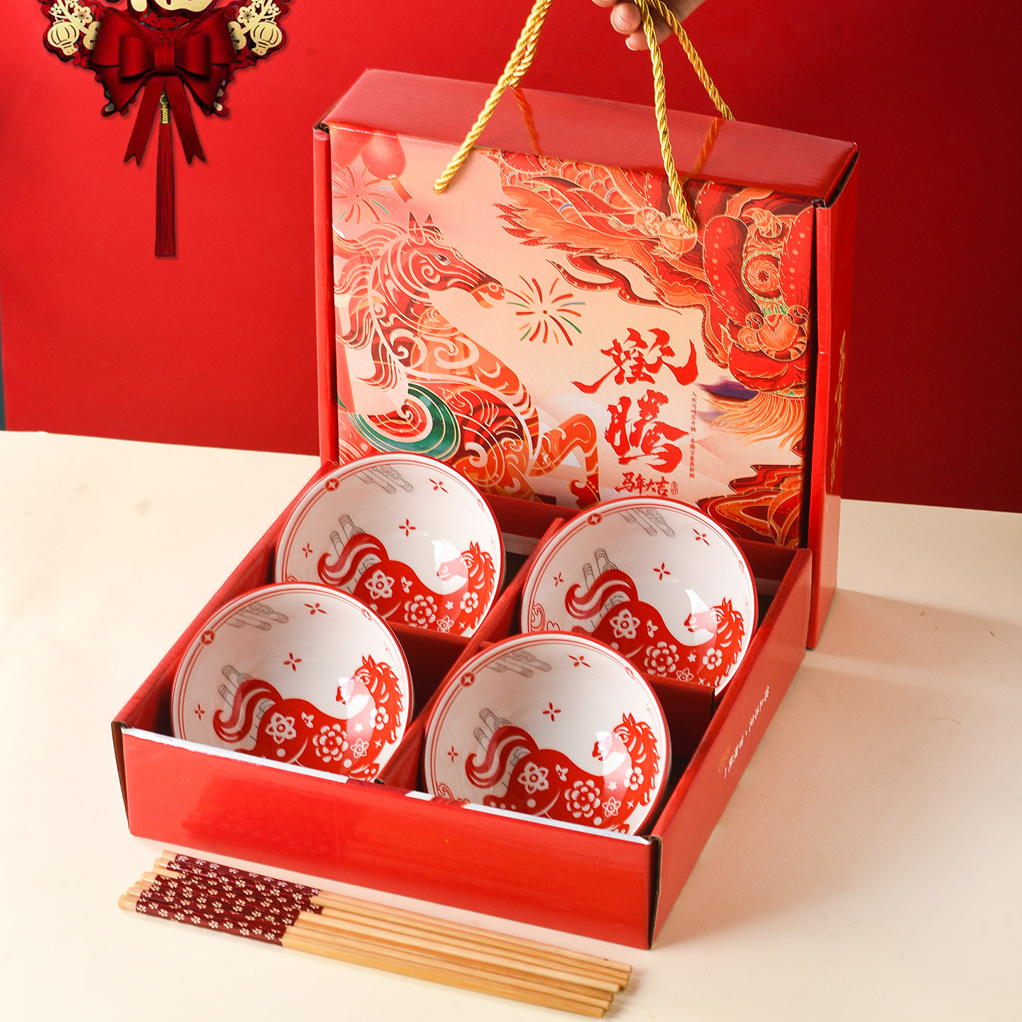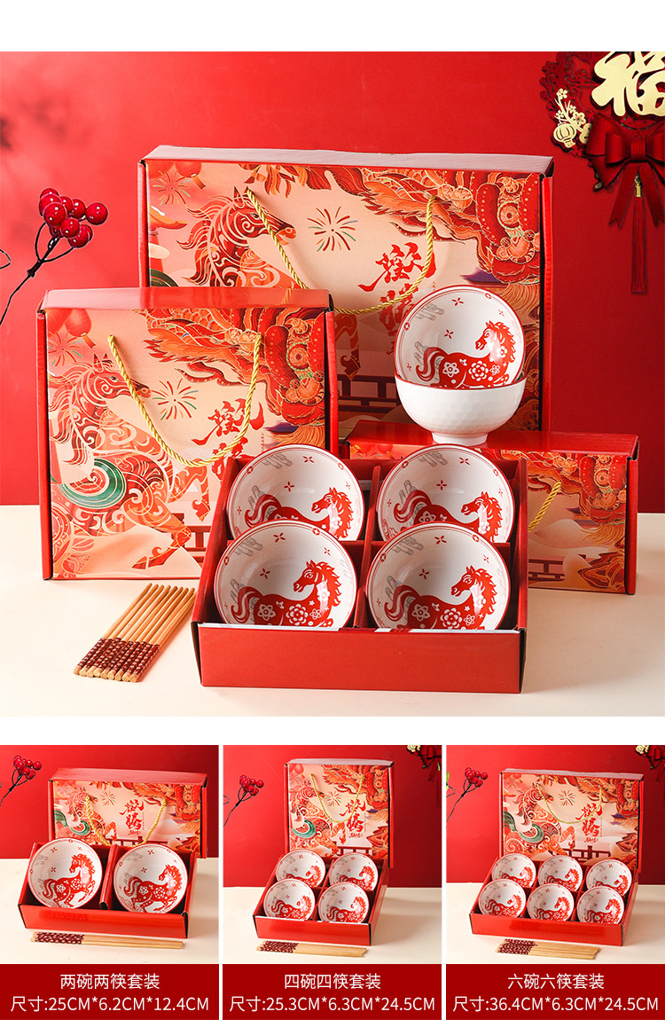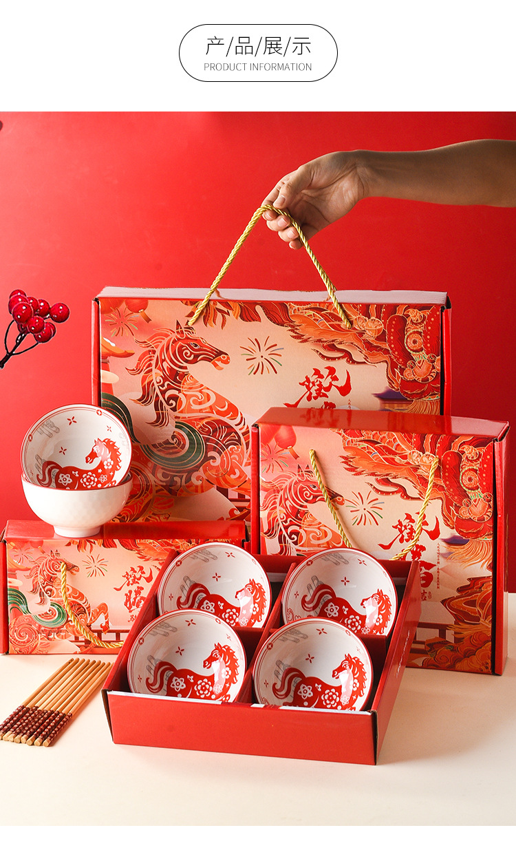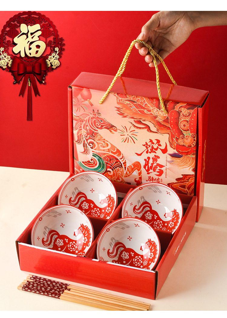 马年礼品碗筷套装陶瓷碗具餐具定制新年会小礼品定制送客户伴手礼