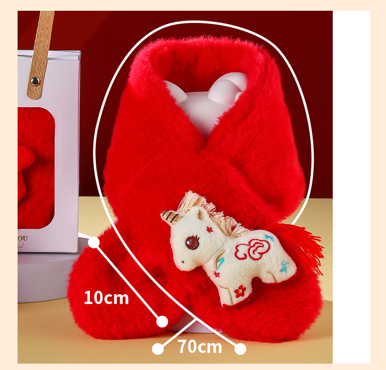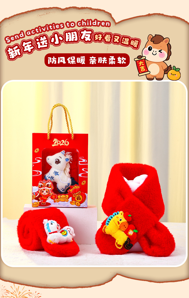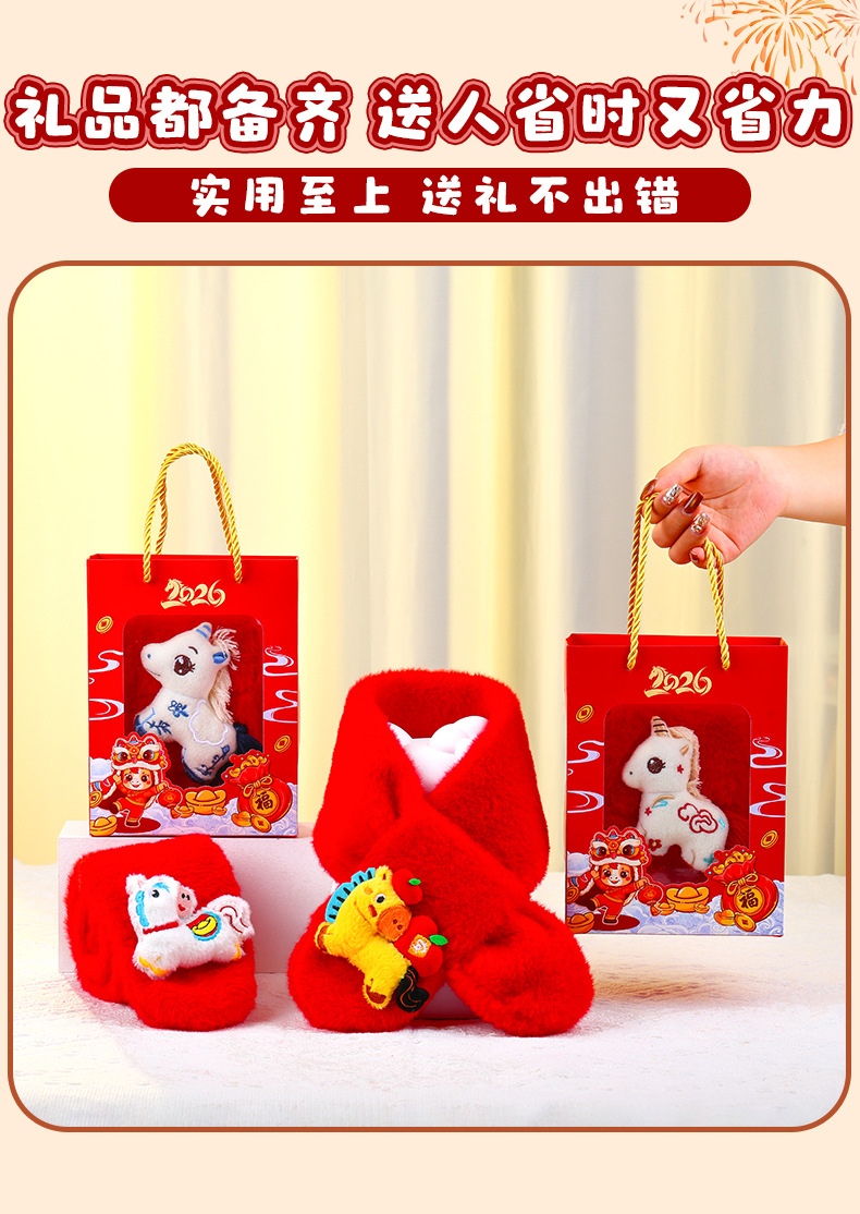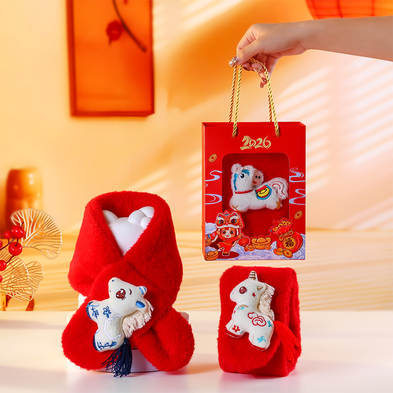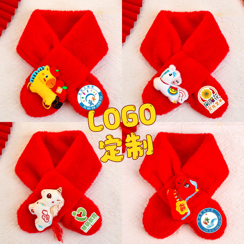 幼儿园新年礼物马年实用元旦小礼品毛绒红色围巾儿童生日伴手礼品
