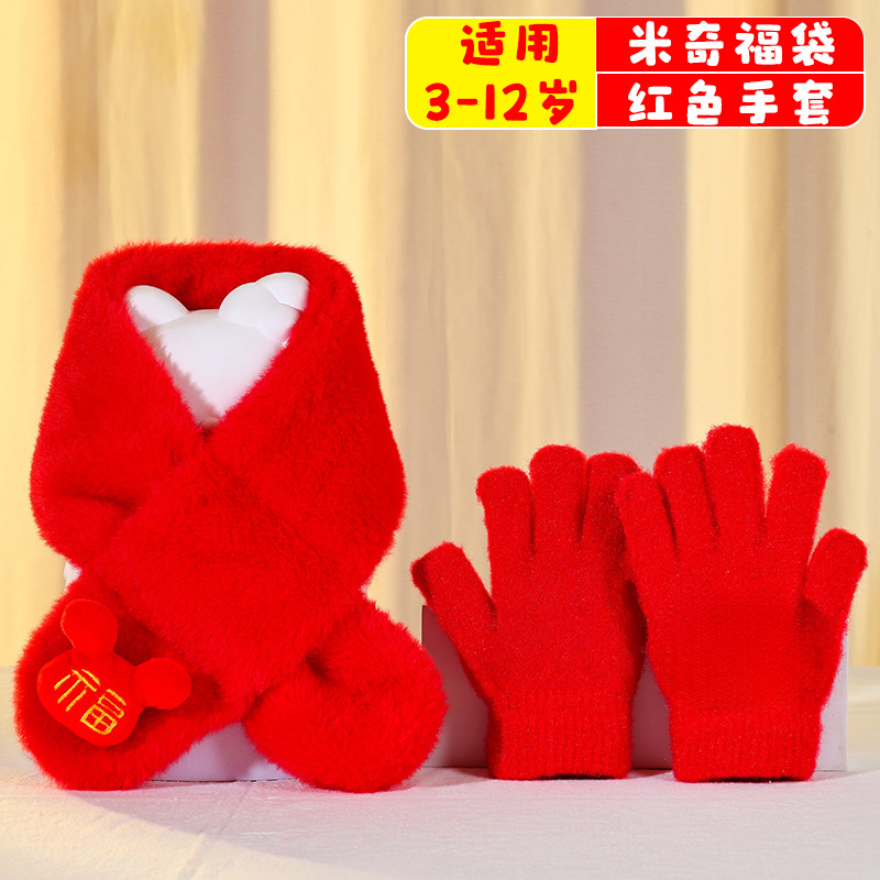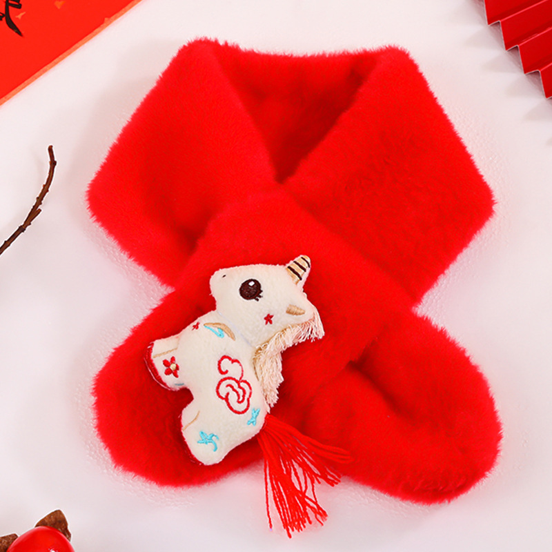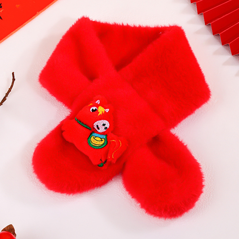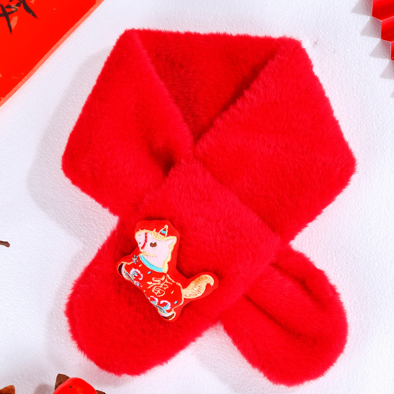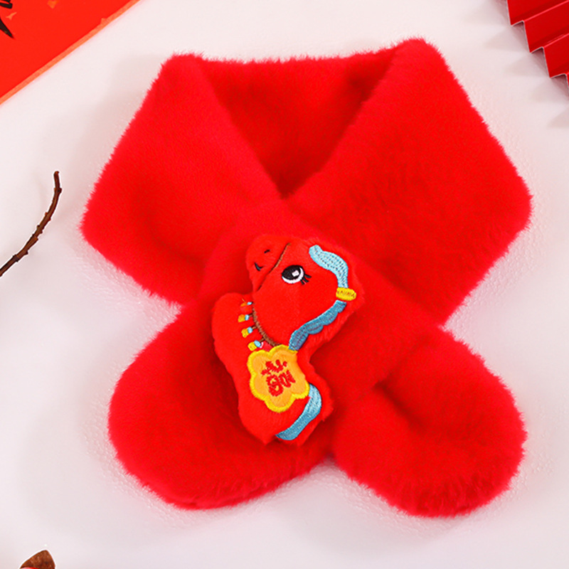 幼儿园新年礼物马年实用元旦小礼品毛绒红色围巾儿童生日伴手礼品