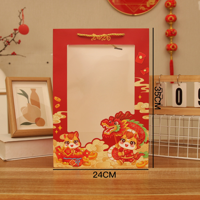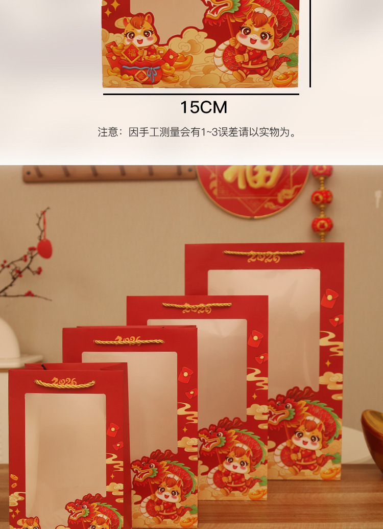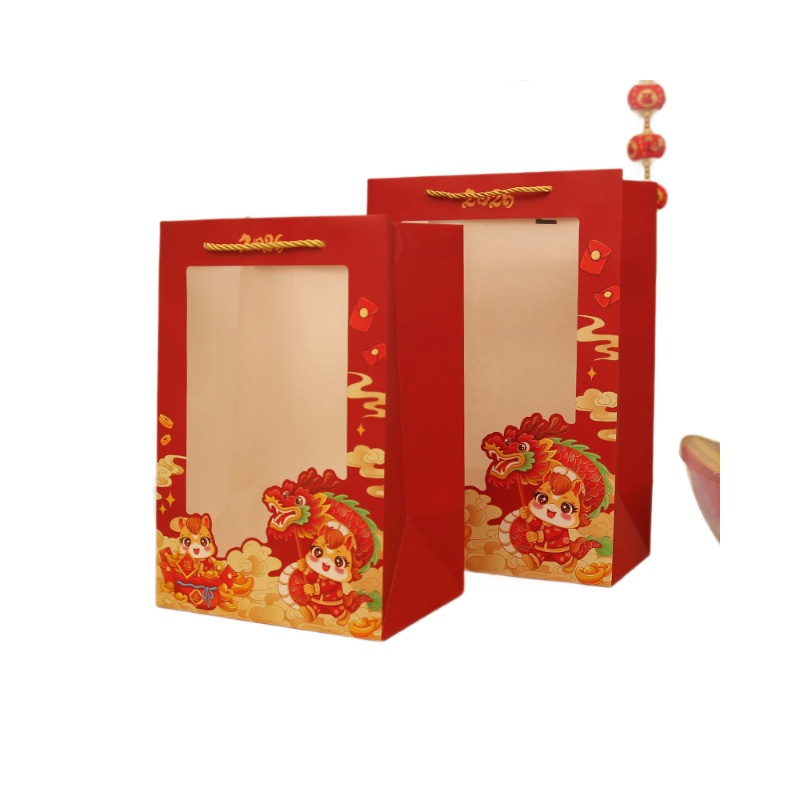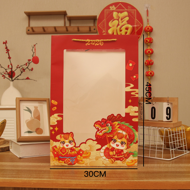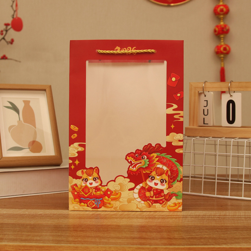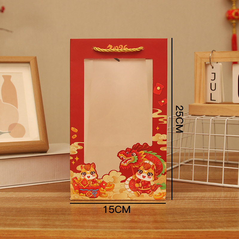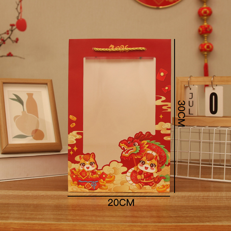 2026年新年马年春节喜庆手提袋透明橱窗伴手礼袋红色公司活动礼盒