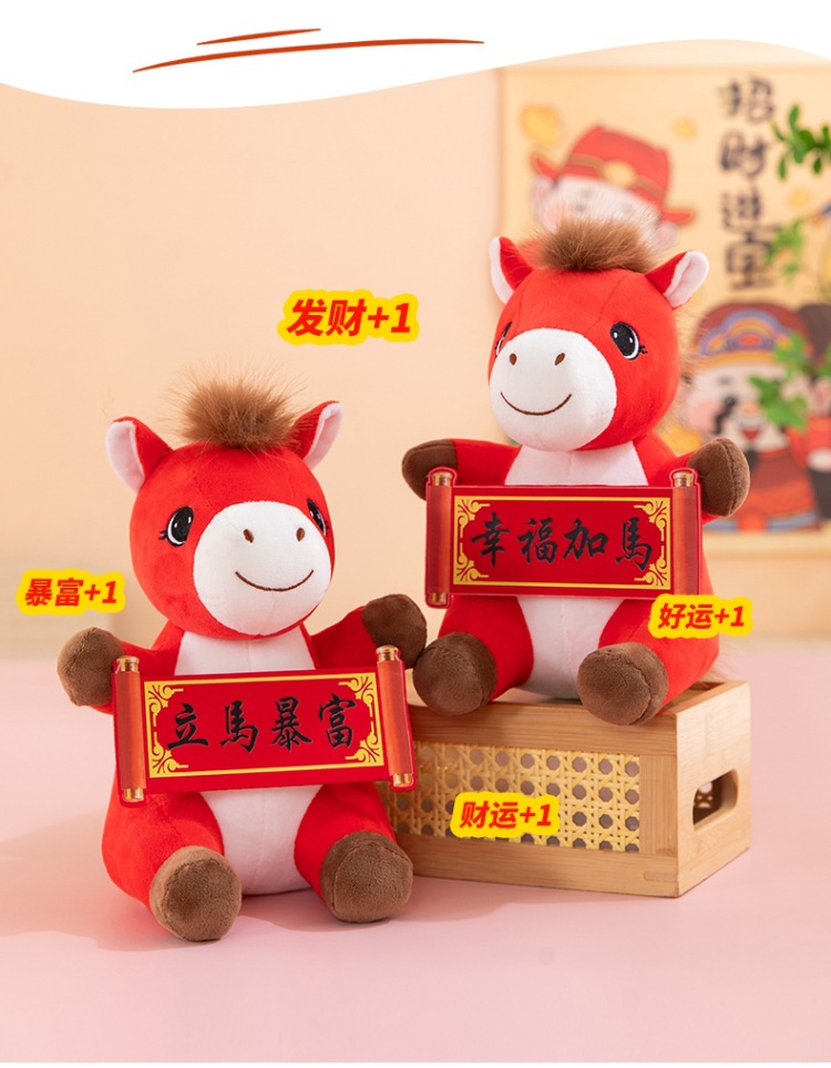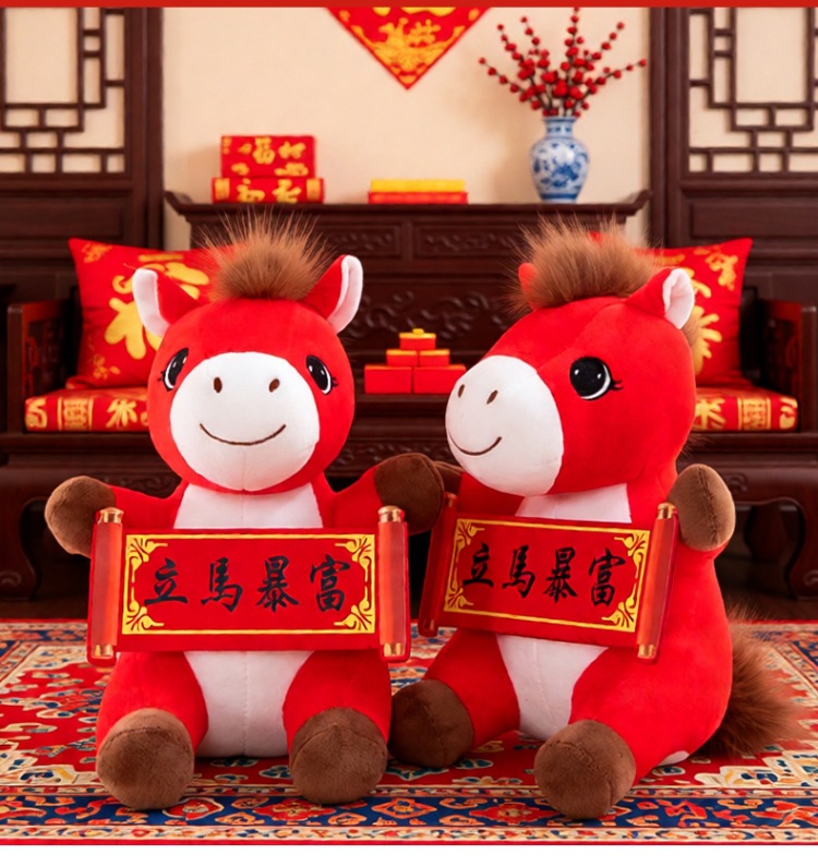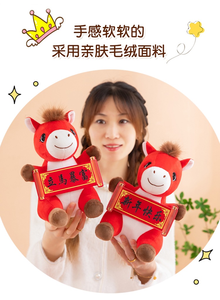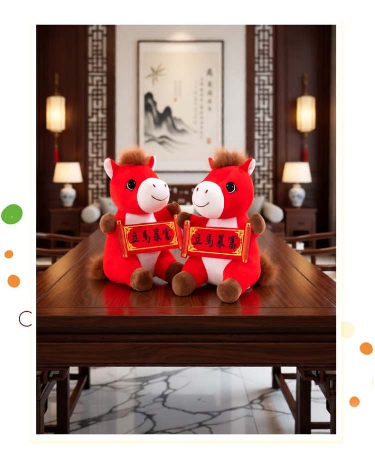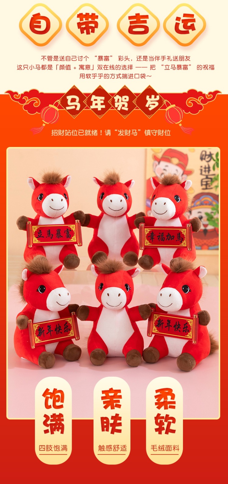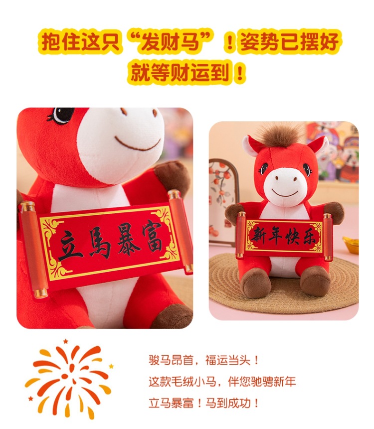 原创立马暴富毛绒玩具摆件马年生肖吉祥物小马公仔桌伴春节伴手礼