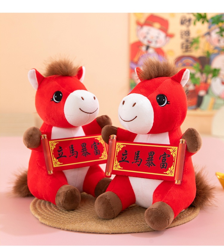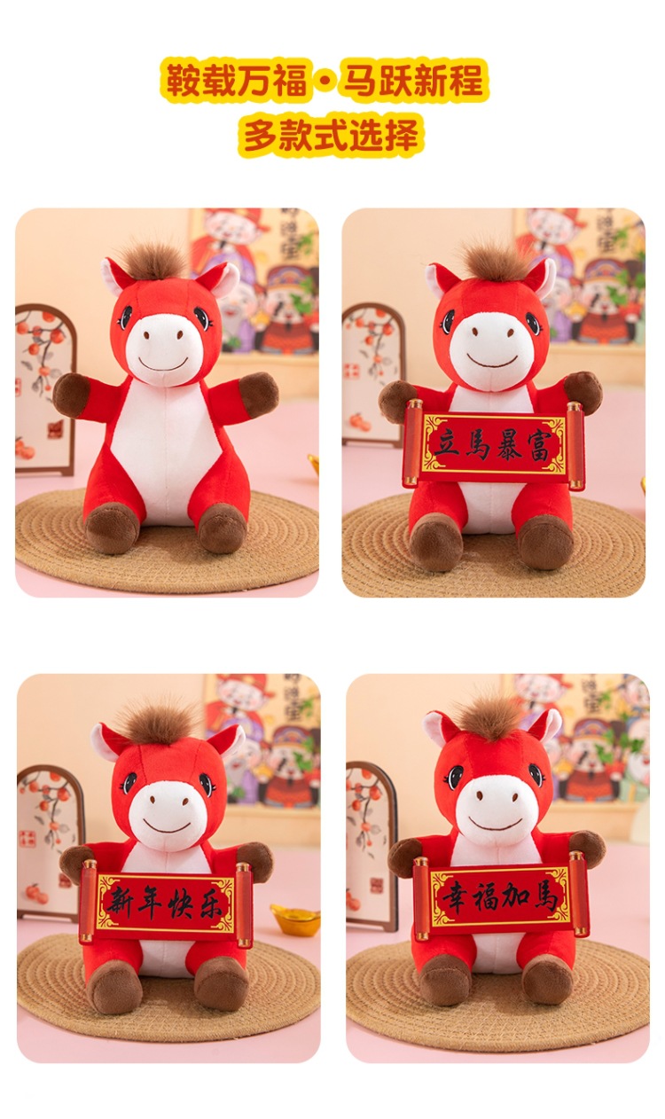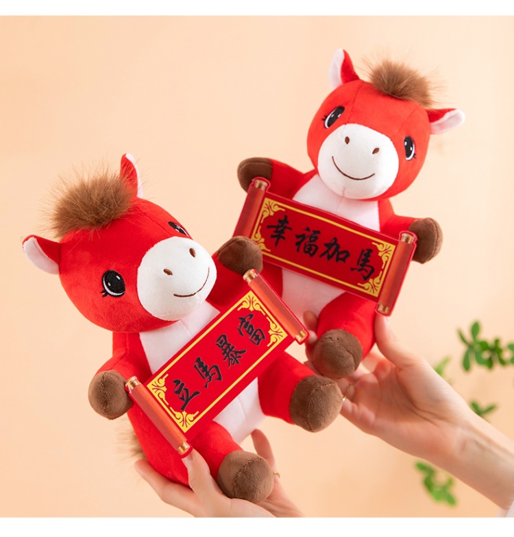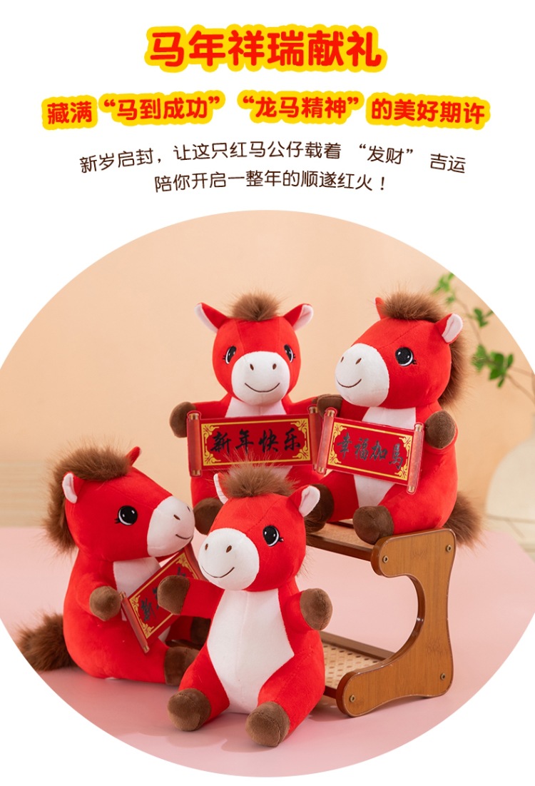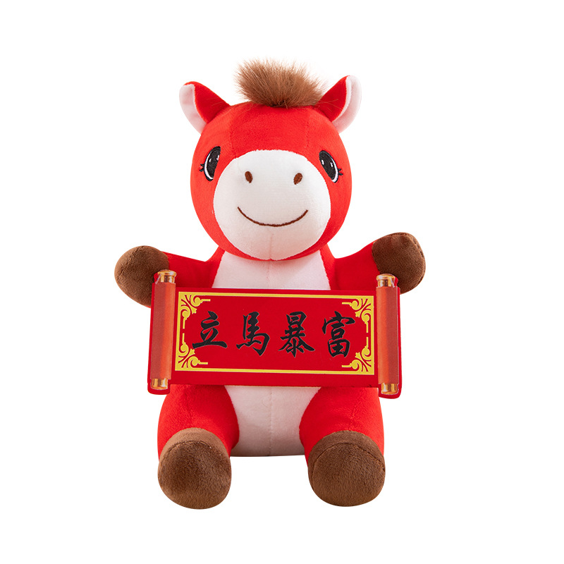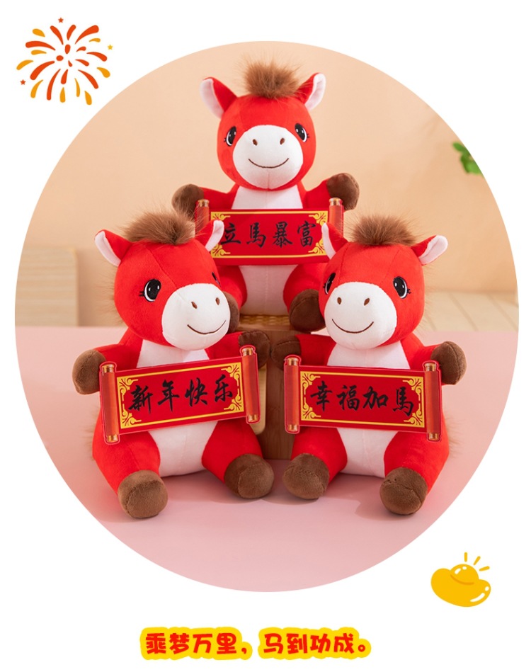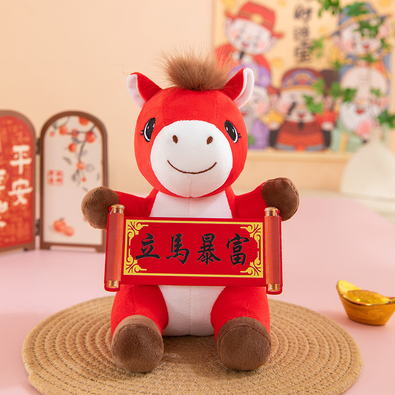 原创立马暴富毛绒玩具摆件马年生肖吉祥物小马公仔桌伴春节伴手礼