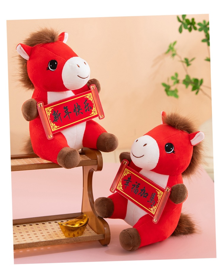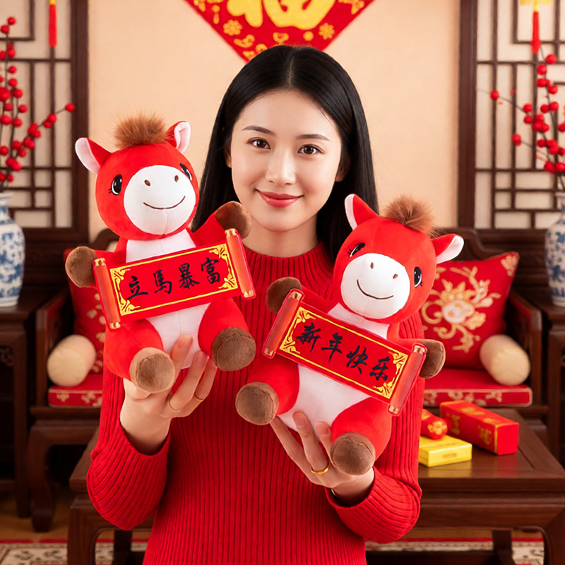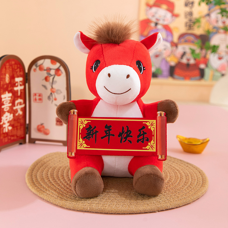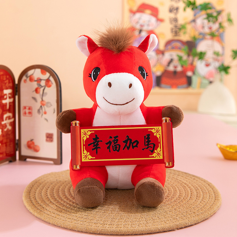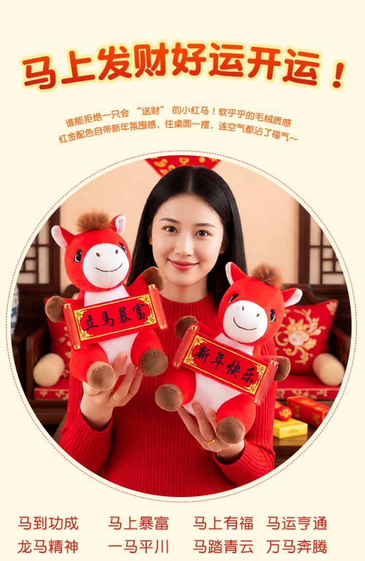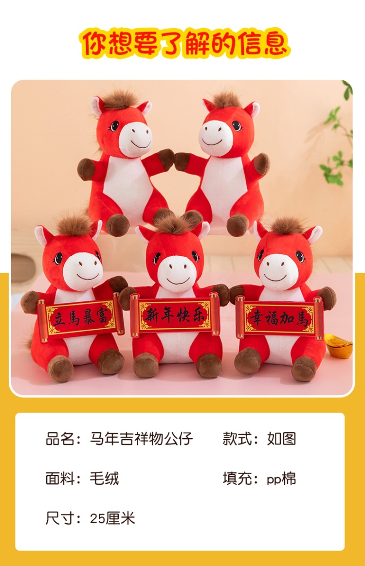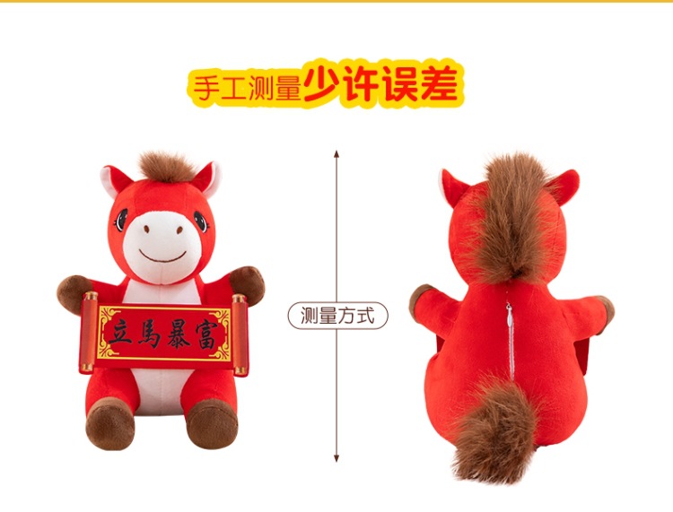 原创立马暴富毛绒玩具摆件马年生肖吉祥物小马公仔桌伴春节伴手礼