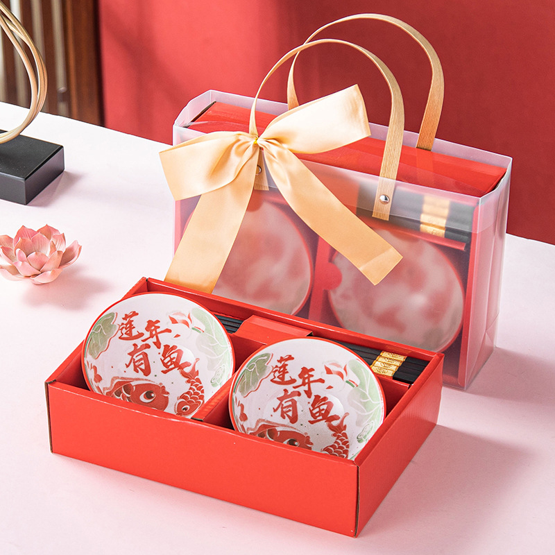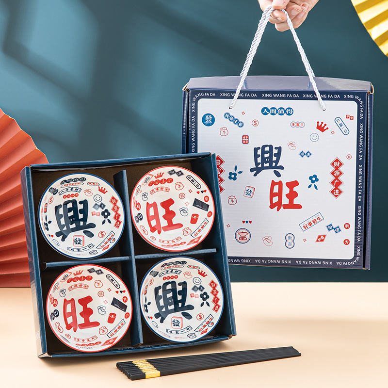 马年碗具套装刻字LOGO陶瓷餐具套碗碟礼盒批发伴手礼礼盒装中式