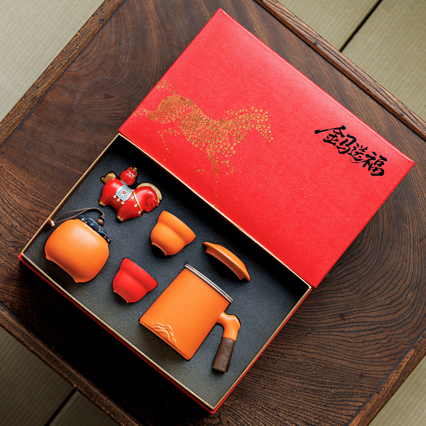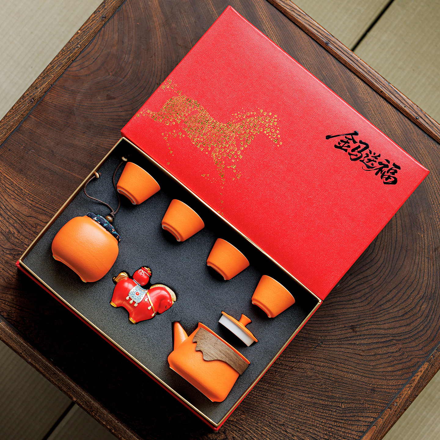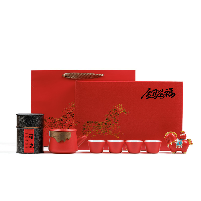2026马年年会伴手礼送客户送员工橙色茶杯茶壶商务礼品套装