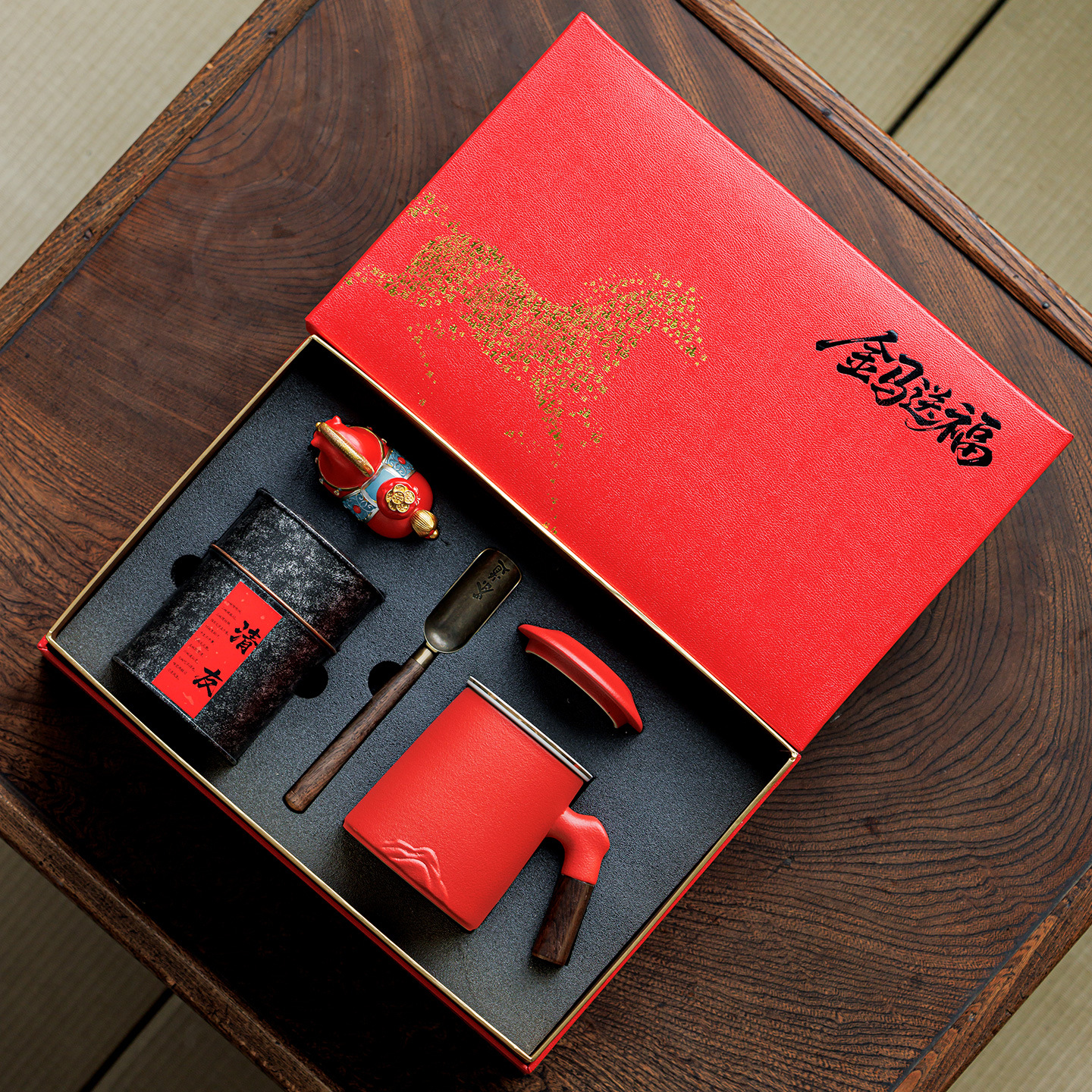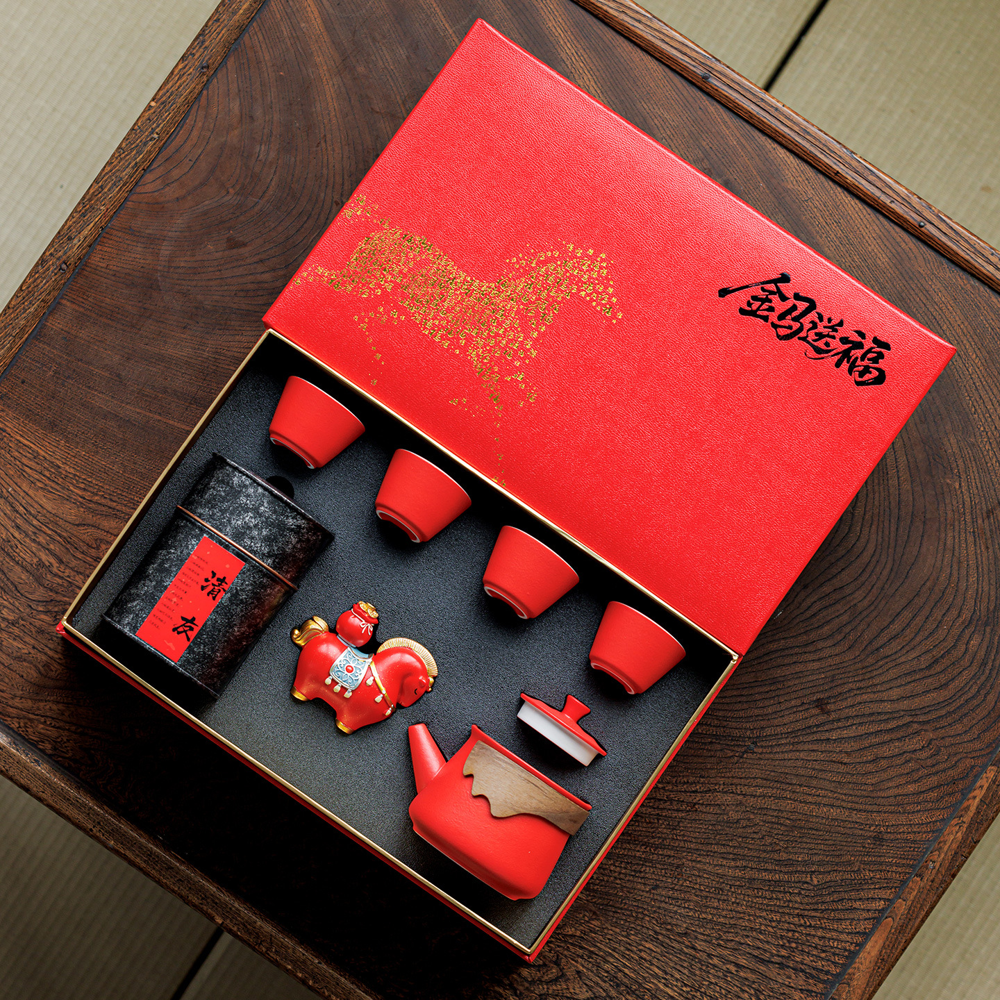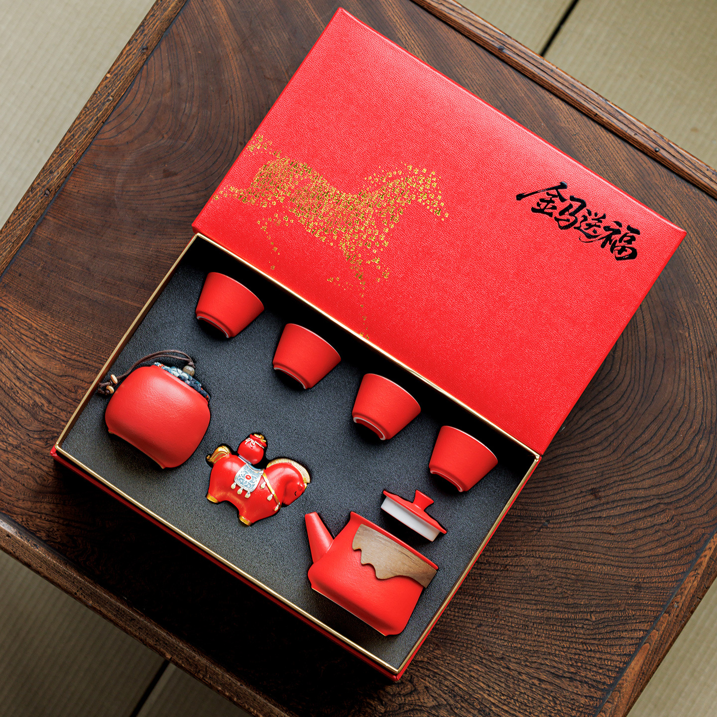2026马年年会伴手礼送客户送员工橙色茶杯茶壶商务礼品套装